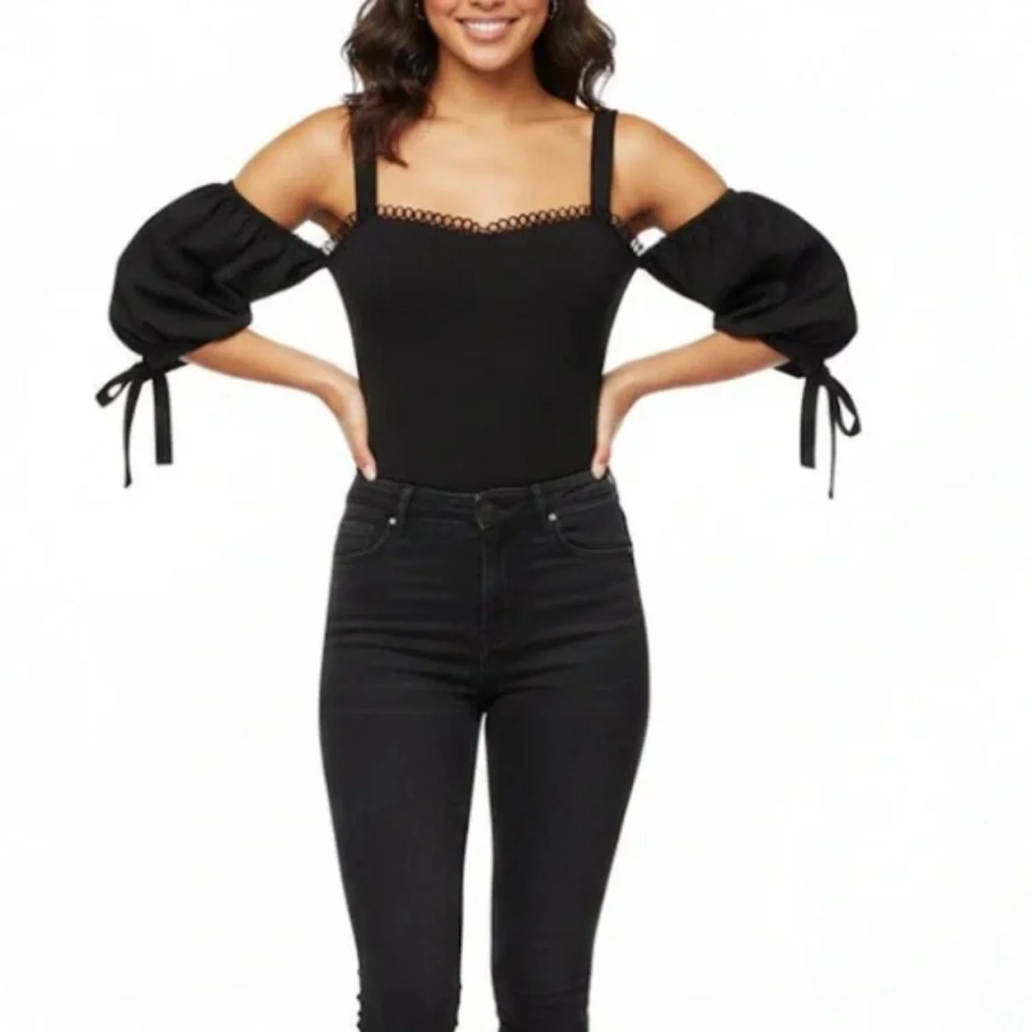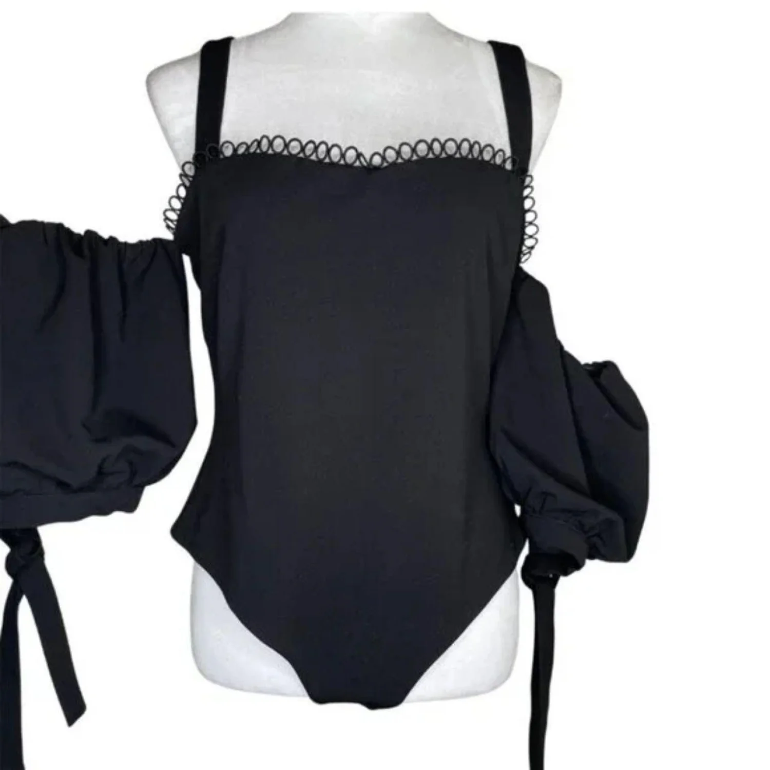 By Egreis Coquette Goth Black Puff Sleeve Off-Shoulder Bodysuit Size L