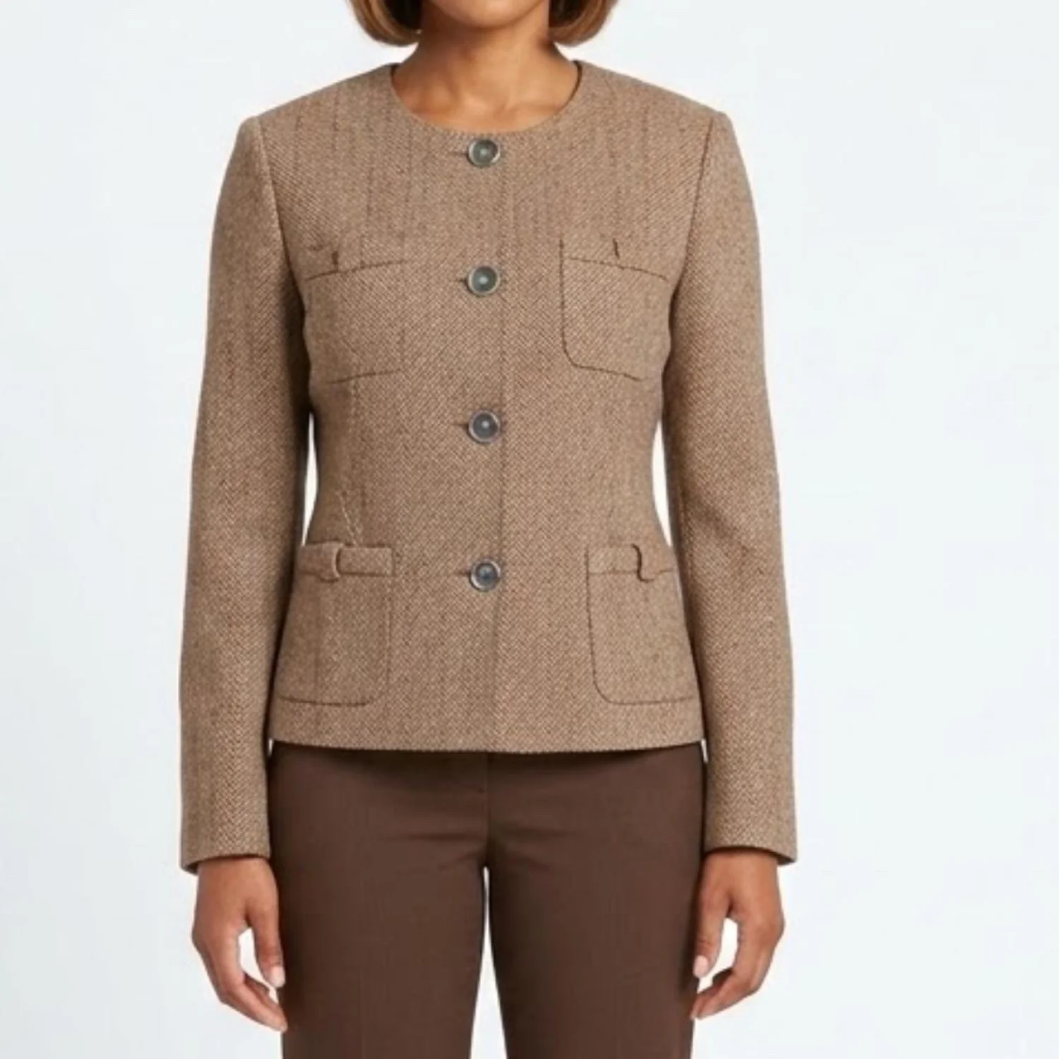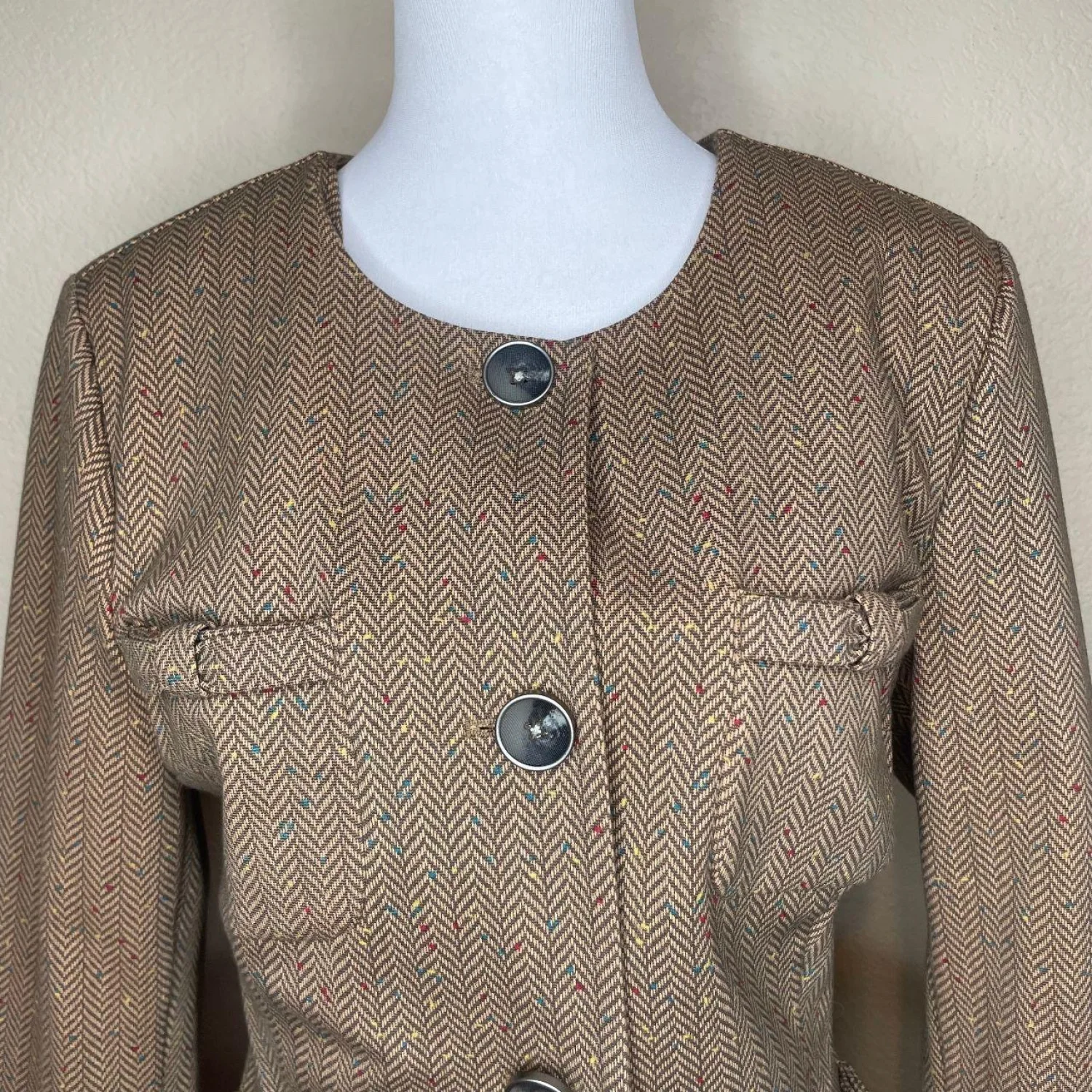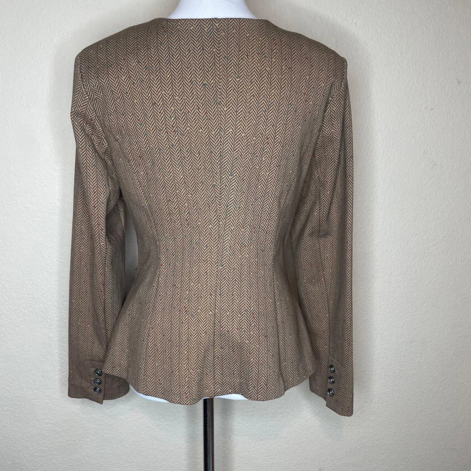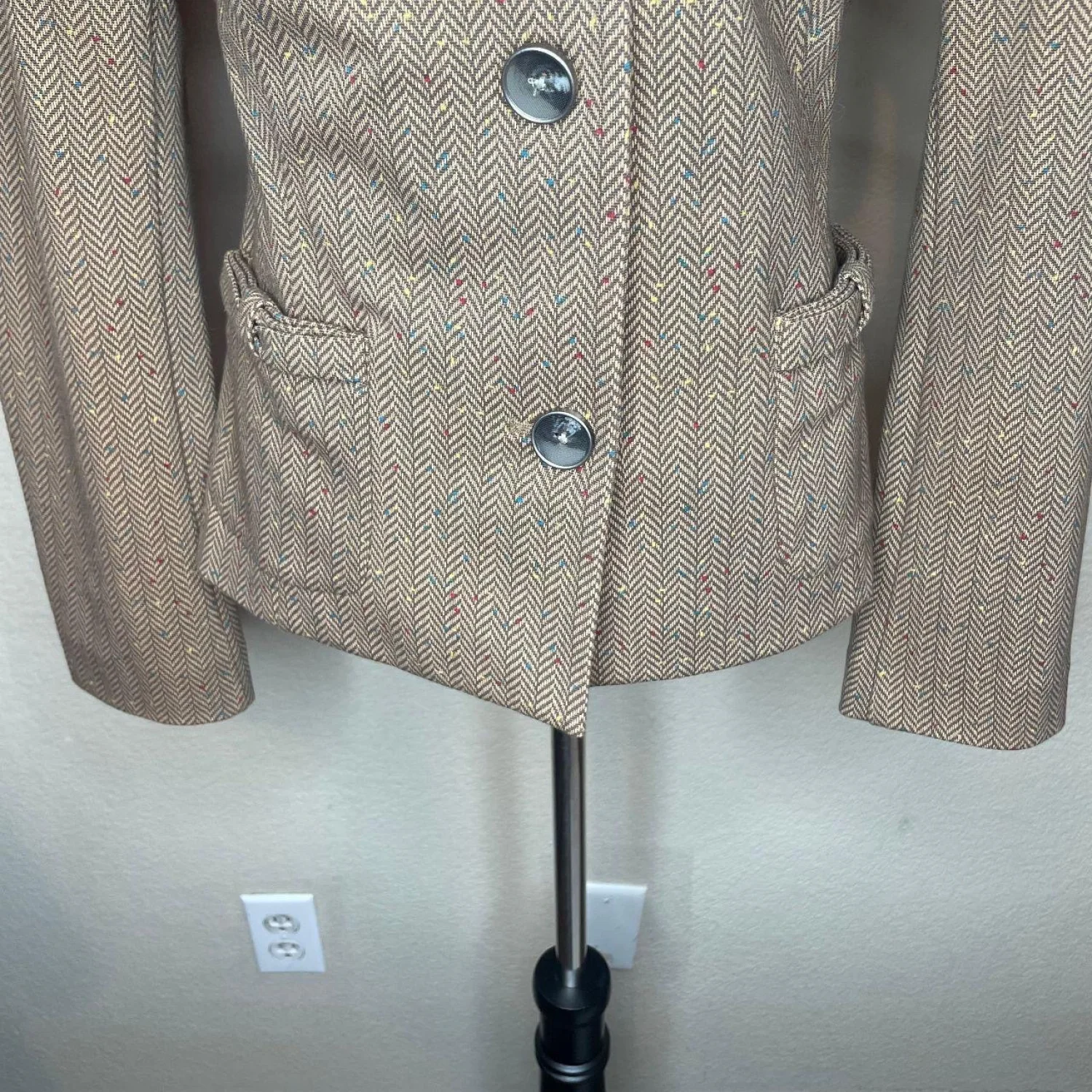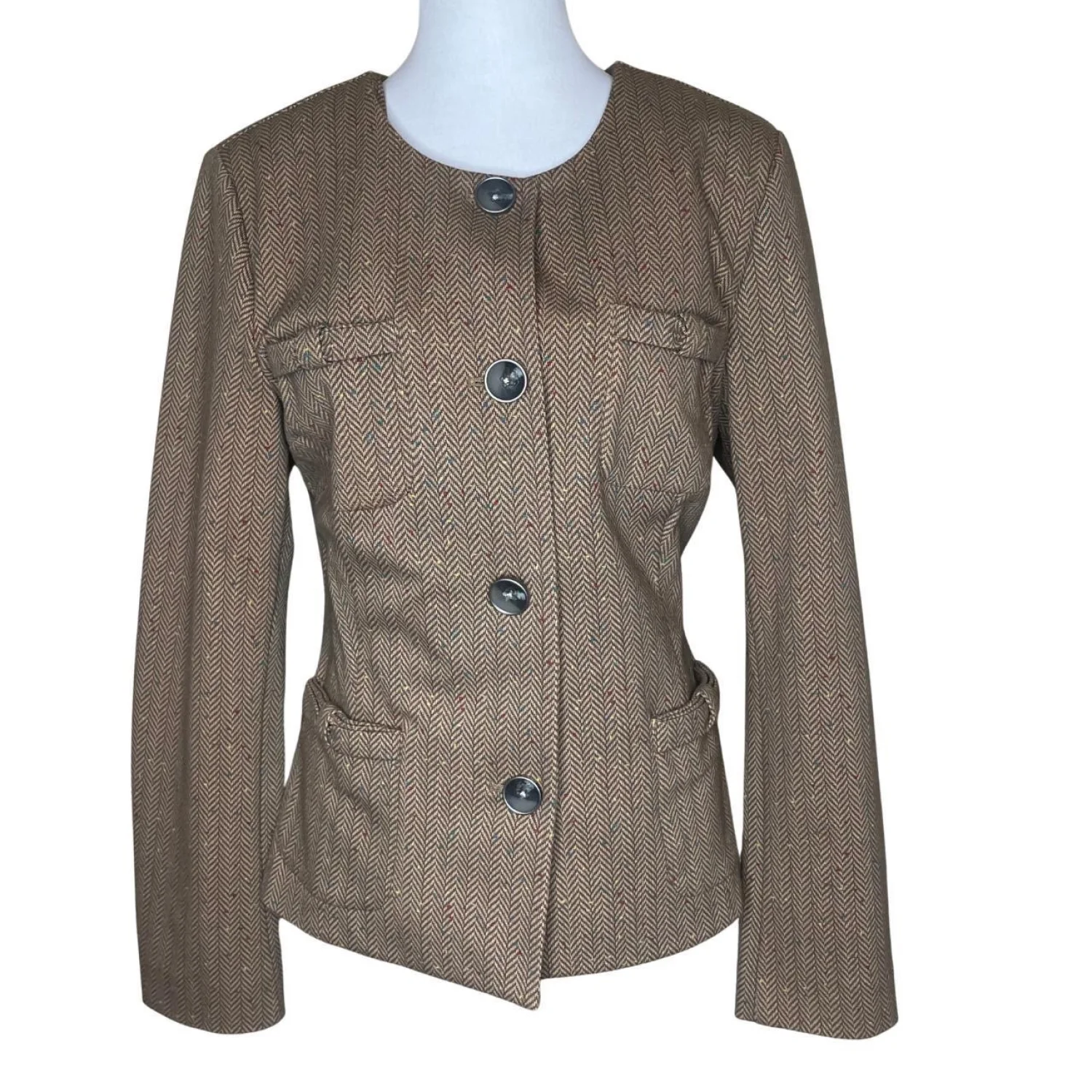 Cabi Penny Cotton Blend Blazer Jacket Herringbone Tweed Confetti Fleck Brown L