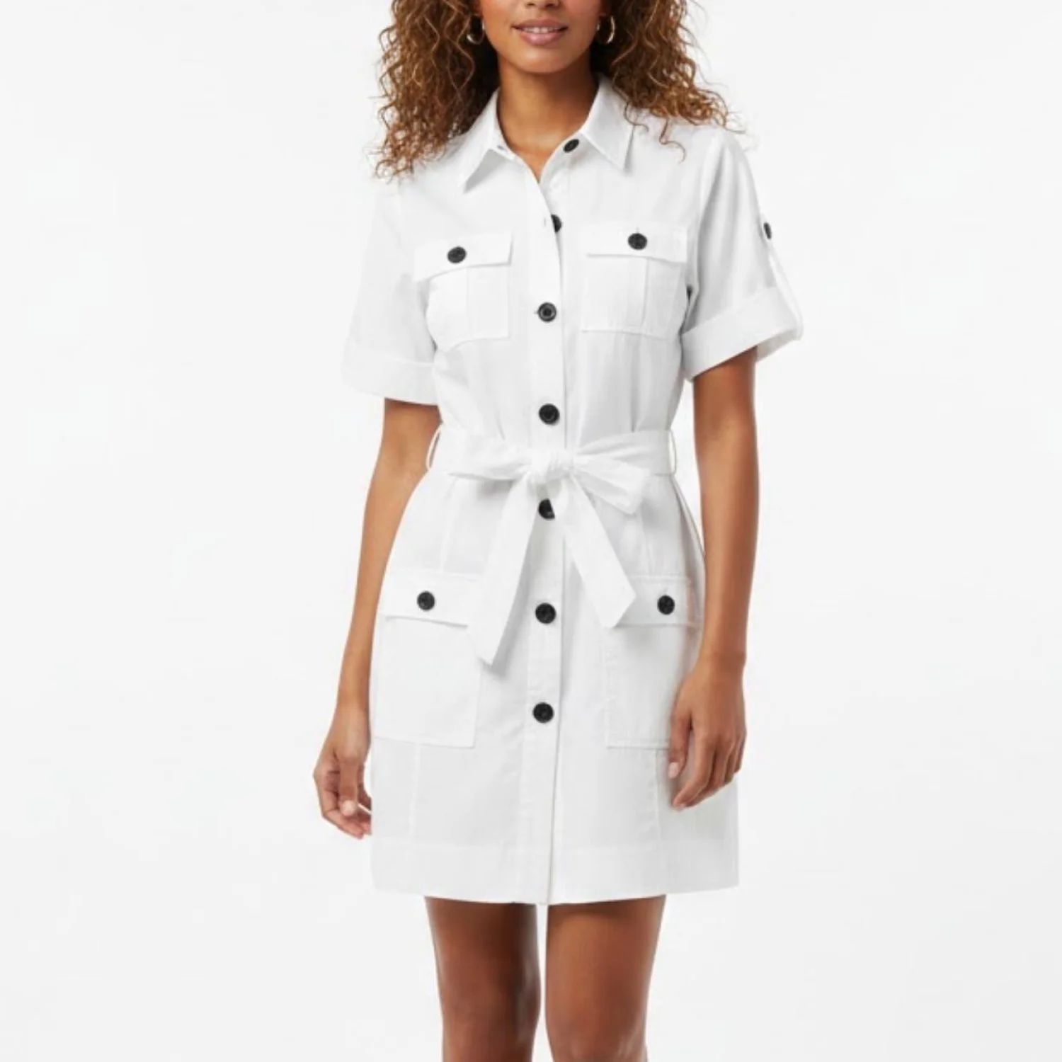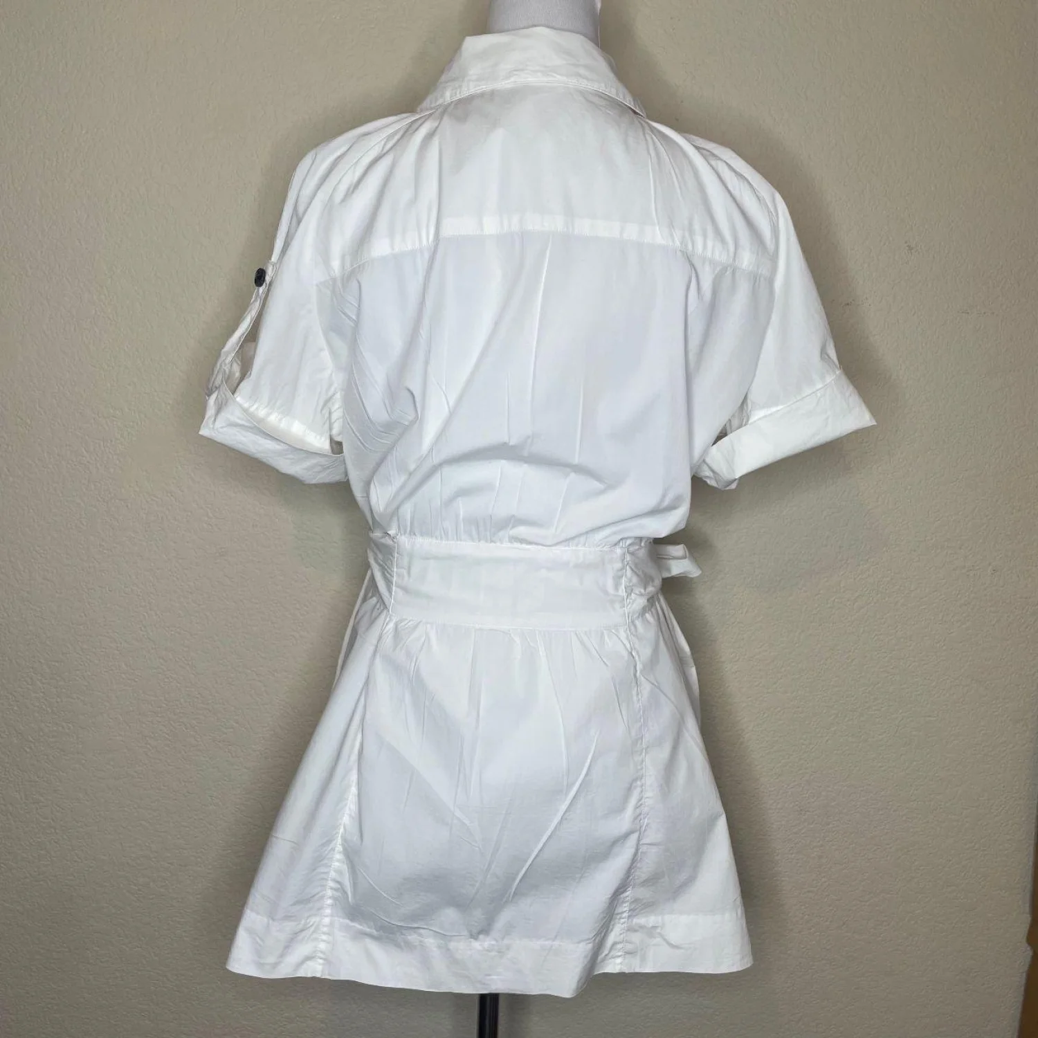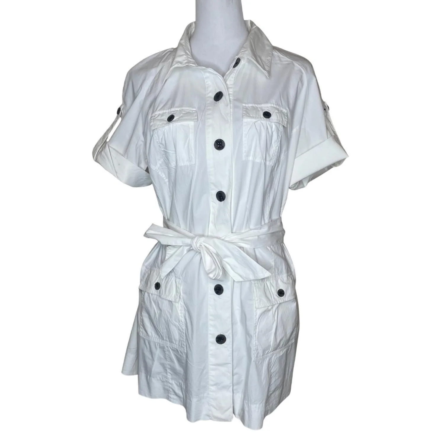 Calvin Klein Cotton White Belted Safari Mini Dress Size L