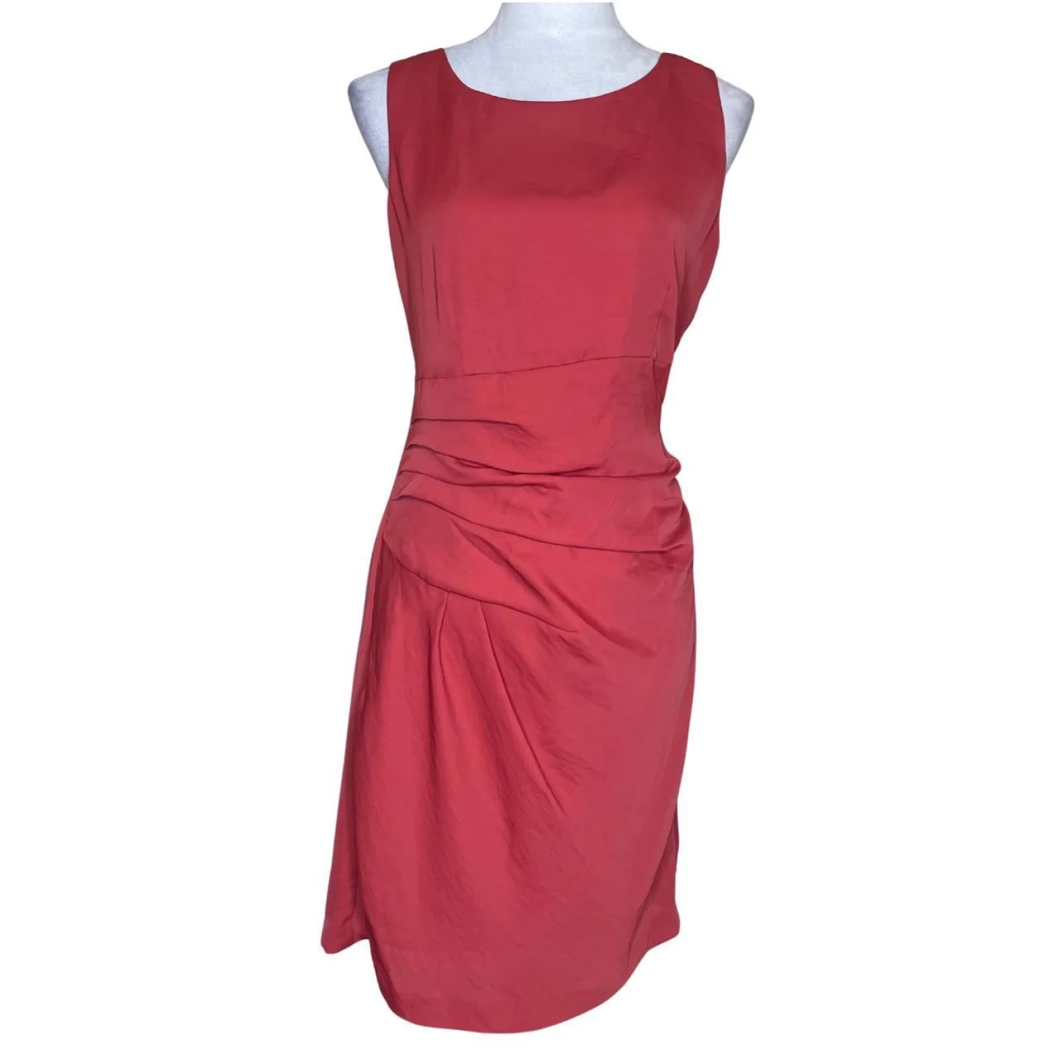 Calvin Klein Siren Coral Ruched Sheath Dress Corporate Chic Starburst Mini Sz 6