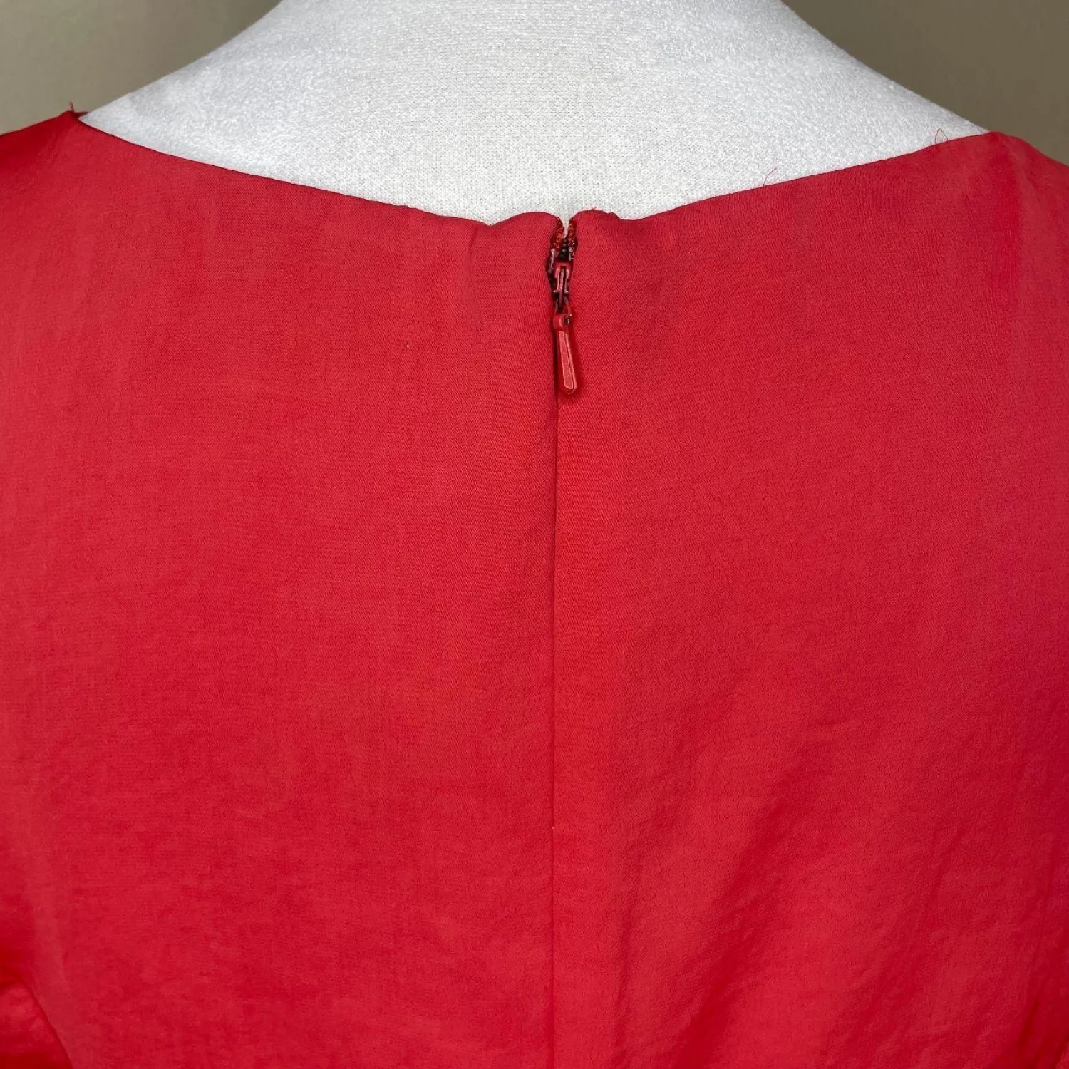 Calvin Klein Siren Coral Ruched Sheath Dress Corporate Chic Starburst Mini Sz 6 Features: Aggressive power dressing. This Calvin Klein sheath comes in a high-octane red with a structured, sculptural silhouette. Note the sunburst ruching across the midsection—it creates a sharp, gathered texture that mimics a cinched waist without the effort. The neckline is a clean, rounded scoop leading into a sleek, sleeveless cut and a streamlined pencil skirt that hits right at the knee. Heavyweight drape ensures it holds its shape through a 10-hour day or a late-night gallery opening. • Style Profile: Office Siren, Corporate Chic, Power Dressing, Minimalist, Cocktail, Bodycon, Sophisticated, Bold, Structured, Professional • Flaws: No Holes, stains, or tears • Please see the photos for measurements (in inches). PTP: 18' Length: 35.5' Happy to answer your questions! Super Fast Shipper! Bundle items for discounts!