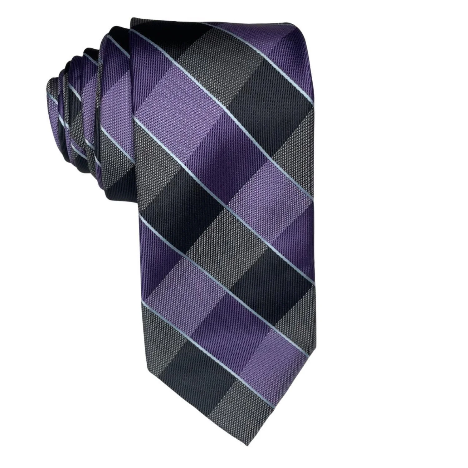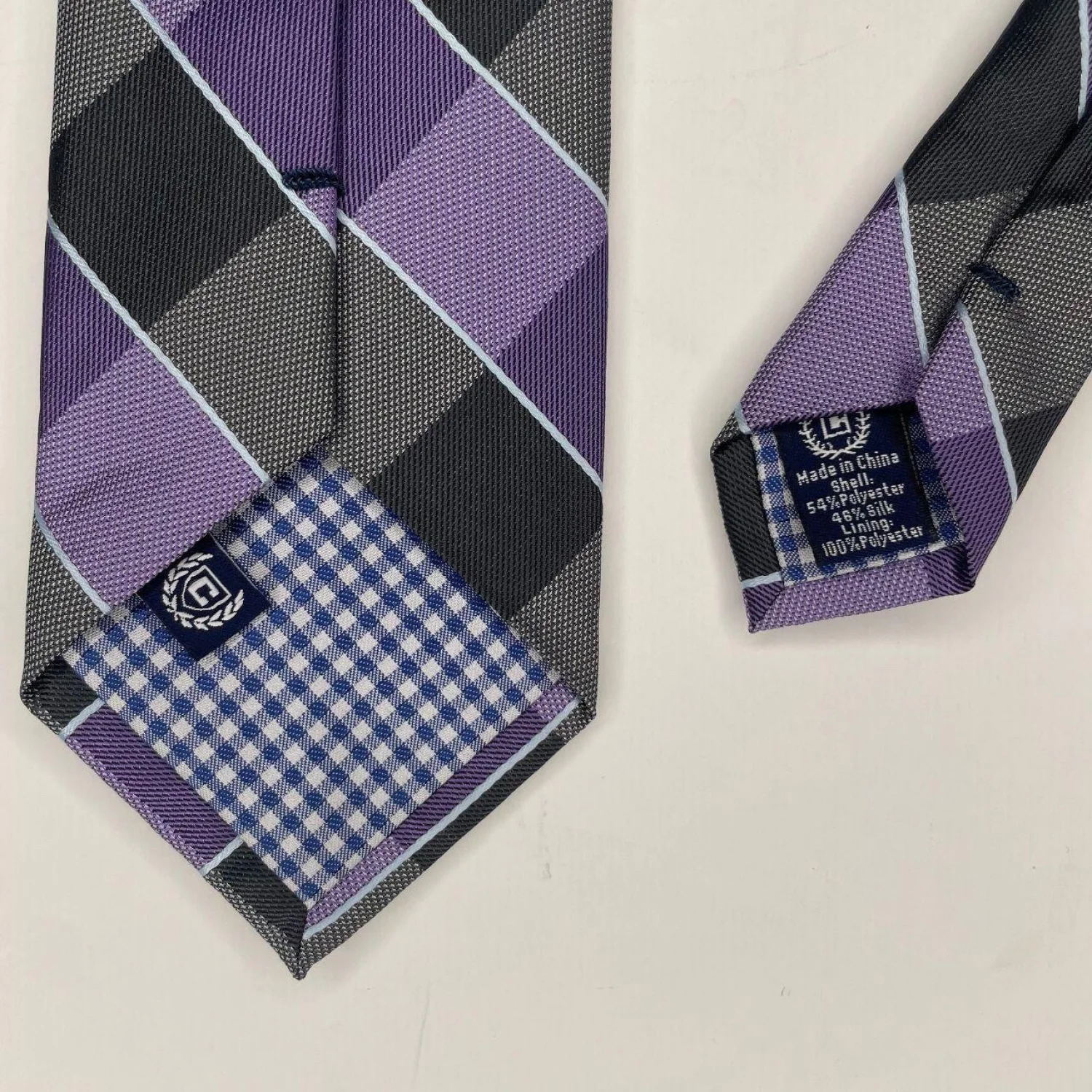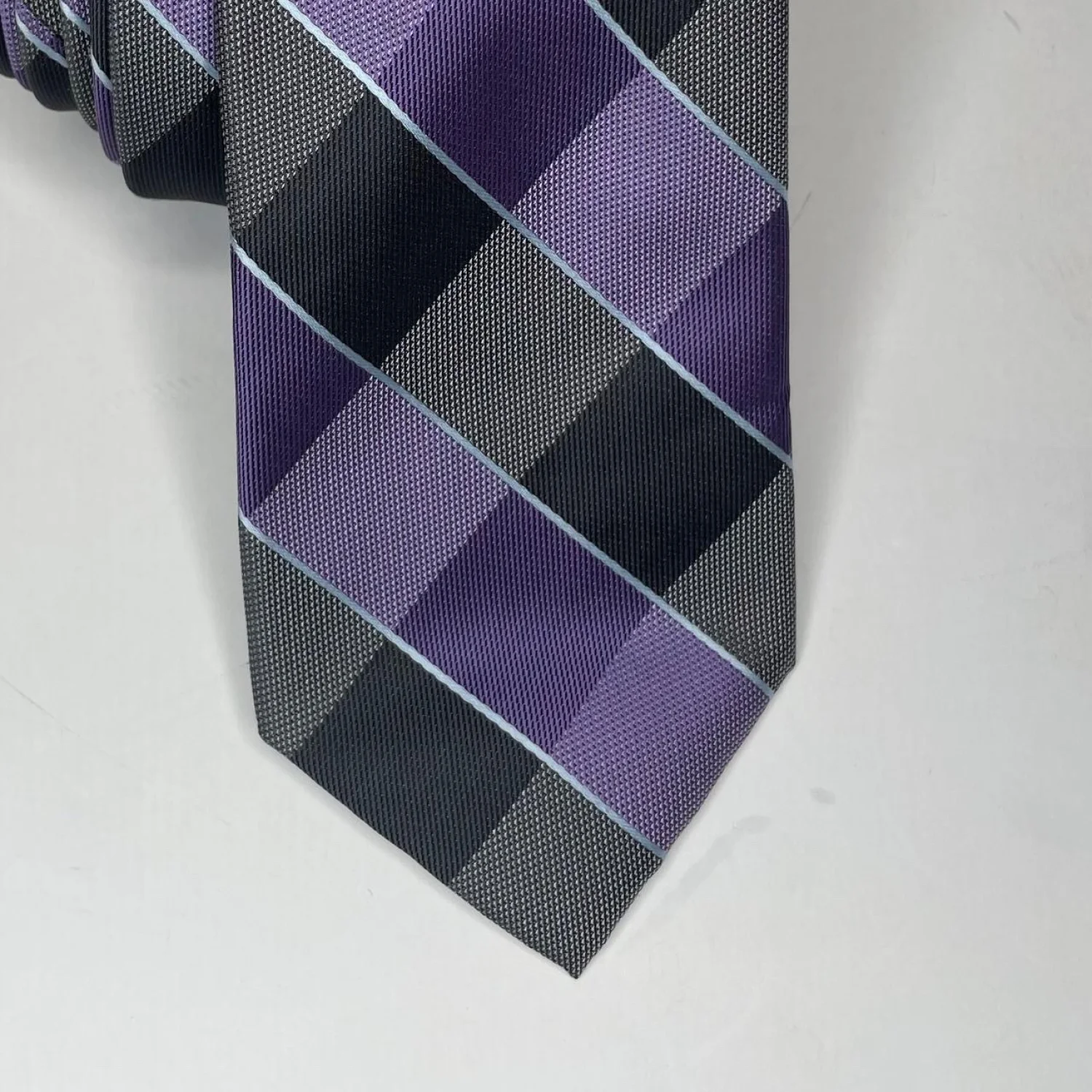 Chaps Ralph Lauren Silk Blend Blue Purple & Grey Plaid Woven Necktie