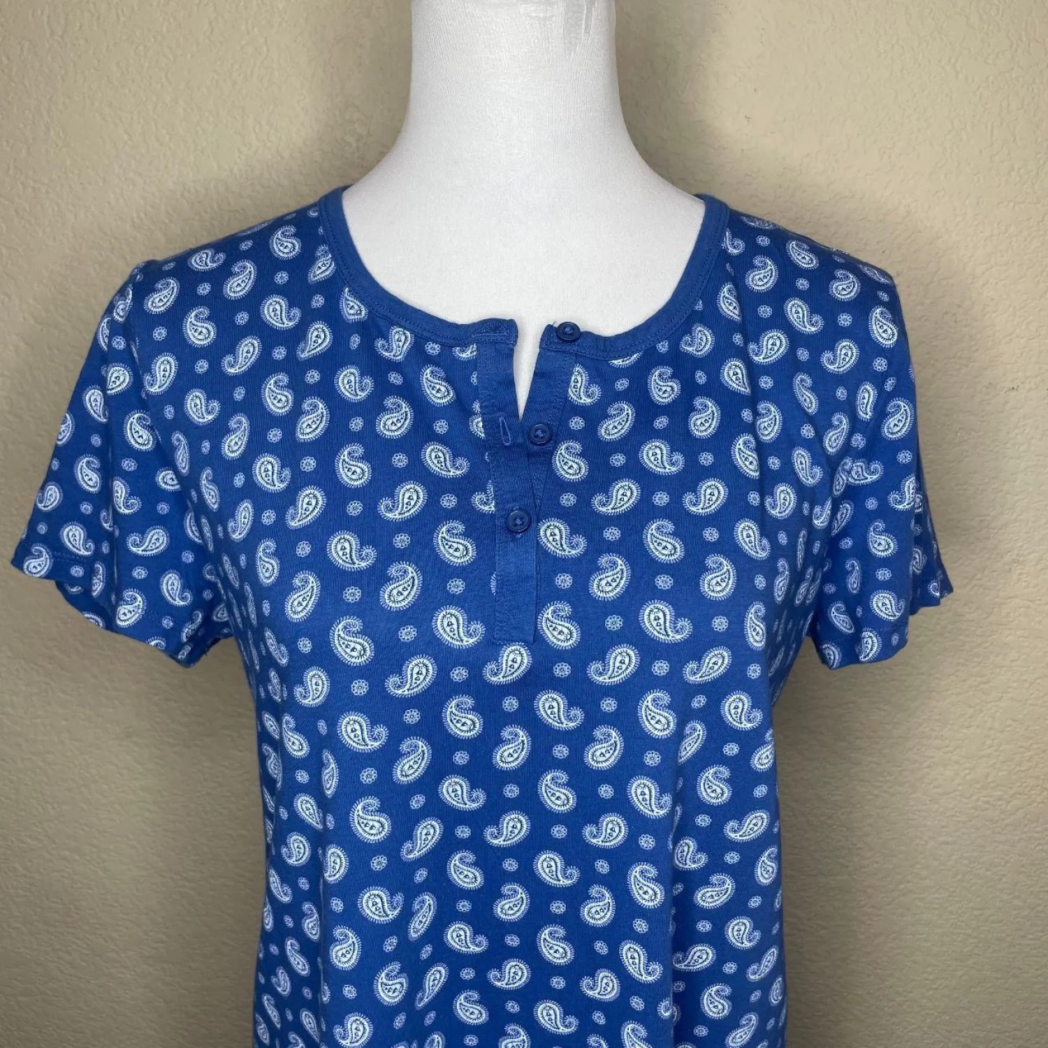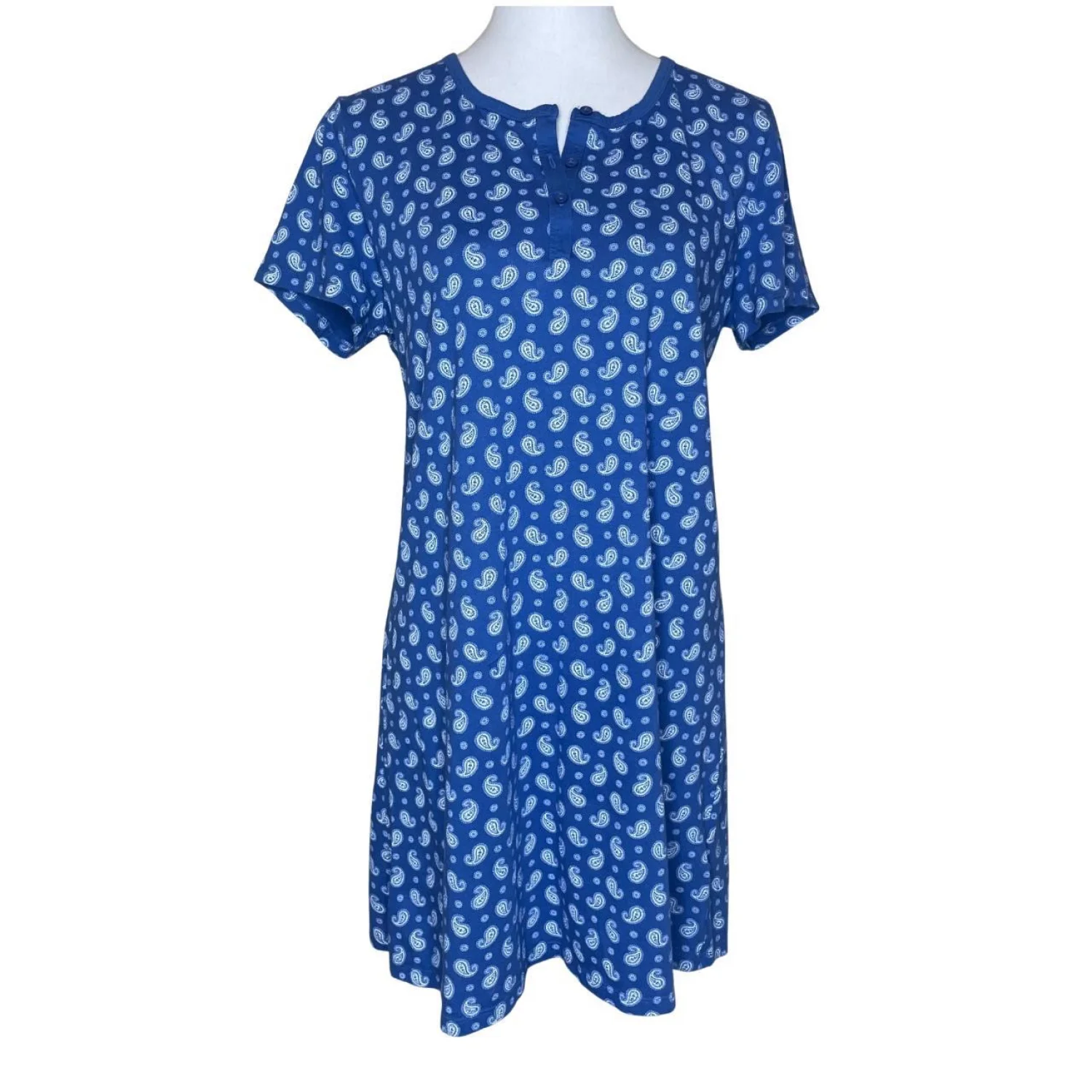 Charter Club Intimates 100% Cotton Blue Paisley Cotton Nightgown M ✨ DEALS: I also have this exact nightgown available in PINK! Check my closet to bundle both and save on shipping! Features: Relax in style with this ultra-soft Charter Club Intimates sleep shirt. Featuring a classic blue and white paisley print, comfortable short sleeves, and a flattering V-neckline with delicate trim. Made of 100% cotton for a breathable, cozy fit all night long. • Style Profile: Cottagecore, Grannycore, Shabby Chic, Coquette, Romantic, Floral, Loungewear, Traditional, Dainty, Breathable Cotton • Flaws: No Holes, stains, or tears (Excellent pre-owned condition) • All measurements are approximate PTP: 19" Length: 33" Happy to answer your questions! Super Fast Shipper!