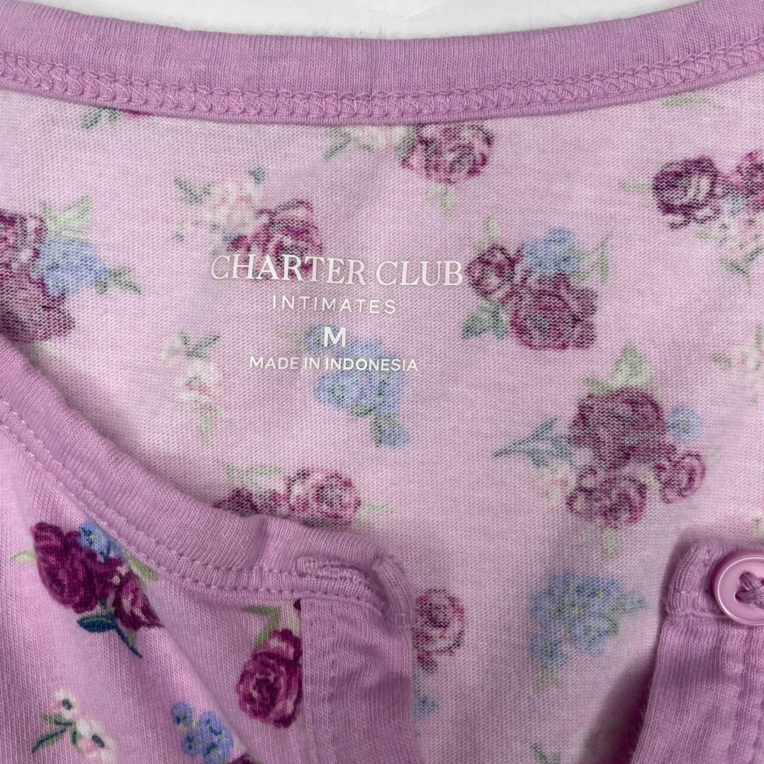 Charter Club Intimates Pink Floral Cotton Nightgown Henley Sleep Shirt Medium