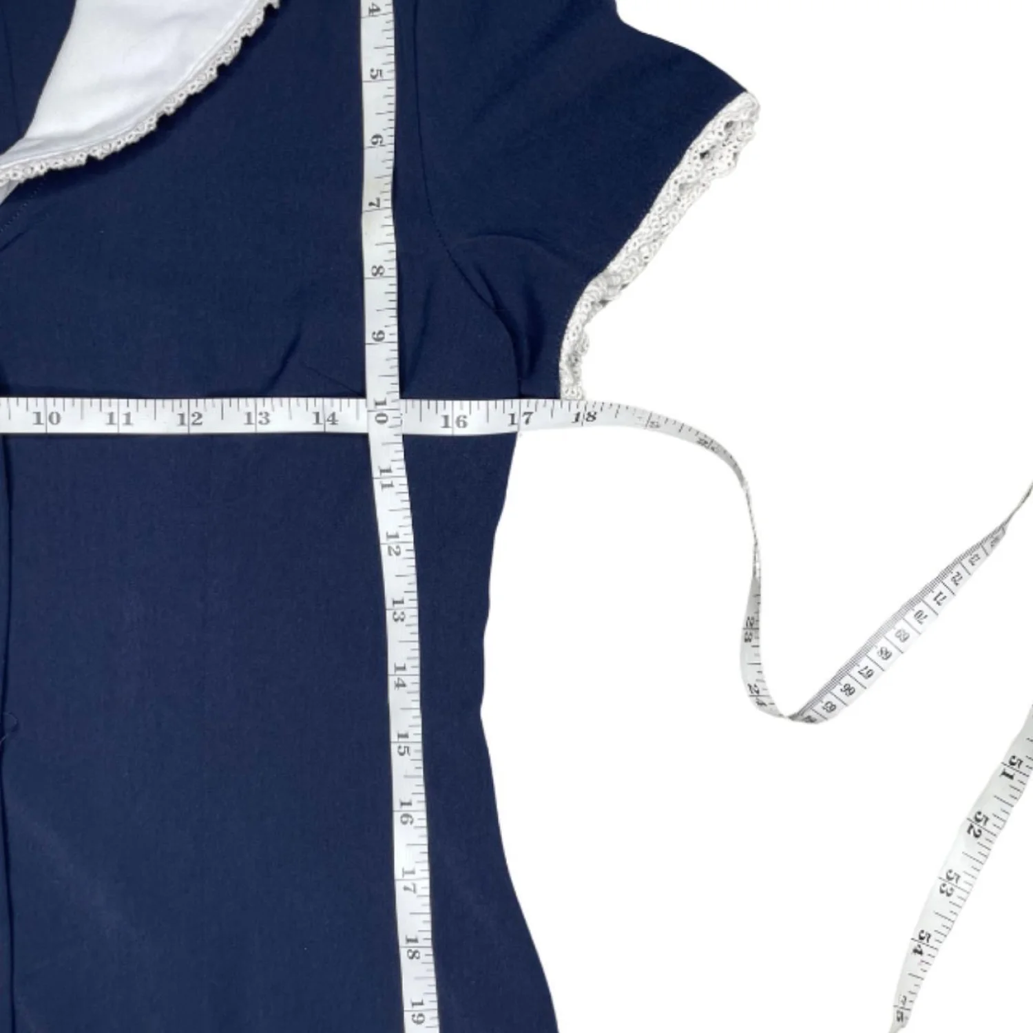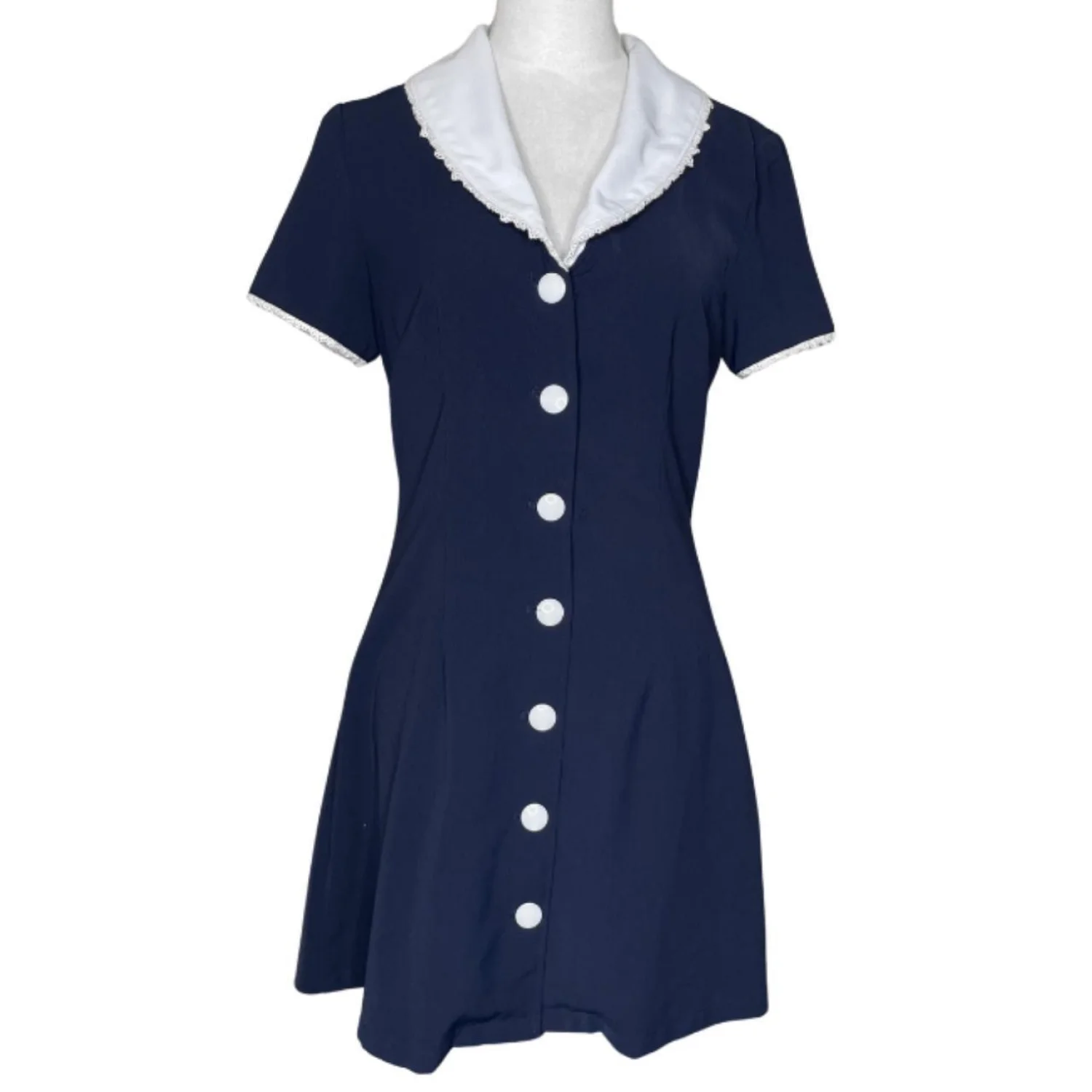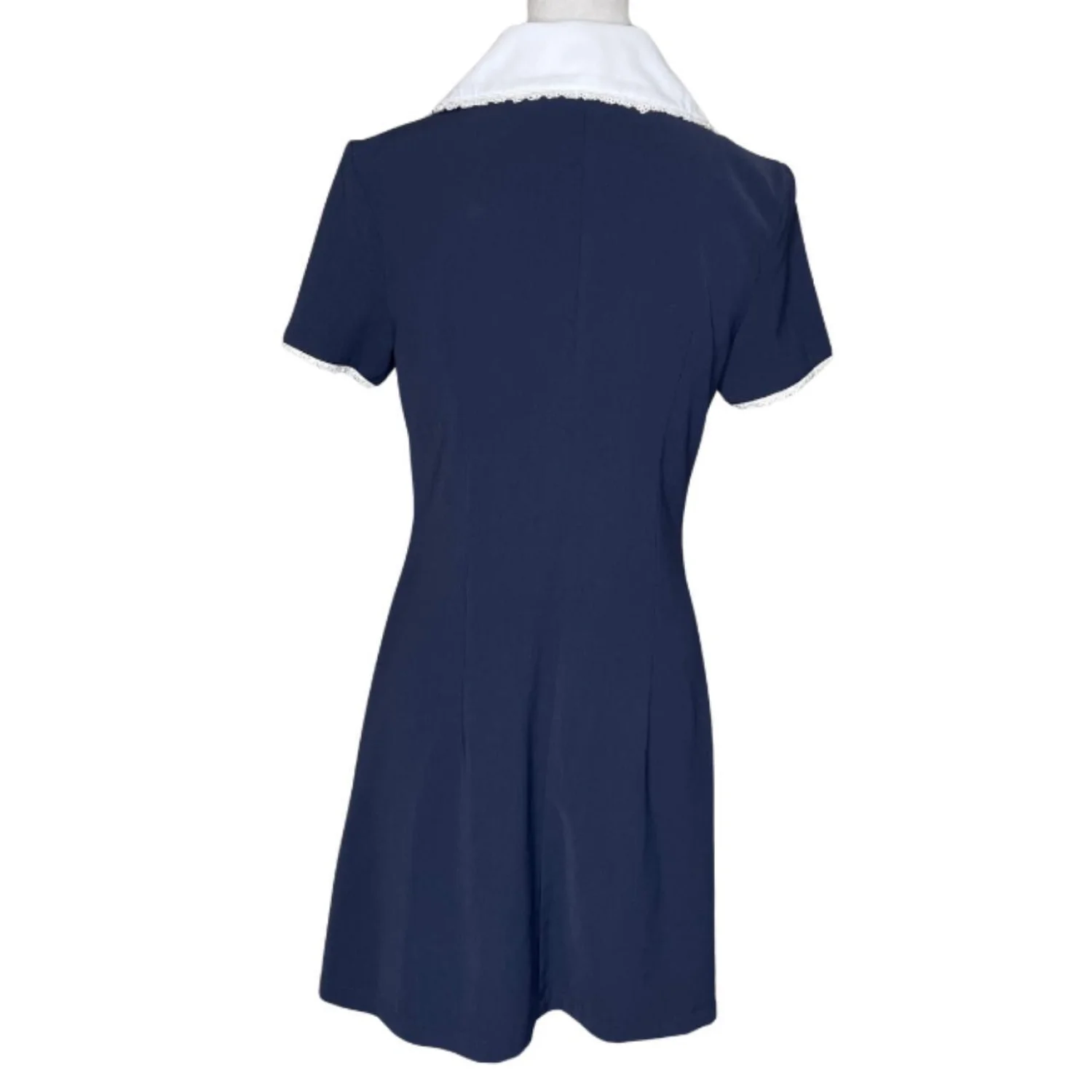 Cider Navy Blue White Lace Trim Collar Button Down Mini Dress Medium
