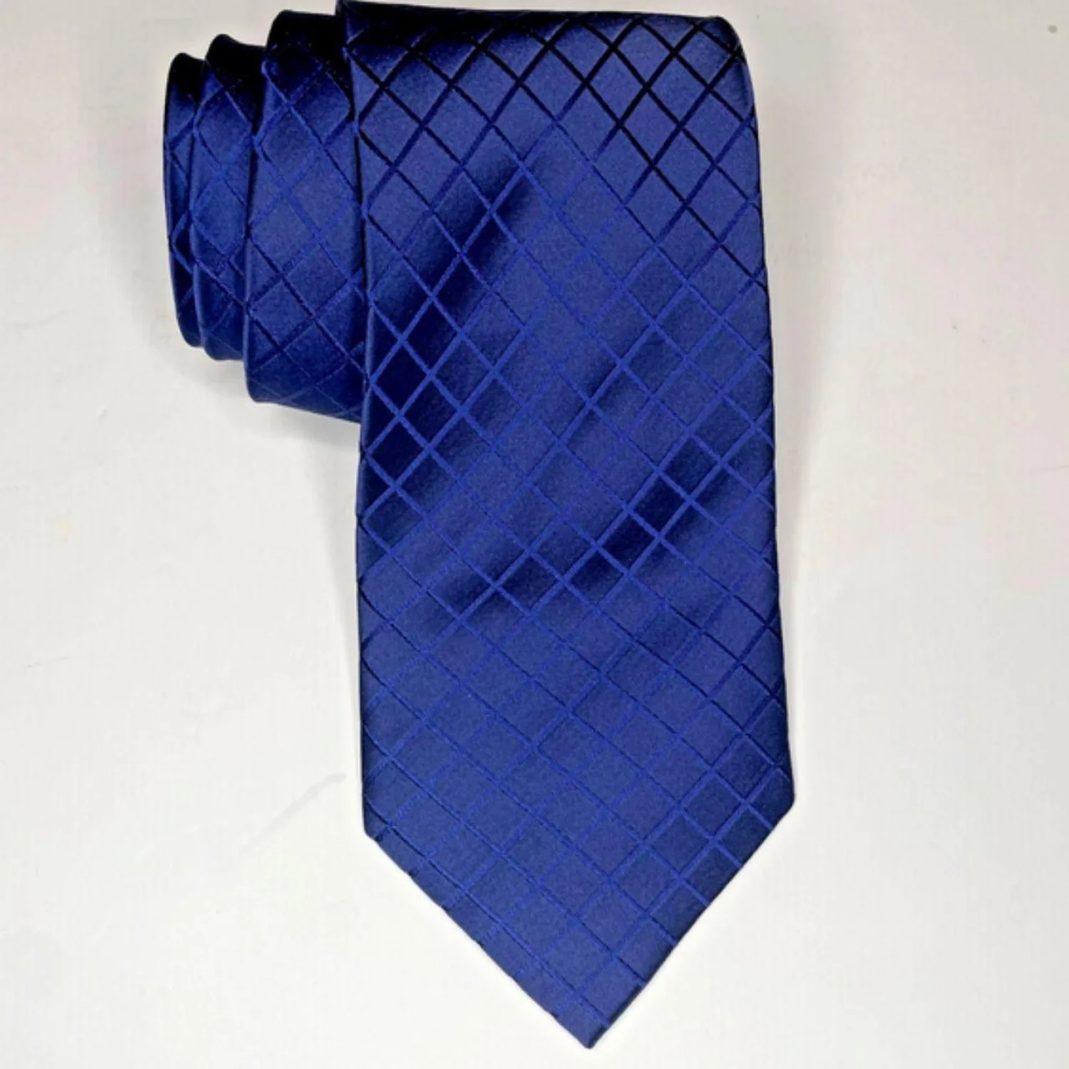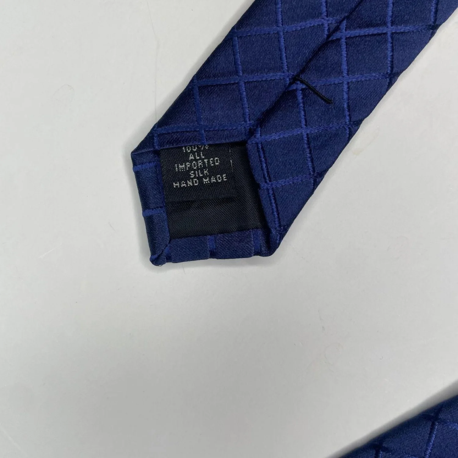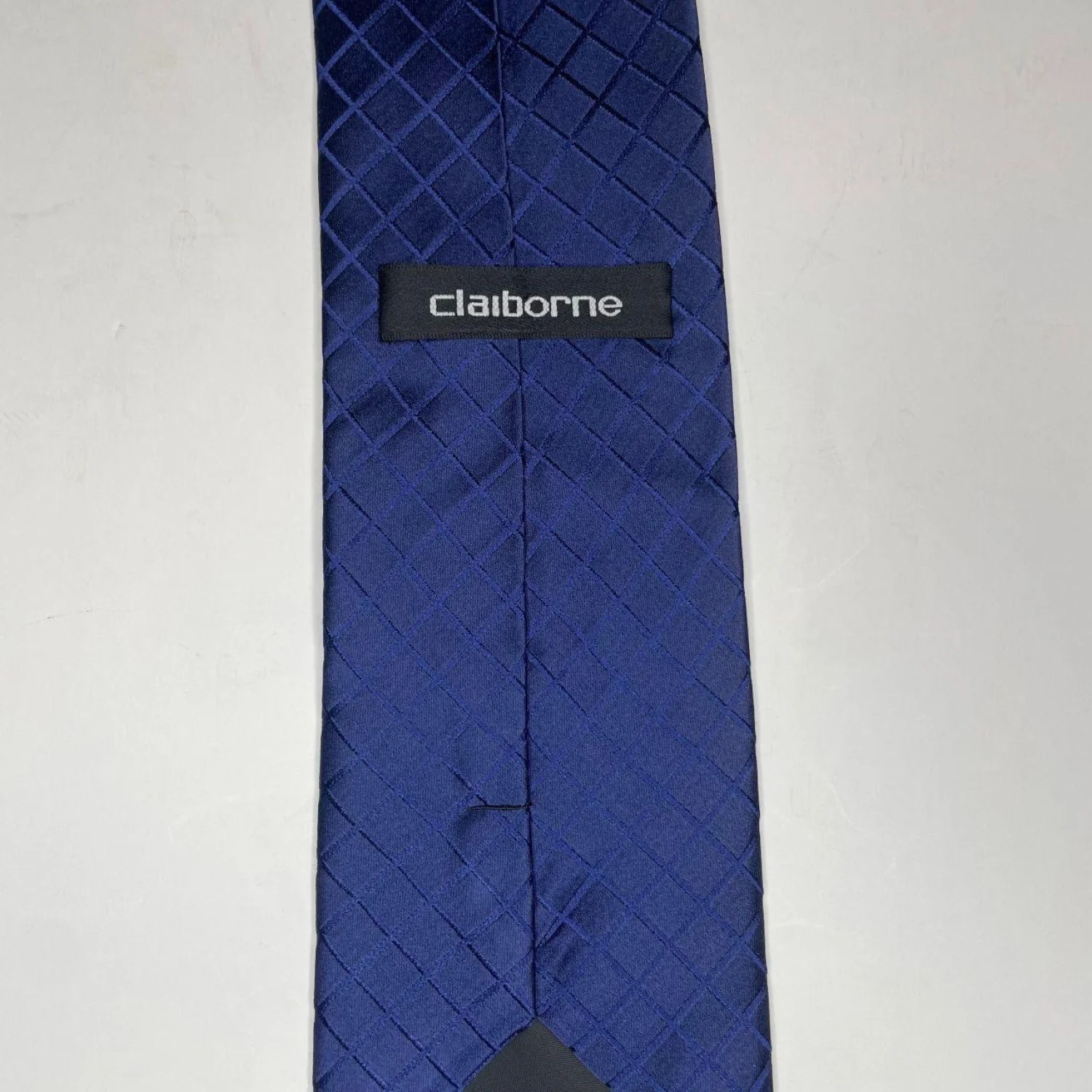 Claiborne 100% SIlk Handmade Men's Navy Vincente Grid Tie
