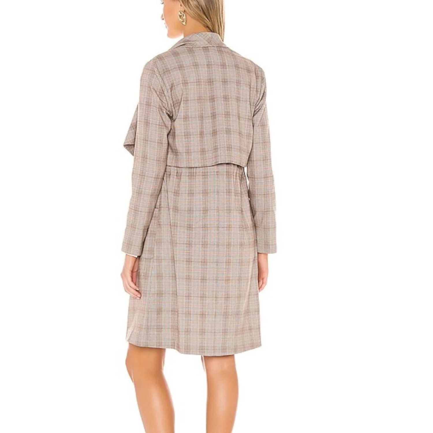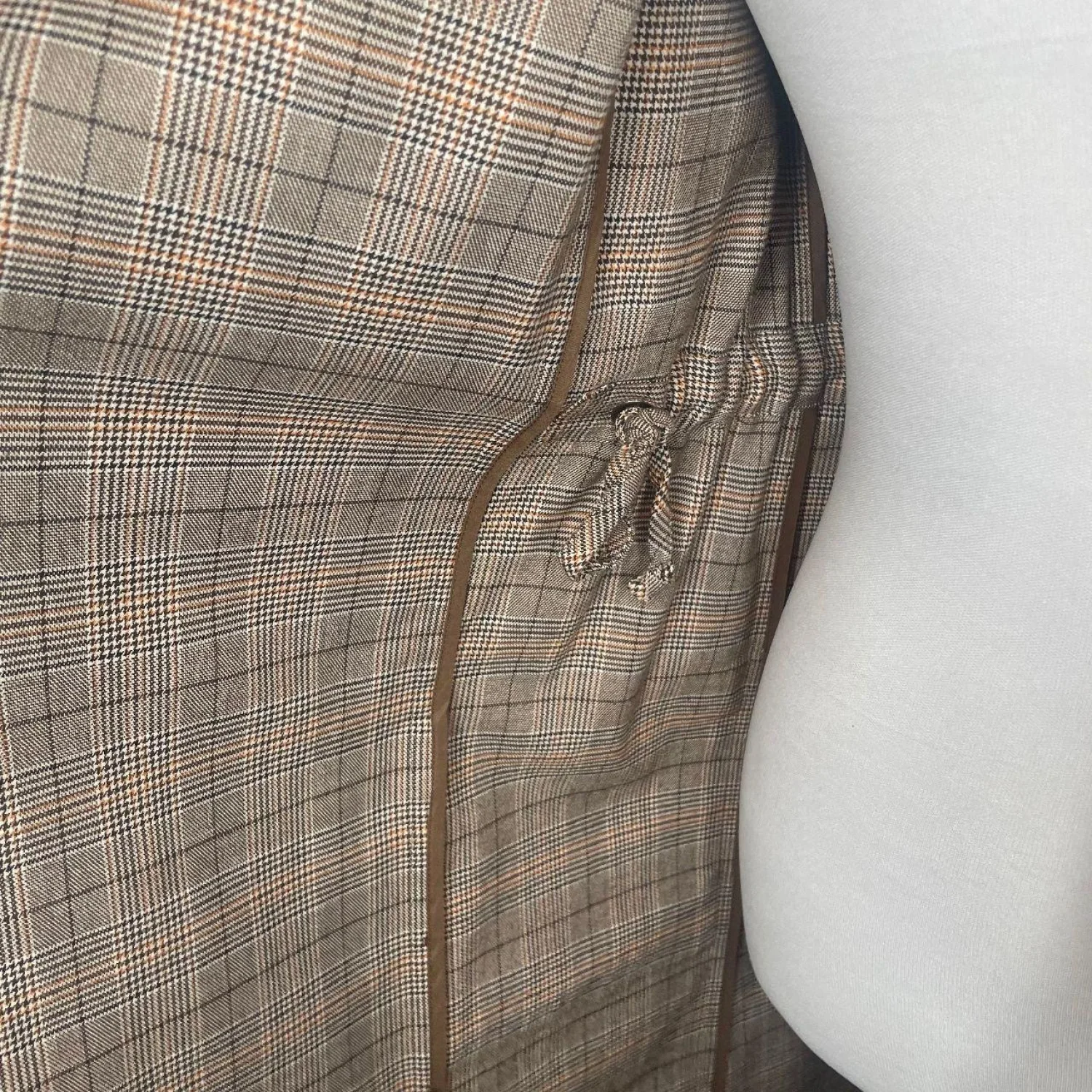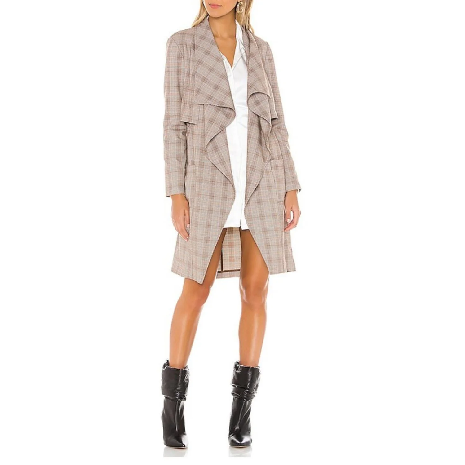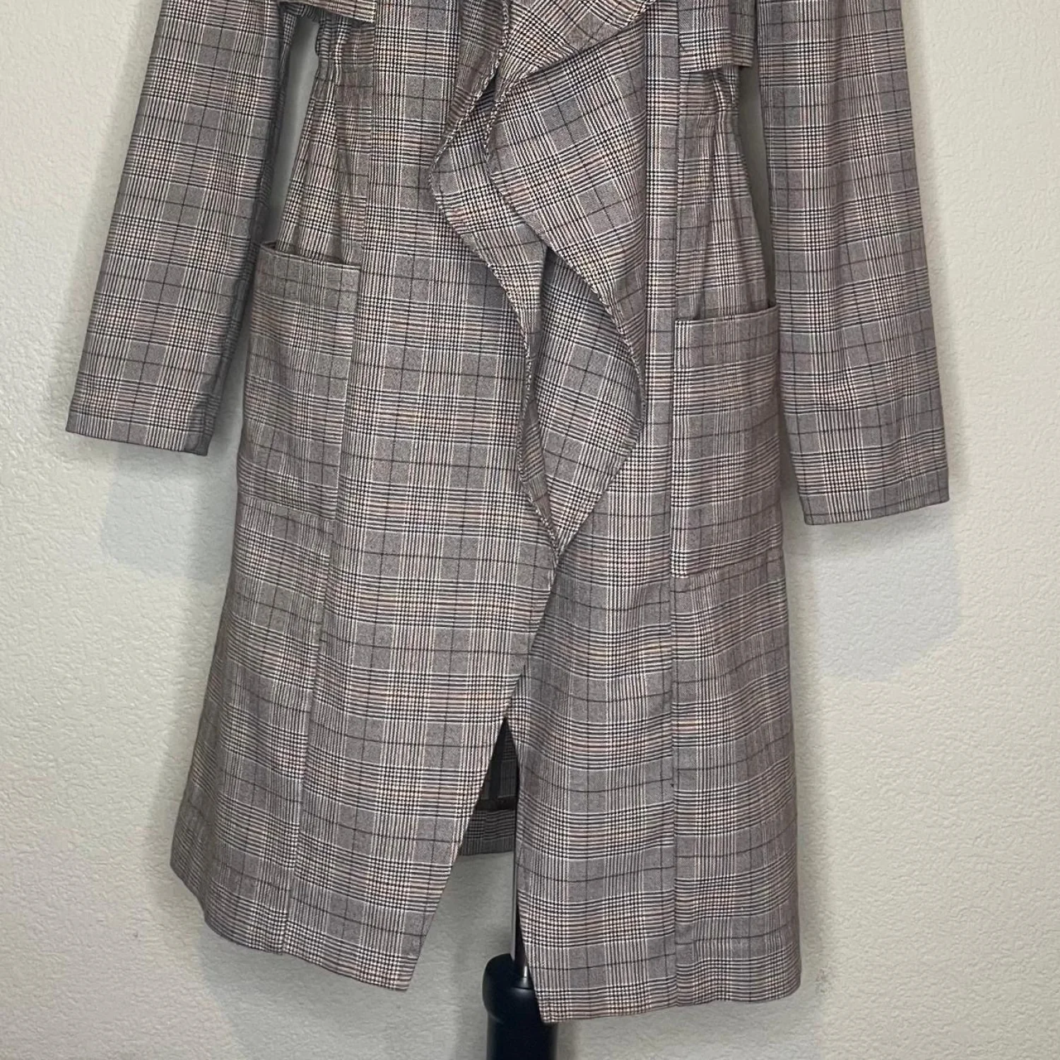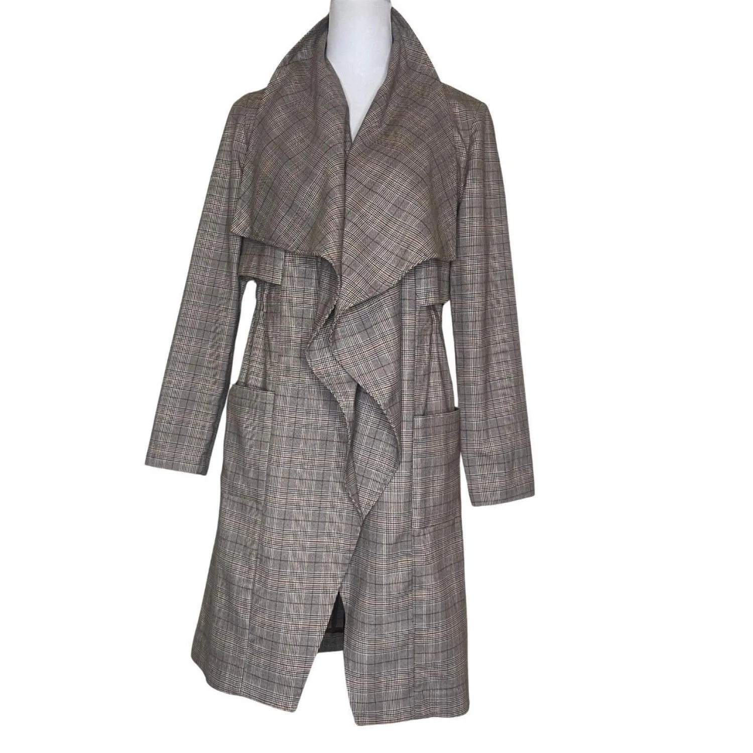 Features: Chic brown plaid trench coat from cupcakes and cashmere. Open front drape style with a waterfall collar. Includes side pockets and a cinched waist for a feminine silhouette. Soft, high-quality fabric. Great for work or casual styling • Style Profile: Dark Academia, Chic, Minimalist, Quiet Luxury, Office Wear, Professional, Fall Fashion, Plaid, Neutral, Sophisticated, Classic, Parisian, Preppy, Modern, Tailored, Light Academia, Capsule Wardrobe, Business Casual, Equestrian, Collegiate • Flaws: No Holes, stains, or tears (Excellent pre-owned condition) • All measurements are approximate PTP: 16.5' Length: 37.5' Sleeve Length: 22' Happy to answer your questions! Super Fast Shipper! International shipping available! Message me for an accurate quote to your country before purchasing.