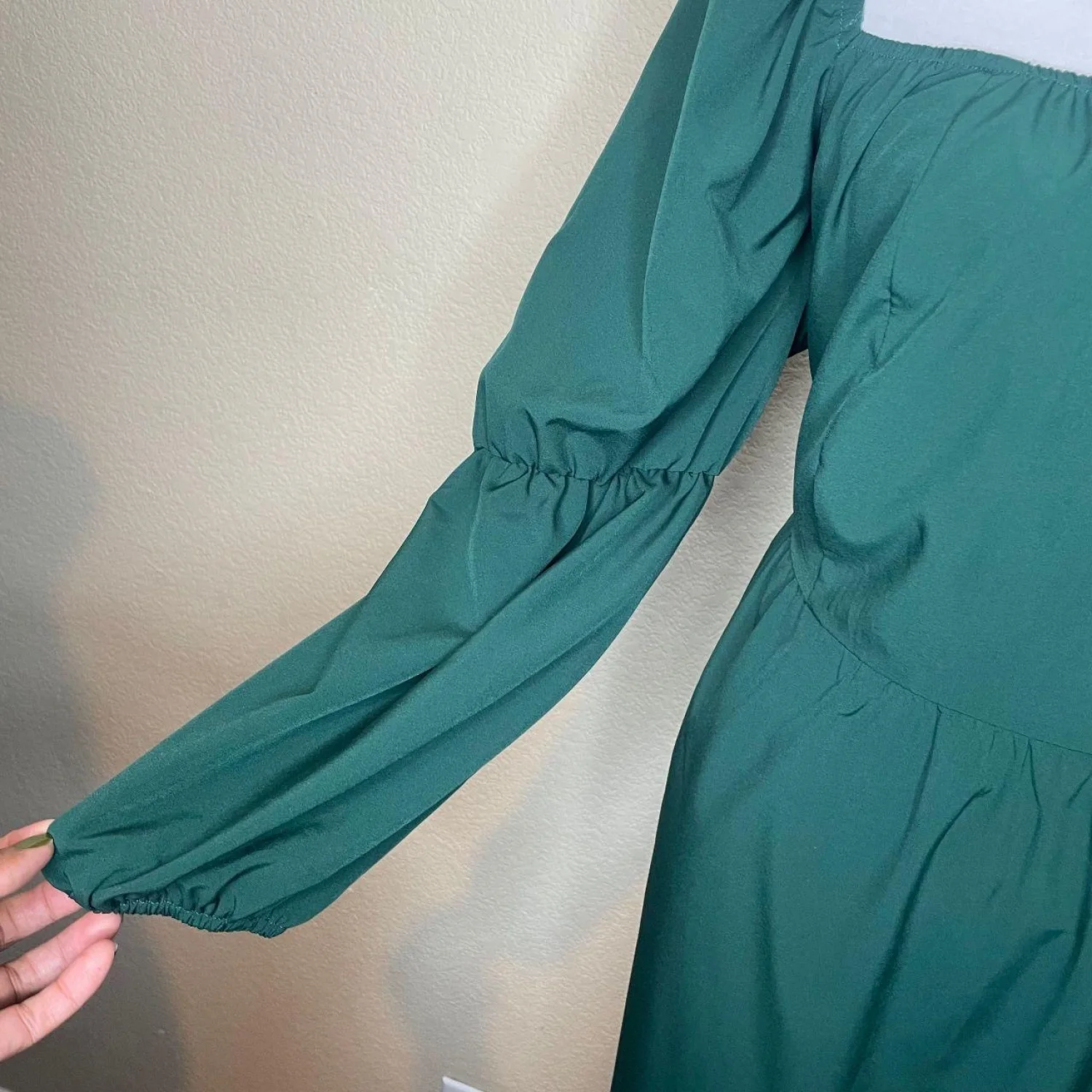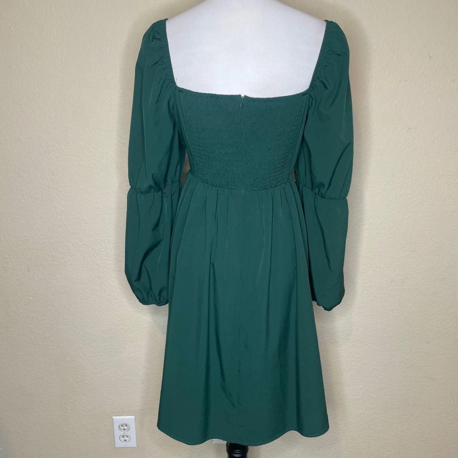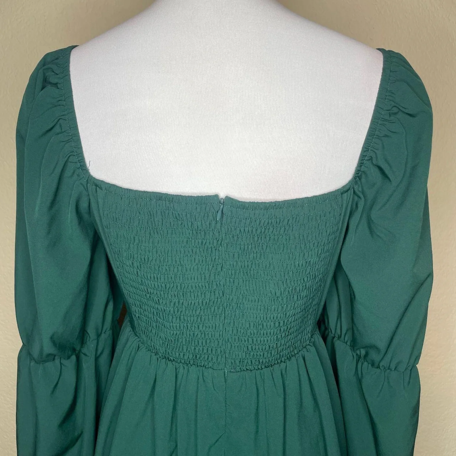 Dark Green Fairycore Smocked Midi Dress 3XL Features: The ultimate forest fairy dress! 🌲 Features a square neck, smocked back, and dramatic puff sleeves. Deep emerald green color. • Style Profile: Cottagecore, Fairycore, Dark Academia, Goth, Coquette • Flaws: No Holes, stains, or tears (Excellent pre-owned condition) • All measurements are approximate PTP: 19" Length: 37.5" Sleeve Length: 24" Happy to answer your questions! Super Fast Shipper!