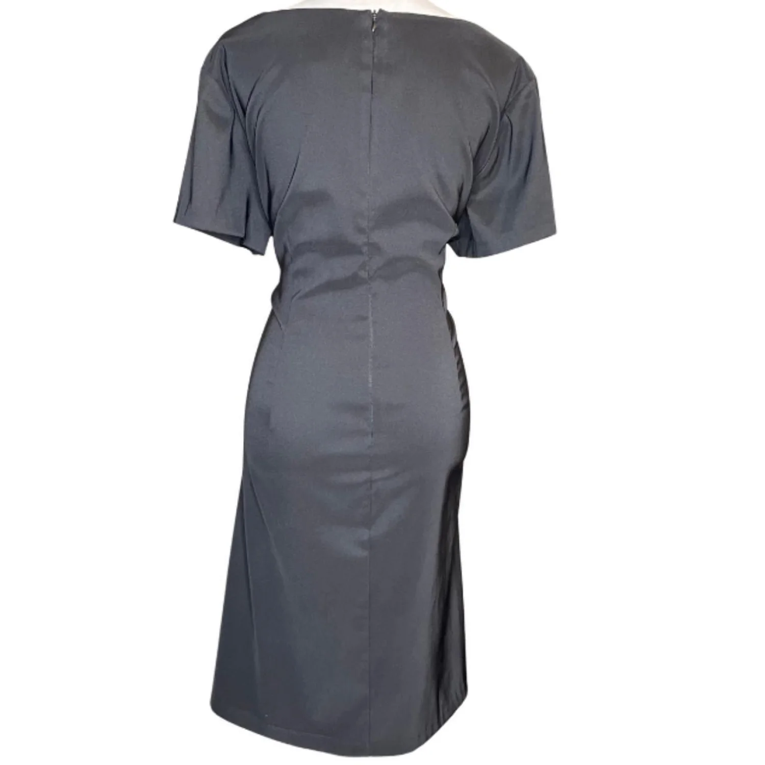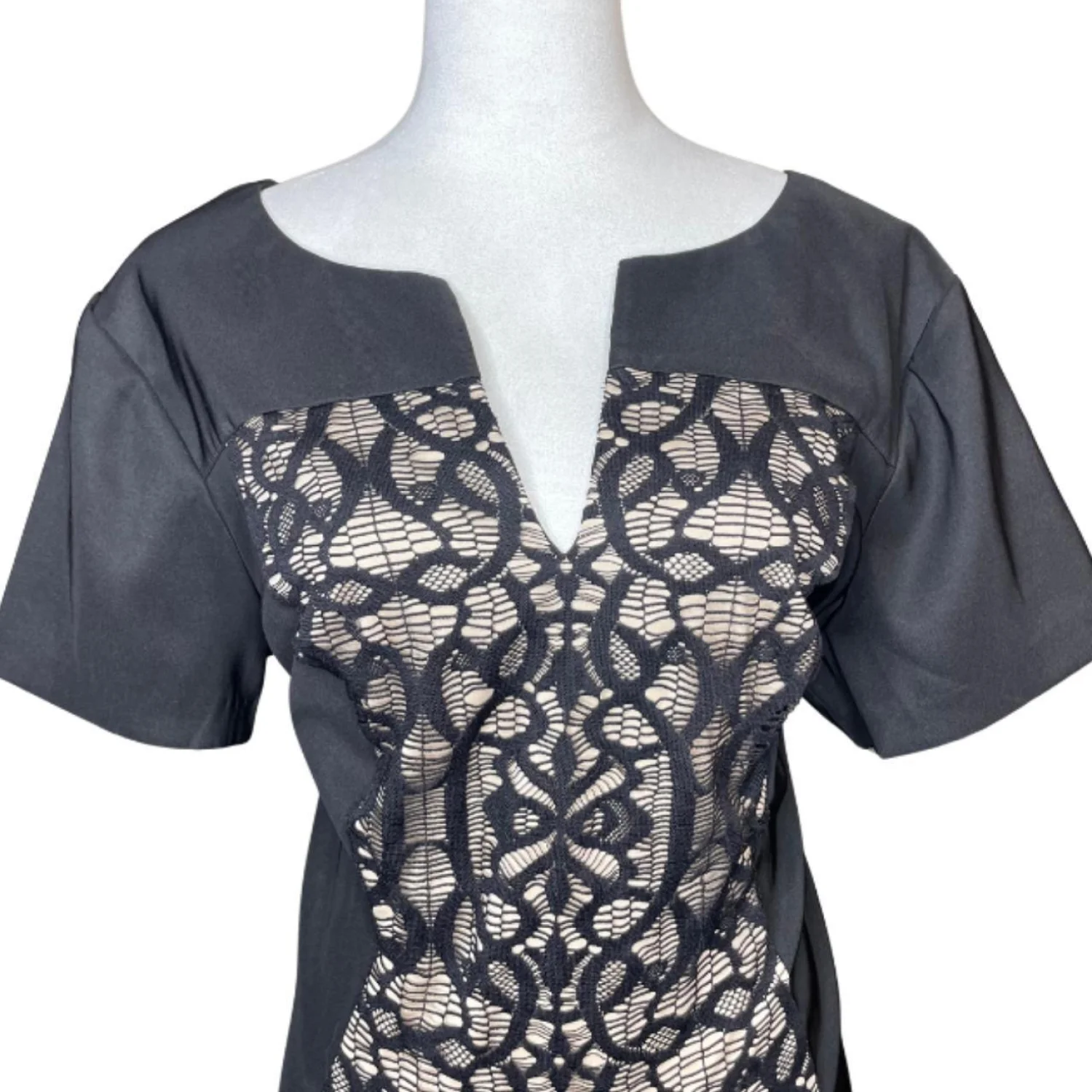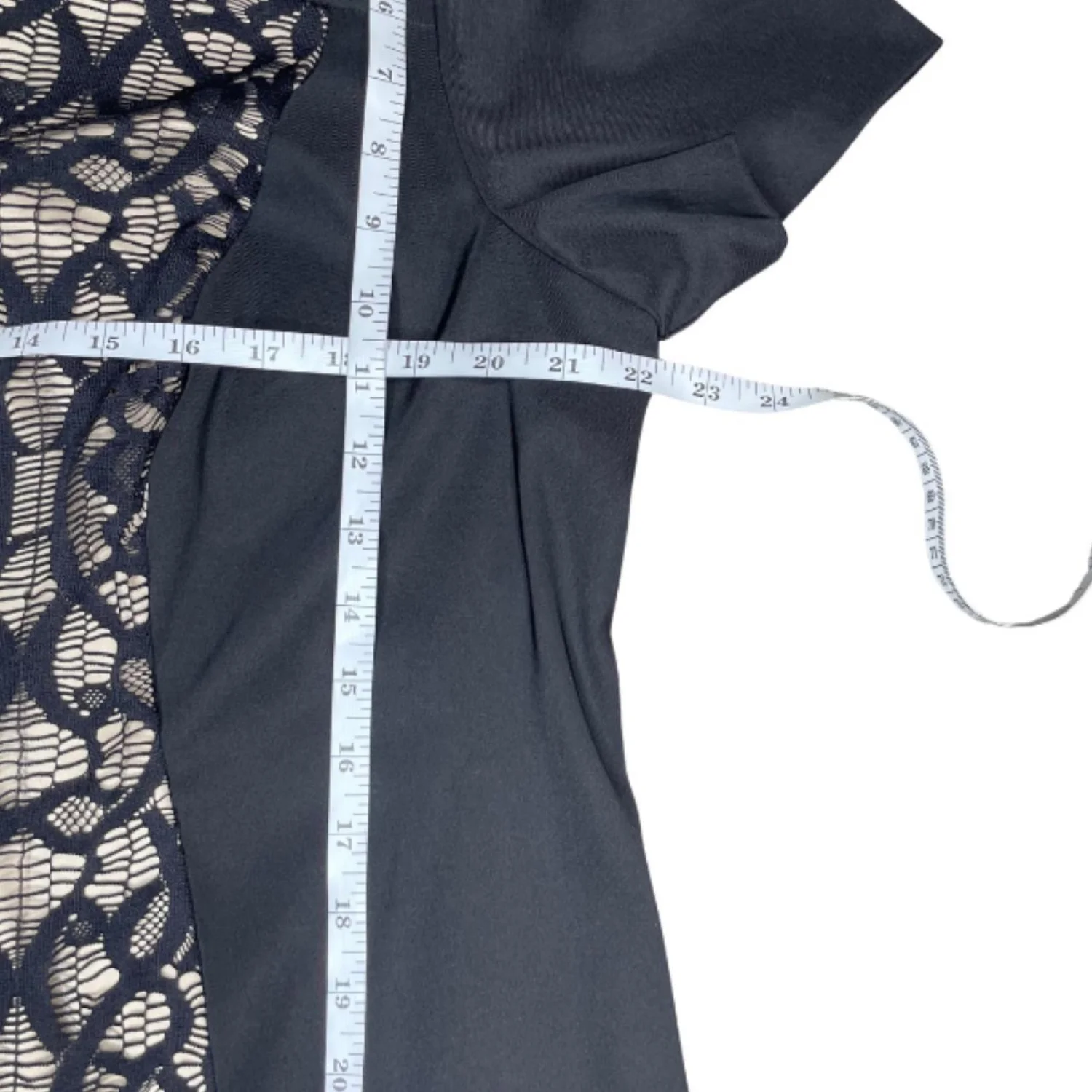 Dress Barn Collection Black Cream Lace Embroidered Sheath Dress Plus Size 20 Features: Channel a dark romantic vibe with this Dressbarn Collection sheath. The silhouette features a structured V-neckline and fluttery short sleeves that offer a soft contrast to the contoured fit. The centerpiece is a heavy geometric lace front panel over a nude-toned lining, creating a striking optical illusion effect that mimics an hourglass shape. The back is solid black with a discreet center zipper and a vented hem for movement. • Style Profile: Whimsigoth, Dark Romantic, Gothlite, Office Goth, Hourglass Illusion, Coquette Core, Victorian Revival, Formal, Evening, Plus Size Gothic • Flaws: No Holes, stains, or tears • Please see the photos for measurements (in inches). PTP: 22' Length: 45' Happy to answer your questions! Super Fast Shipper!