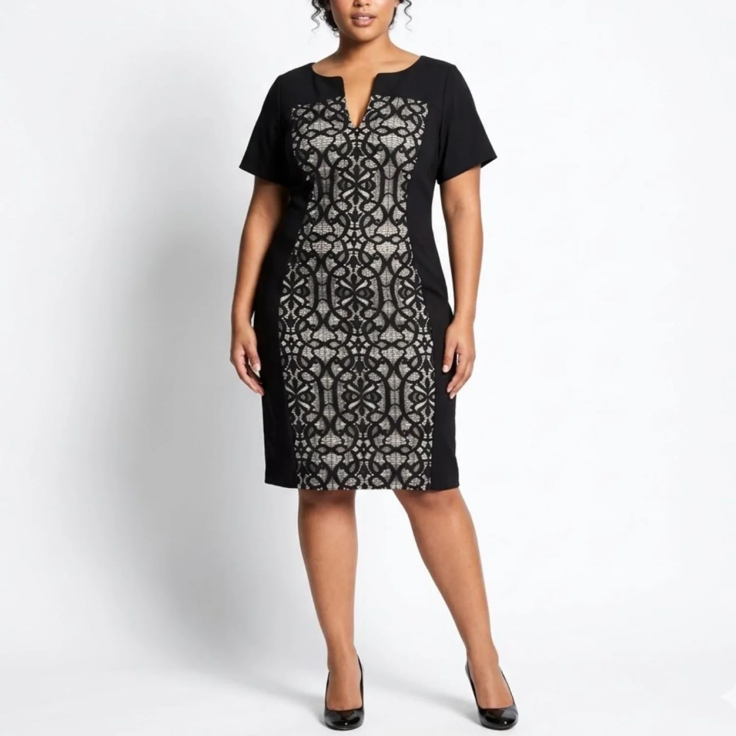 Dress Barn Collection Black Cream Lace Embroidered Sheath Dress Plus Size 20