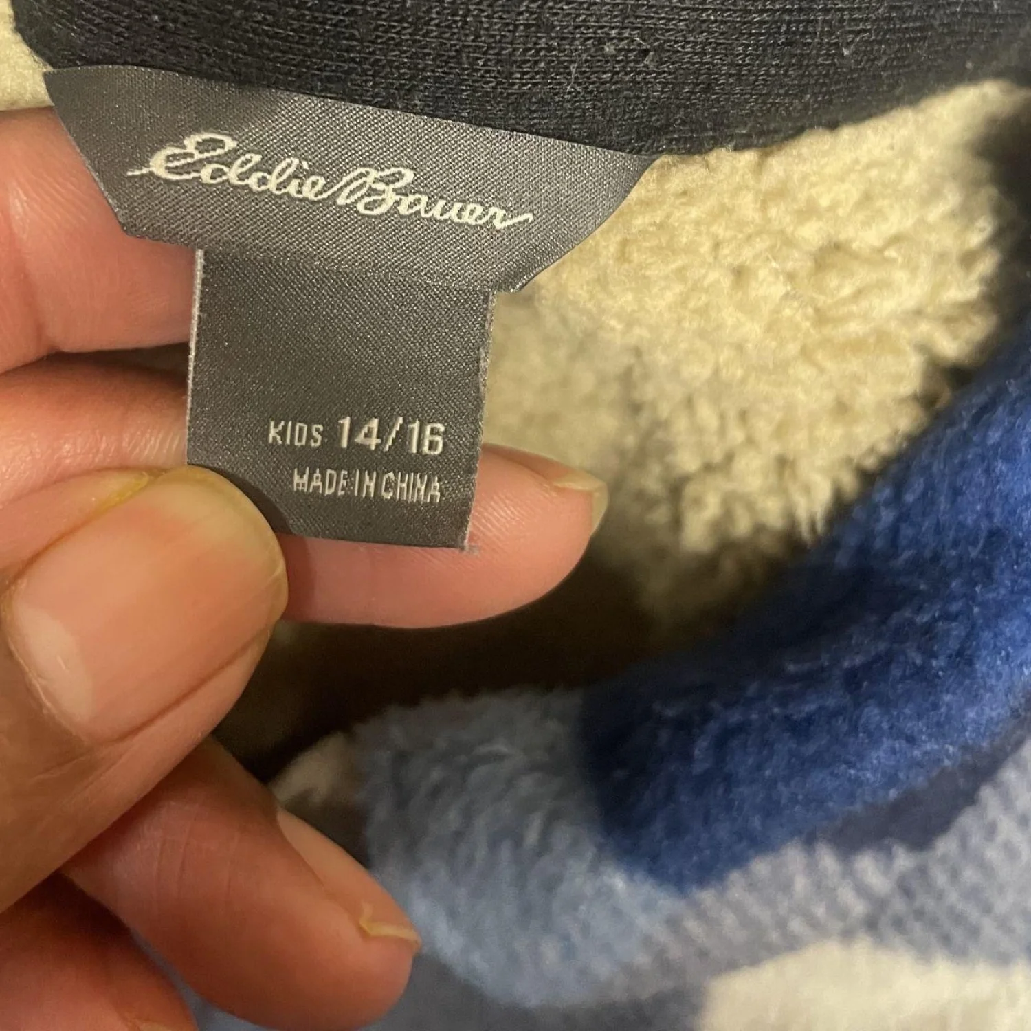 Eddie Bauer Blue Plaid Sherpa Lined Shacket Kids XL 14/16