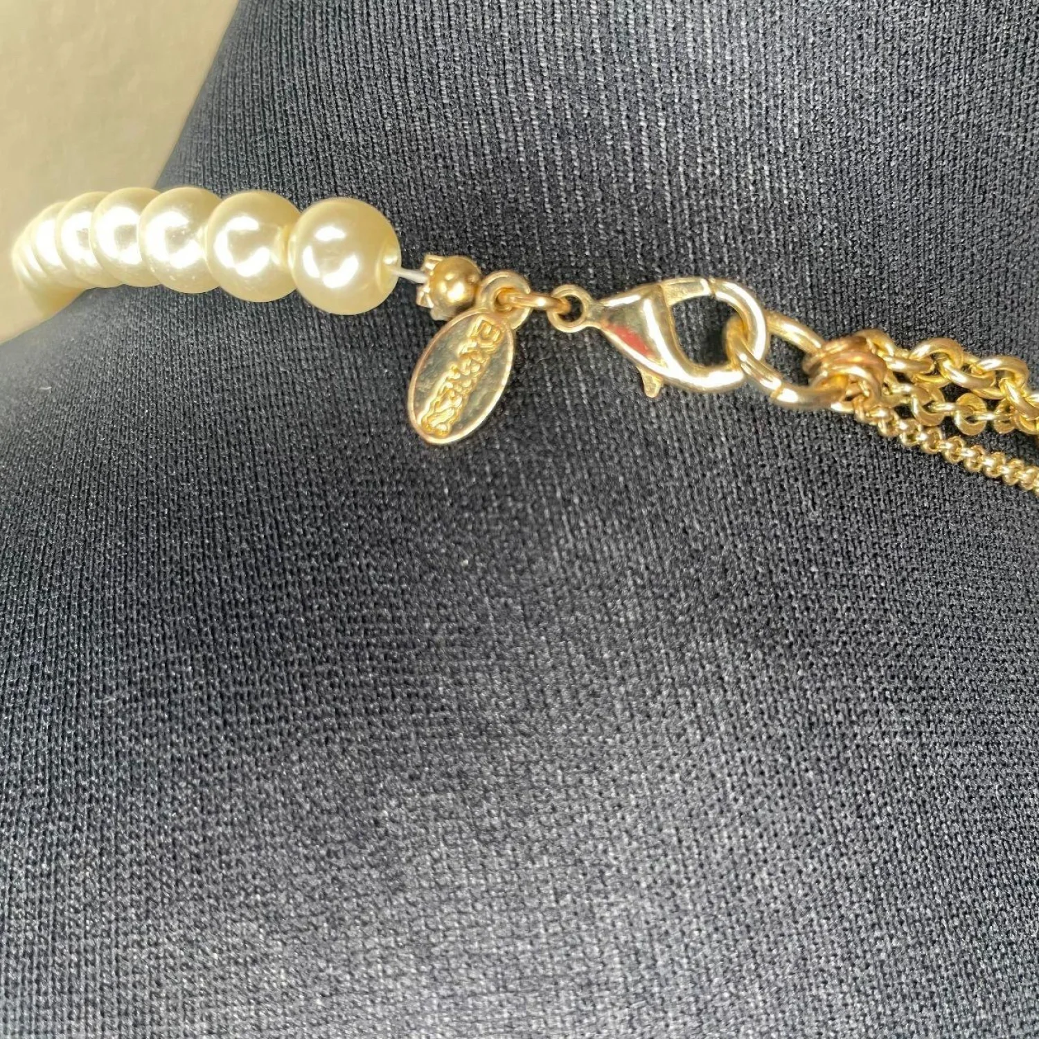 Features: This stunning long-length necklace features a unique asymmetrical design. One side is crafted with a classic strand of cream faux pearls, while the other side features a layered mix of textured gold-tone chains. The centerpiece is a dramatic 4.5-inch gold-tone chain tassel topped with a crystal/rhinestone-encrusted cap. • Style Profile: coquette, mob wife, whimsygoth, dark academia, regencycore, old money, y2k, boho chic, maximalist, eclectic grandpa, glam, vintage express, statement jewelry, mixed media, mermaidcore • Flaws: No Holes, stains, or tears (Excellent pre-owned condition) • All measurements are approximate 30-32 inches total (Opera length) with a 4.5" tassel drop. Happy to answer your questions! Super Fast Shipper!