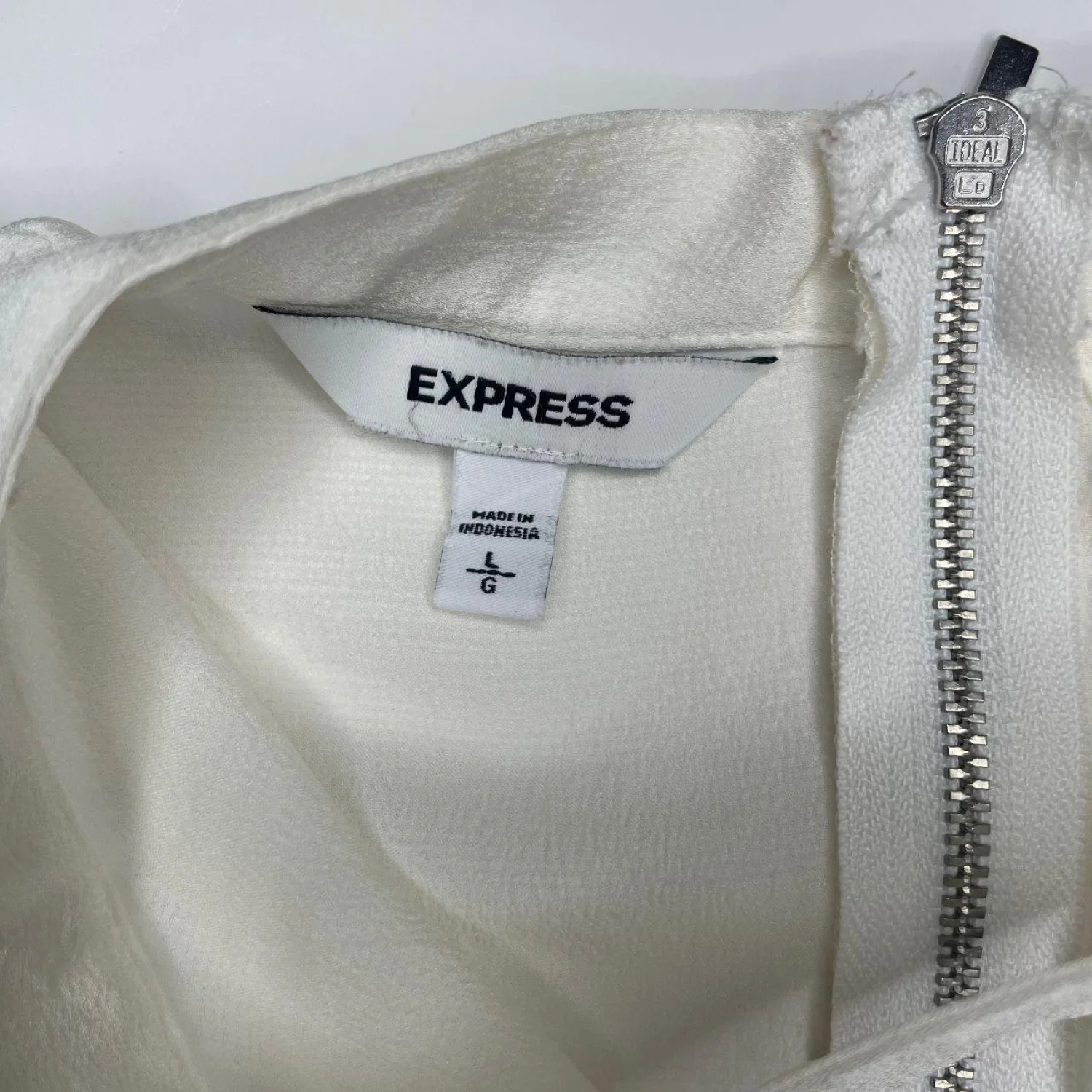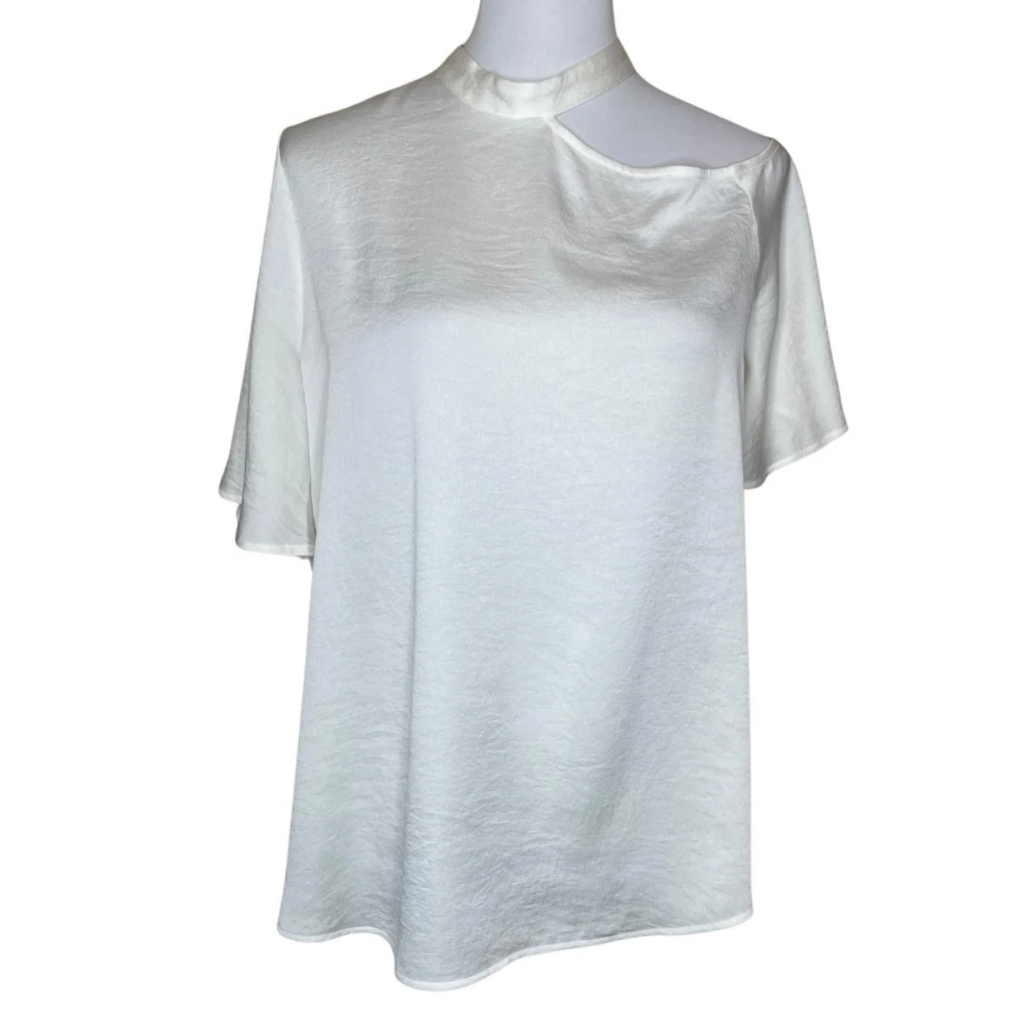 Express White Satin Asymmetric Cutout Neckline Blouse - Size Large