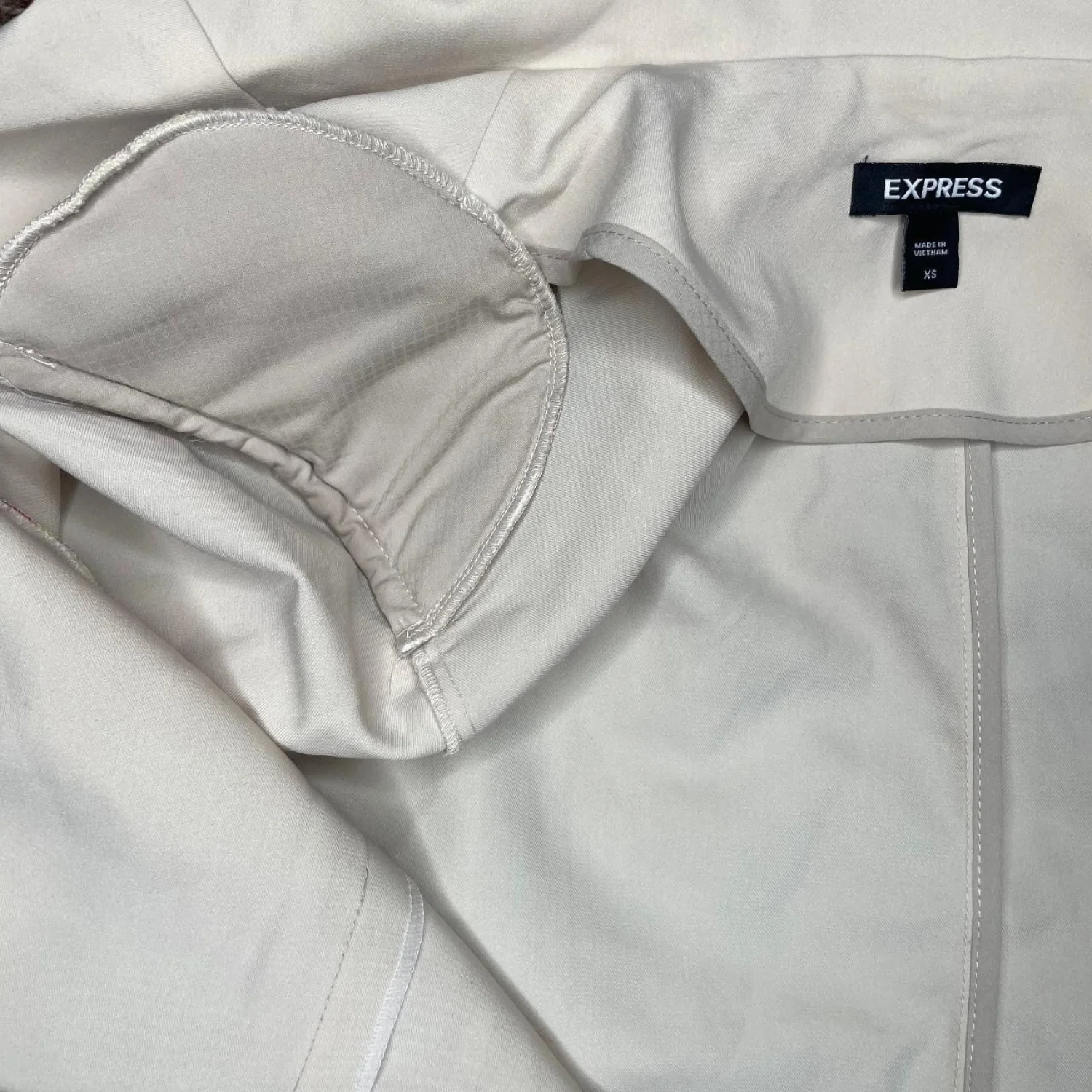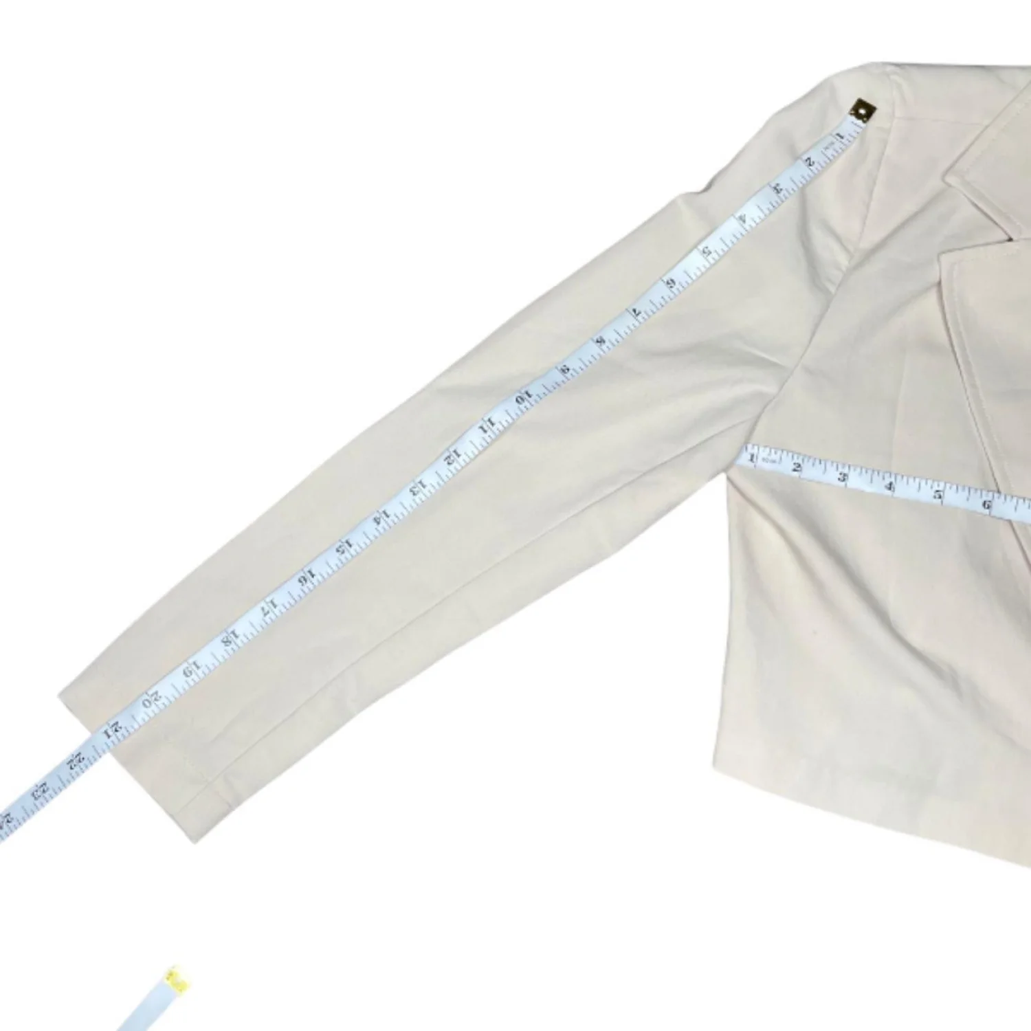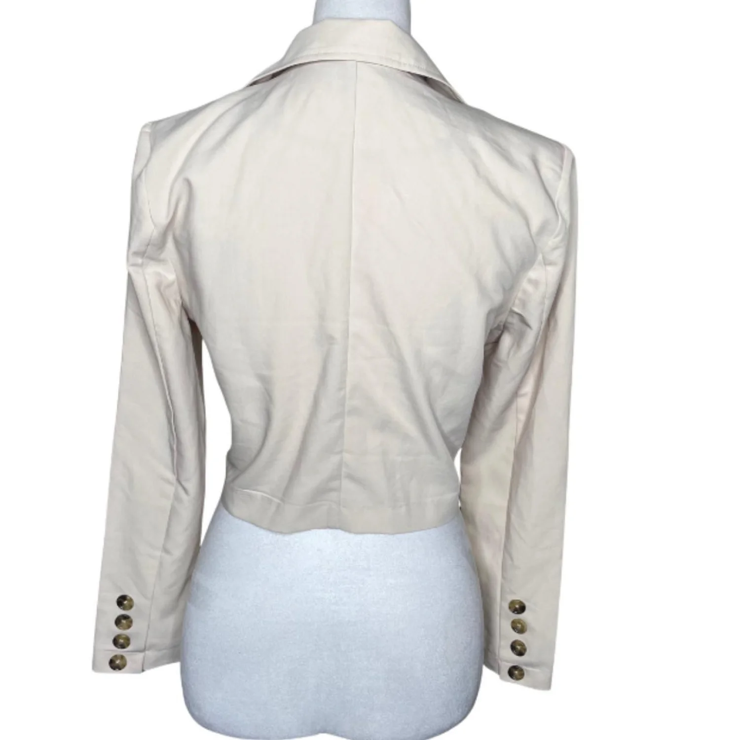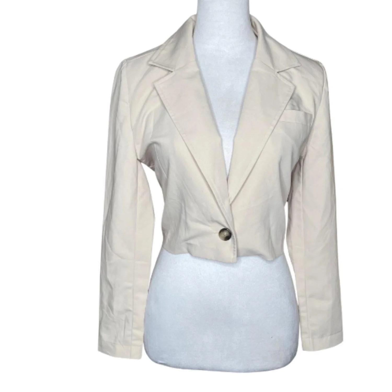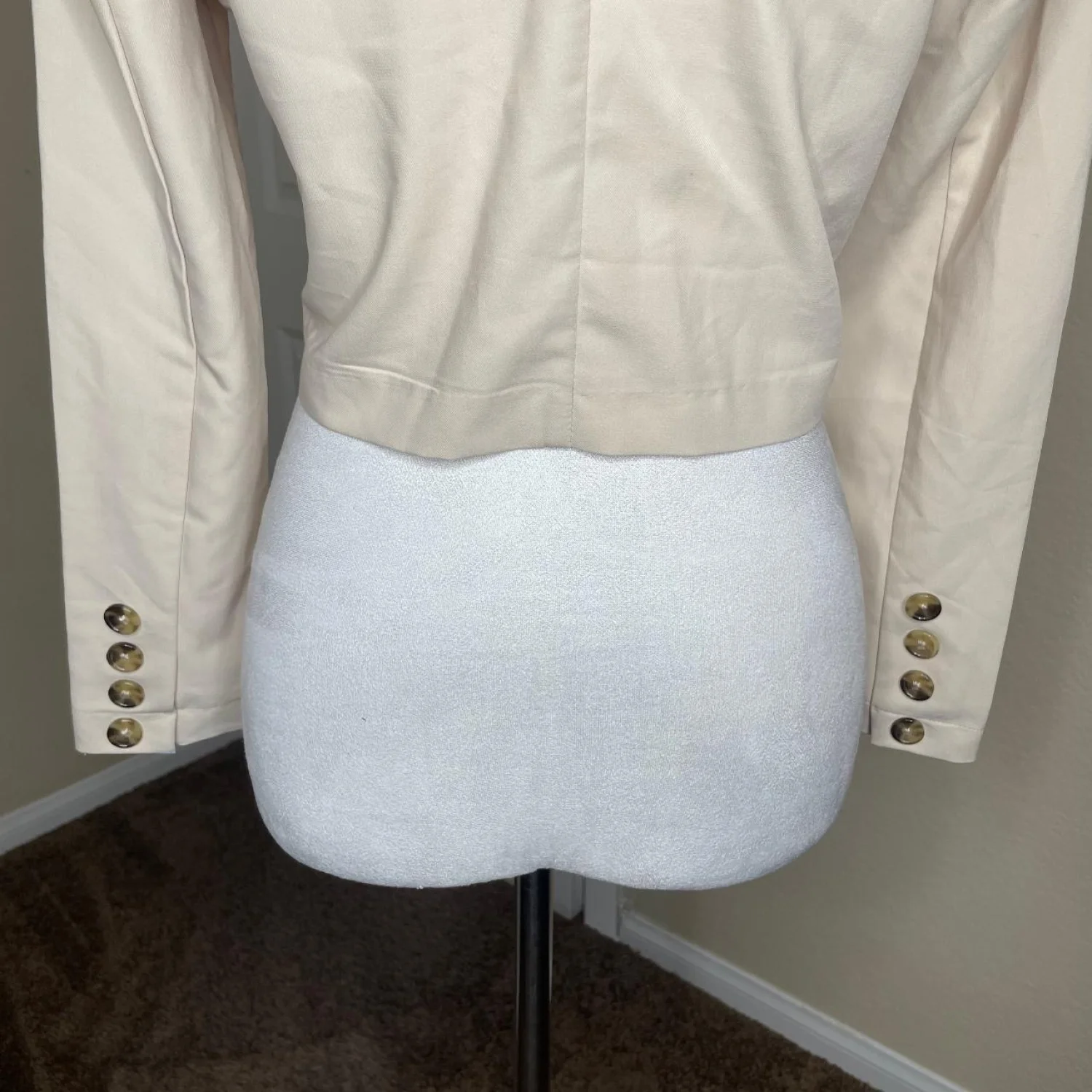 Express Women's Cream Cropped Oversized Long Sleeve Buttoned Blazer