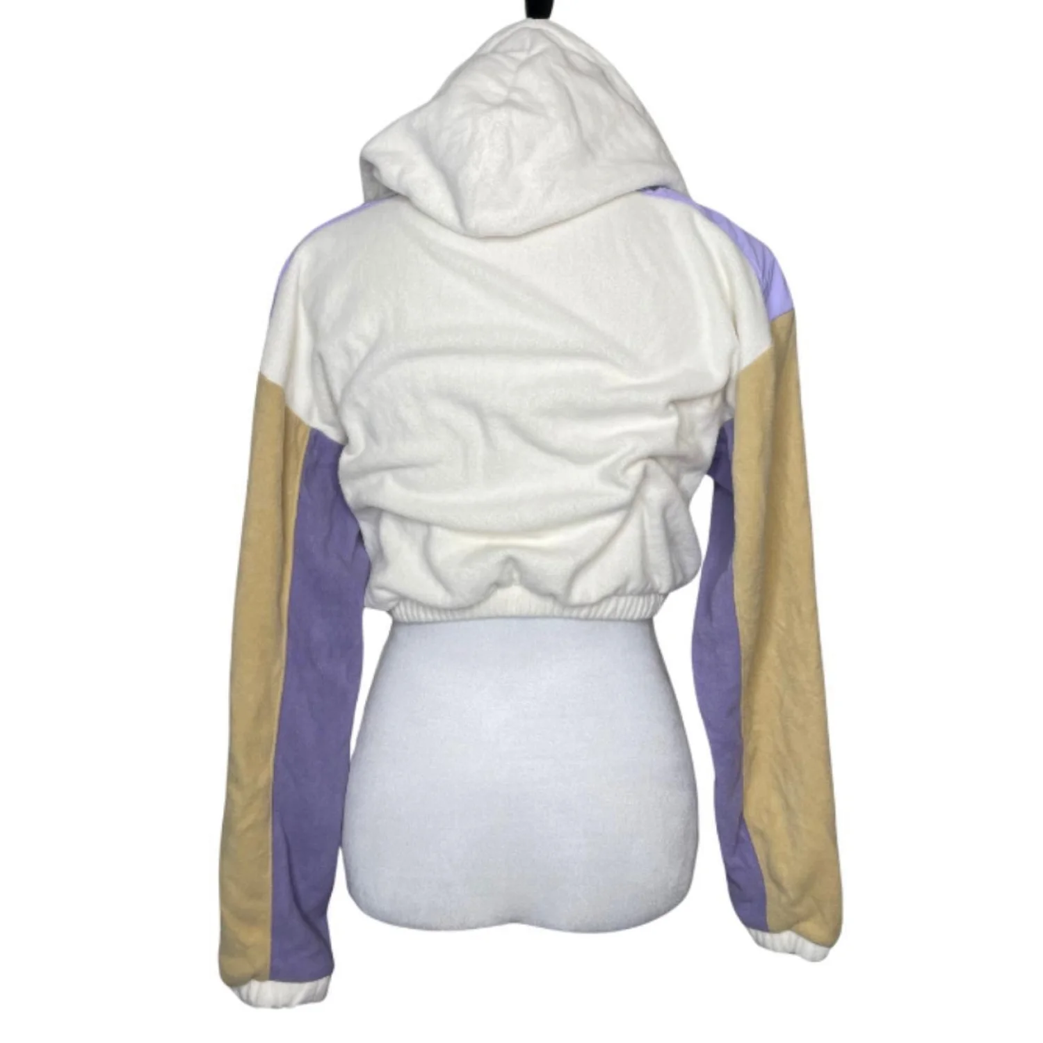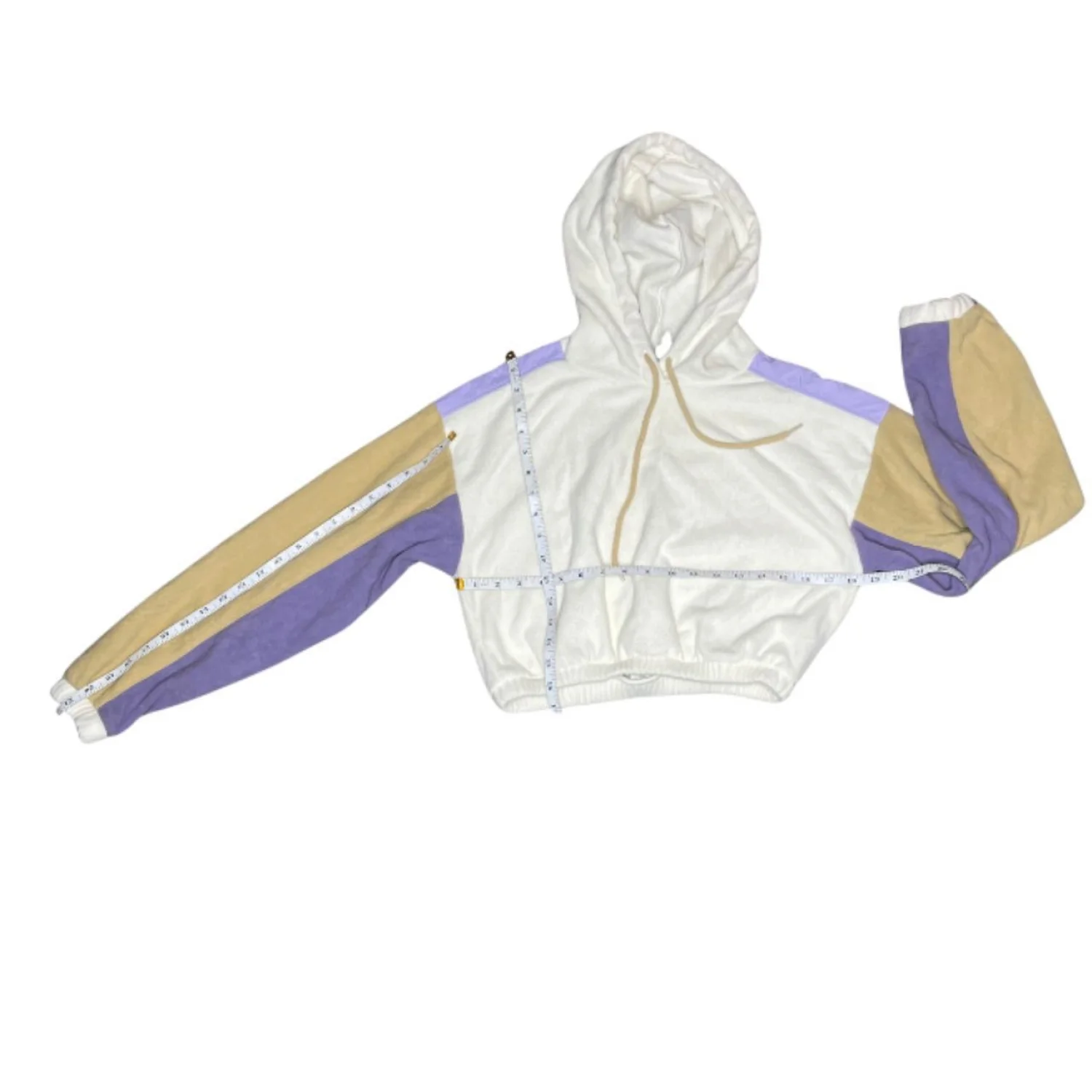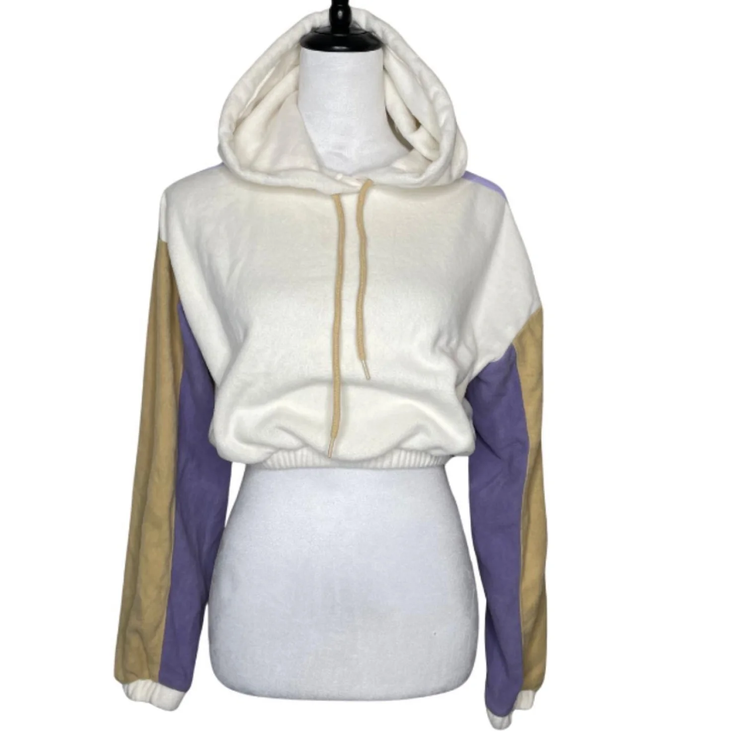 Forever 21 Women's Fleece Cropped Colorblock Long Sleeve Hoodie Sweater