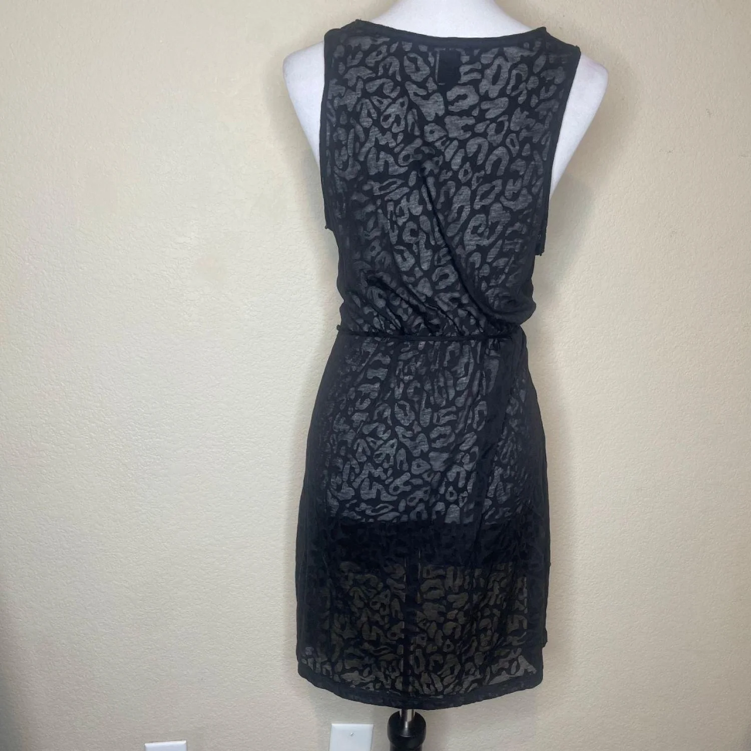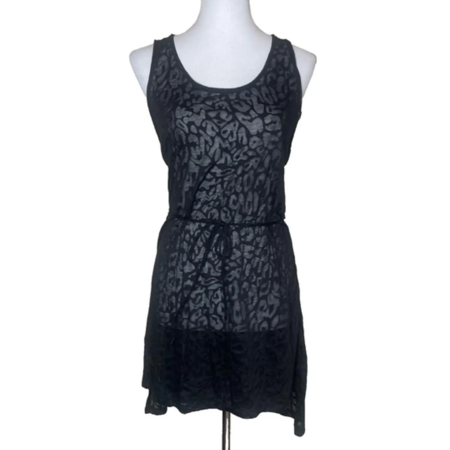 H&M Black Leopard Print Burnout Tank Dress Medium Sleeveless Cinched Waist Mini