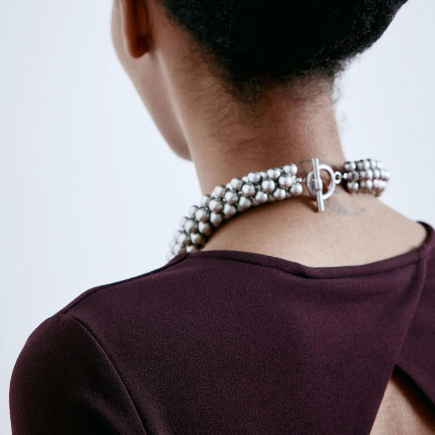 H&M Burgundy Cut-out Soft Jersey Round Neck Mini Dress Partly Lined Sz Large