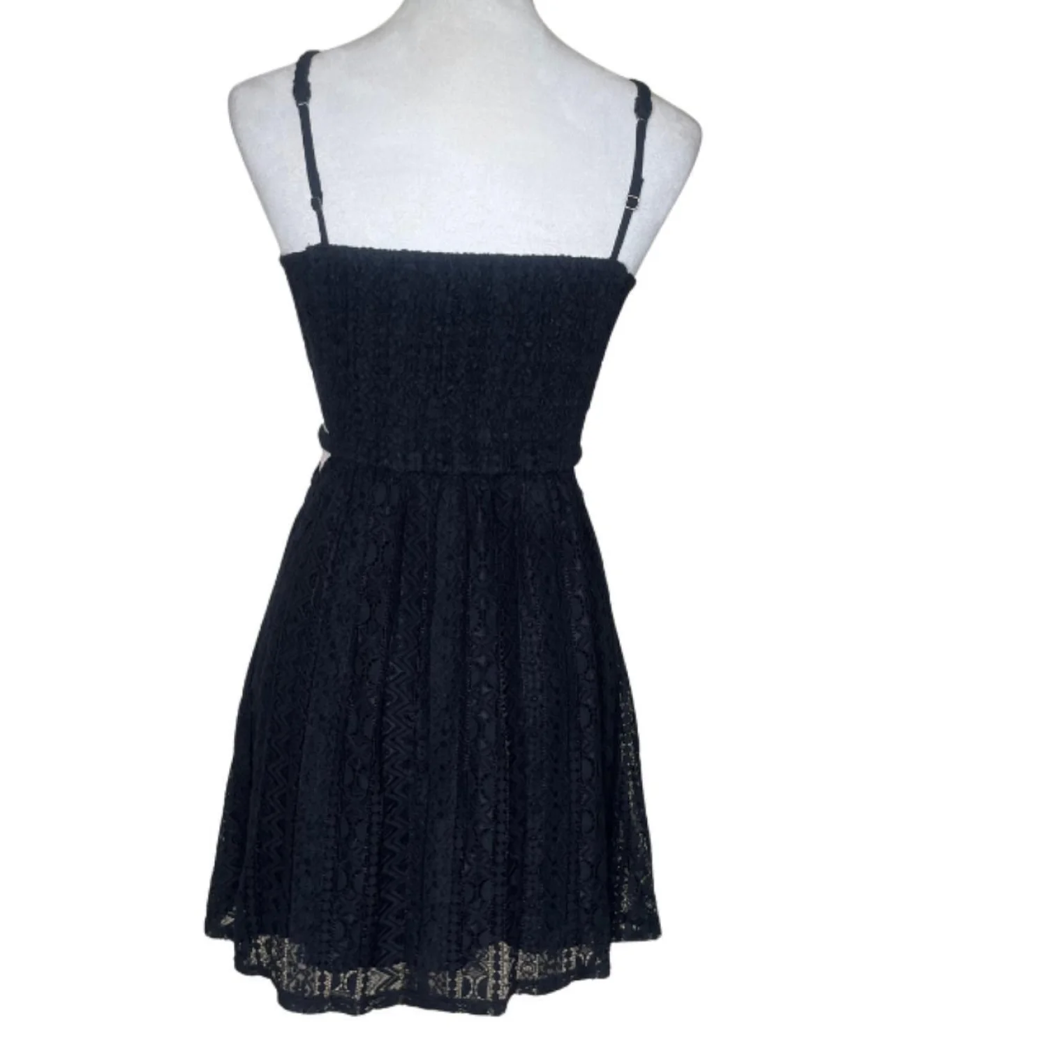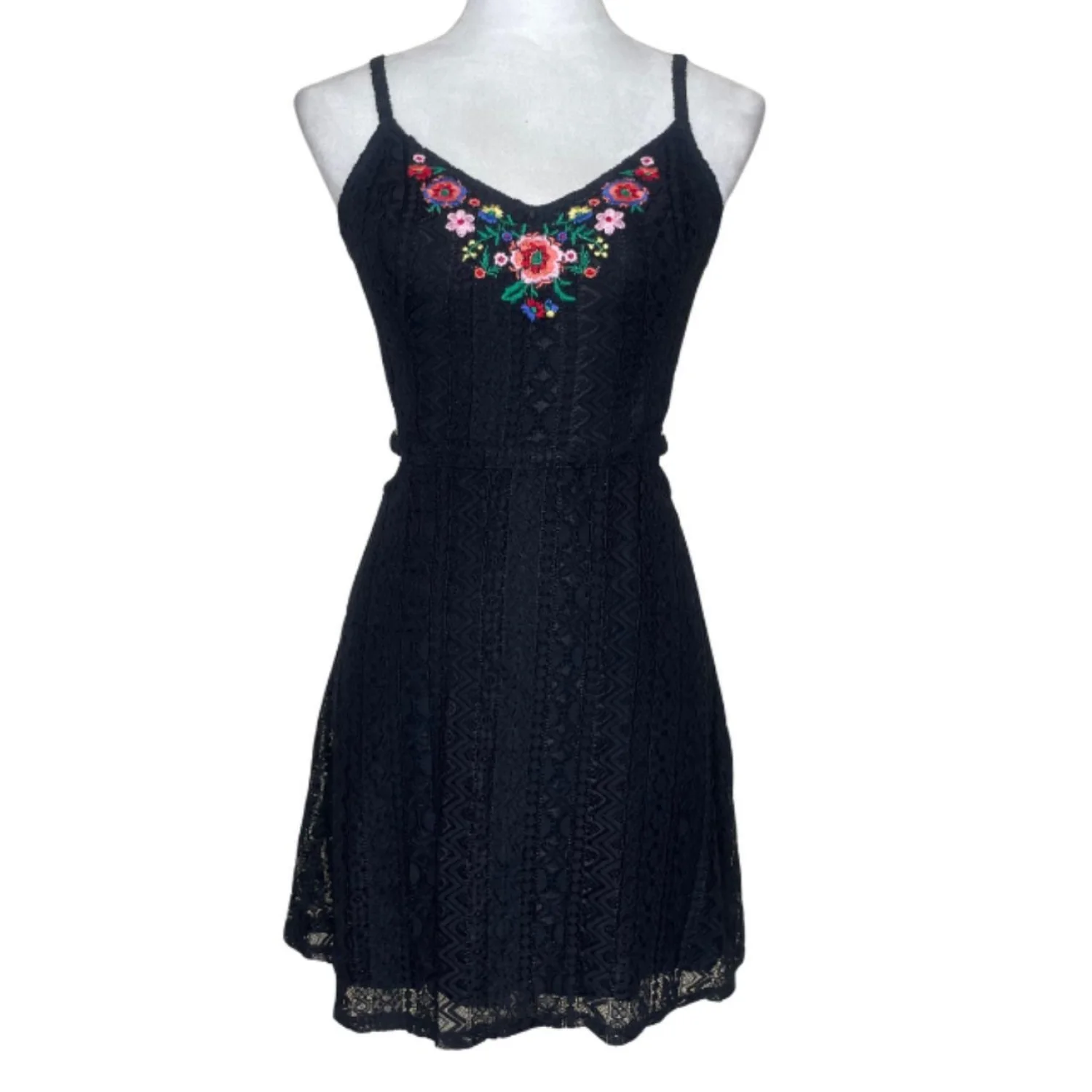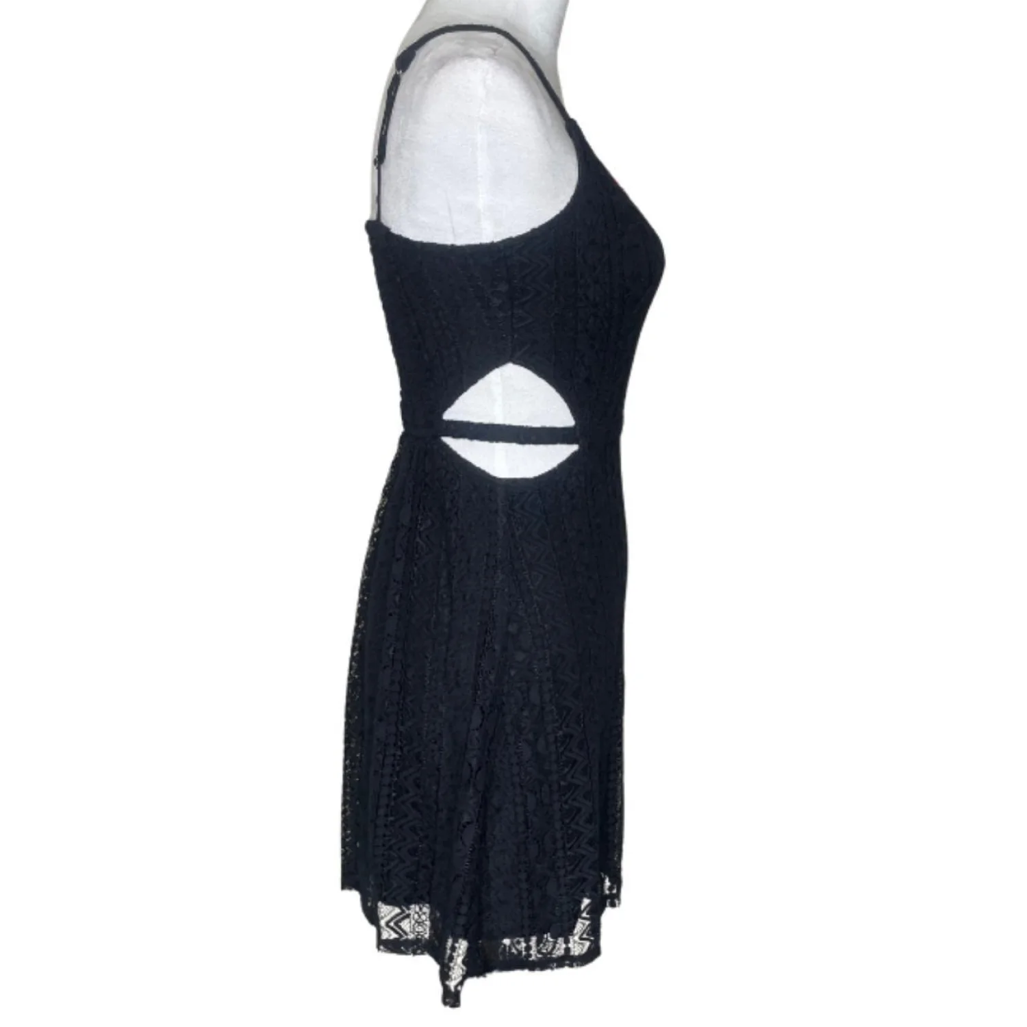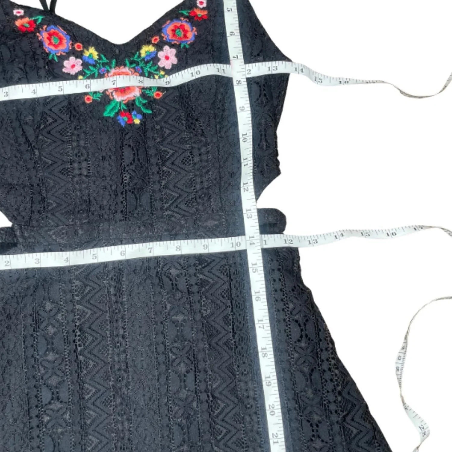 HOLLISTER Black Lace Folk Floral Embroidered Side Cutout Mini Dress S