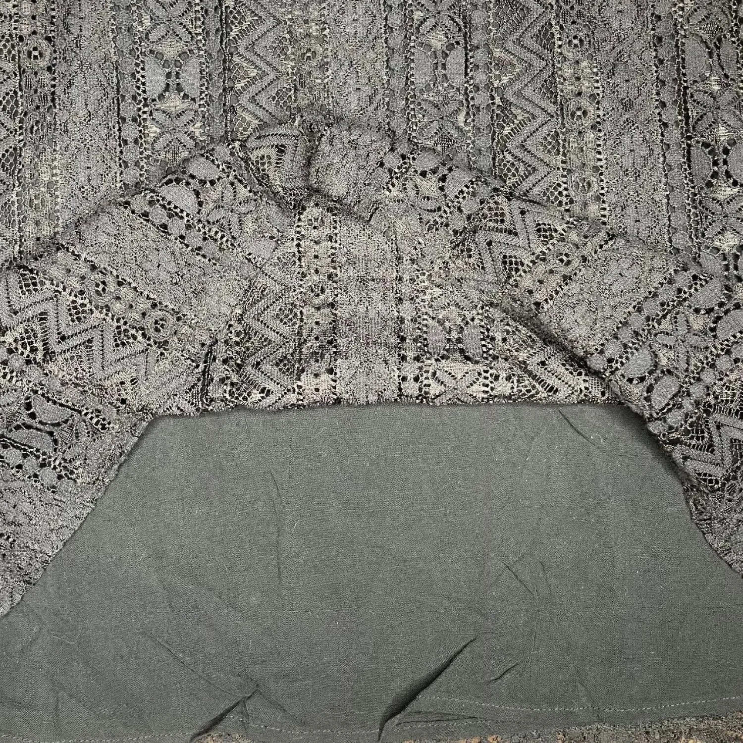 HOLLISTER Black Lace Folk Floral Embroidered Side Cutout Mini Dress S Features: This smocked-back mini features a structured V-neckline framed by vibrant, multi-color folk floral embroidery. The geometric lace overlay creates an intricate, textured silhouette, accented by daring waist cutouts that wrap toward an open-back vibe. It’s fully lined with a scalloped hemline for a sharp, finished edge. • Style Profile: hollister, folkcore, coquette, dark cottagecore, embroidered, lace mini dress, cutout, bohemian, festival, whimsygoth, floral, summer, mallgoth, soft girl, dainty • Flaws: No Holes, stains, or tears • Please see the photos for measurements (in inches). PTP: 14' Waist: 12' Length: 31' Happy to answer your questions! Super Fast Shipper! Bundle items for discounts!