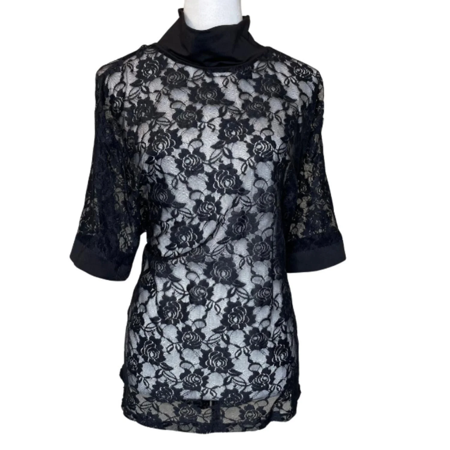 INCERUN Black Floral Lace Mock Neck Mesh Top Short Sleeve Sheer Shirt Plus 5XL Features: Spice your style with this striking INCERUN mock neck top featuring an all-over floral lace design. The sheer, lightweight mesh construction and short sleeves make it a perfect layering piece for festivals, parties, or edgy streetwear looks. Finished with solid black cuffs and a comfortable high-neck collar, this versatile 5XL top offers a bold, gender-neutral aesthetic. • Style Profile: gothic, streetwear, festival, regencycore, cottagecore, avant garde, dark academic, grunge, genderless, coquette • Flaws: No Holes, stains, or tears • Please see the photos for measurements (in inches). PTP: 24' Length: 28' • Happy to answer your questions! Super Fast Shipper!
