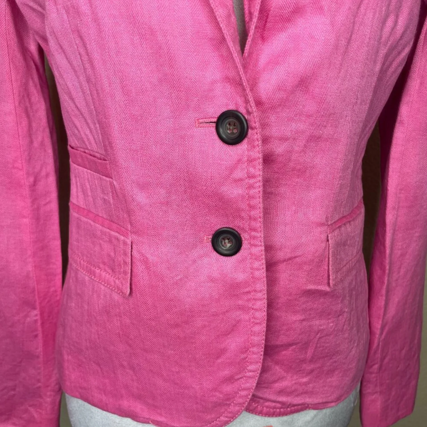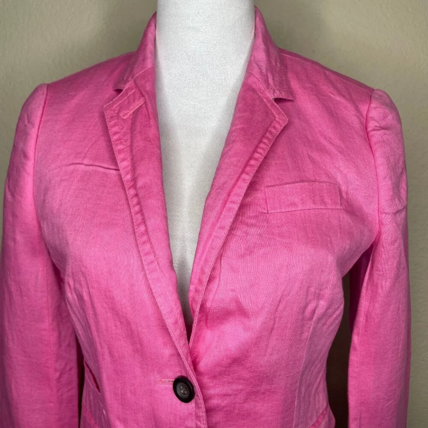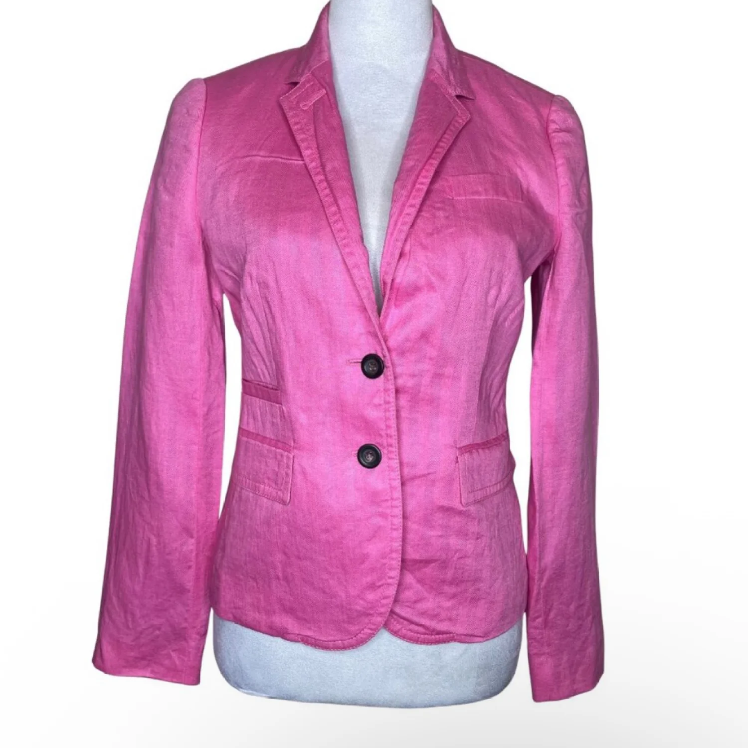 J Crew Factory Linen Barbie Pink Preppy Schoolboy Herringbone Blazer Jacket Sz 2
