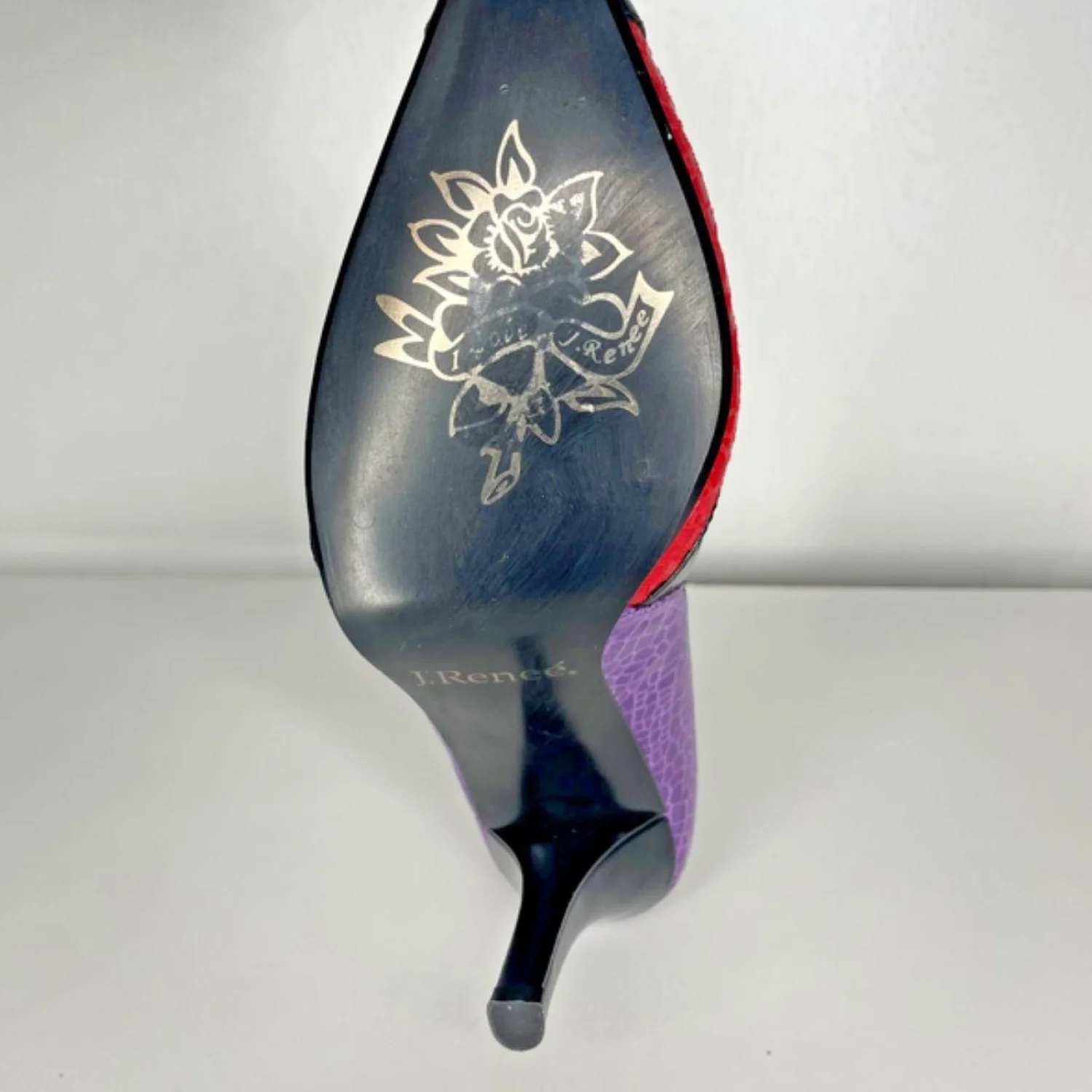 A stylish and elegant shoe perfect for various occasions such as parties, formal events, and business meetings. With a pointed toe and stiletto heel, this slip-on pump exudes sophistication and class. The multicolor and leather lining provide a luxurious feel, while the cushioned insole ensures comfort for all-day wear. Whether you're wearing it for summer, fall, or spring events, these heels are sure to make a statement and elevate your outfit. Made by the reputable brand J. Renee, these pumps are a must-have for any fashion-forward woman's shoe collection. Features: • Style Profile: Sophisticated Professional, Corpcore, Event Luxe Event Club Date Sexy • Flaws: No Holes, stains, or tears • Please see the photos for measurements (in inches). Happy to answer your questions! Super Fast Shipper! Bundle items for discounts!