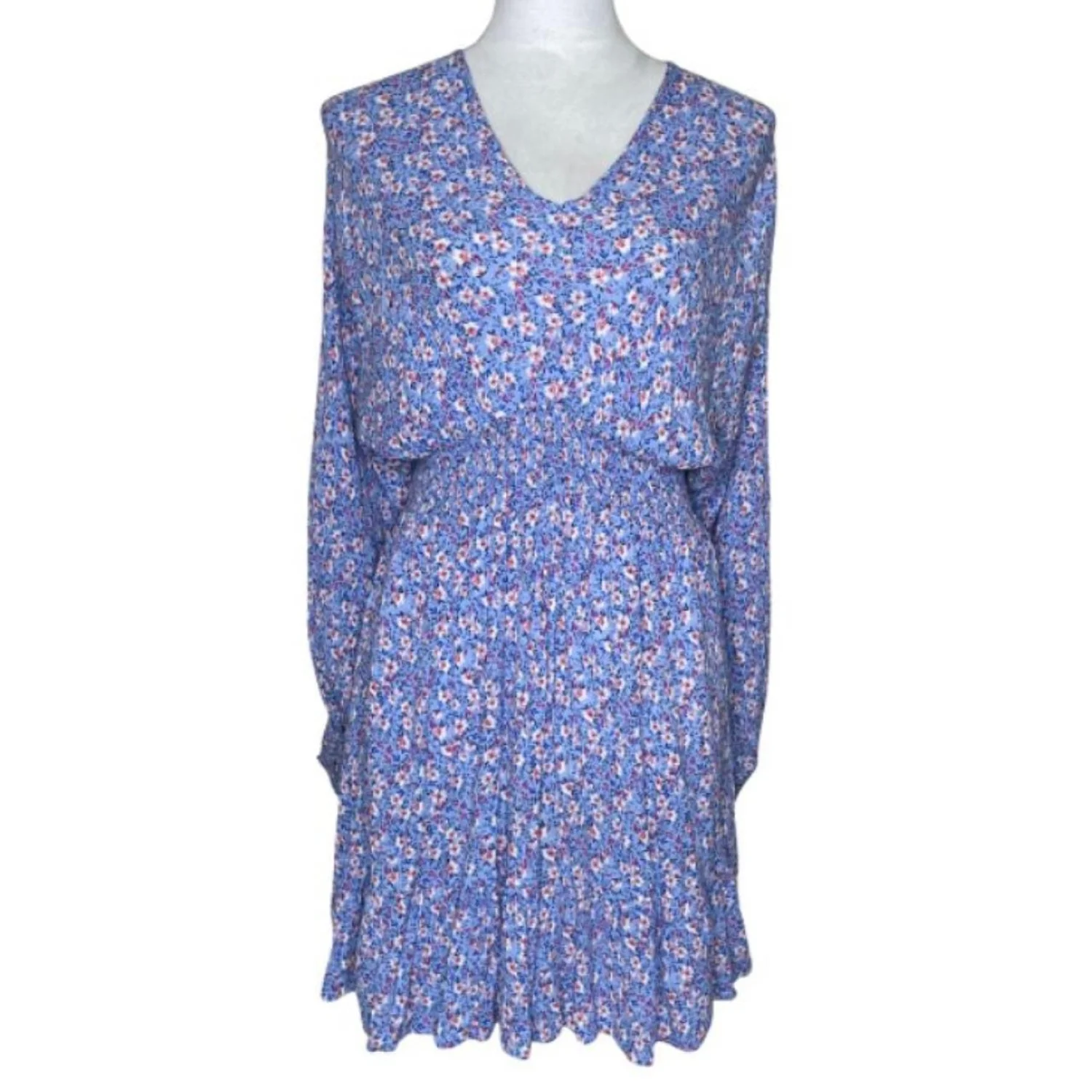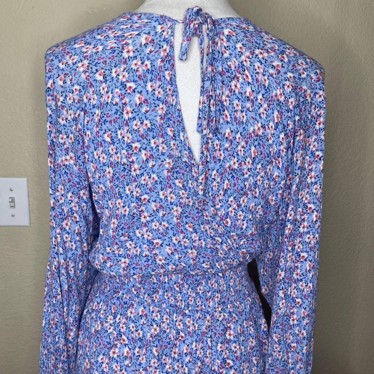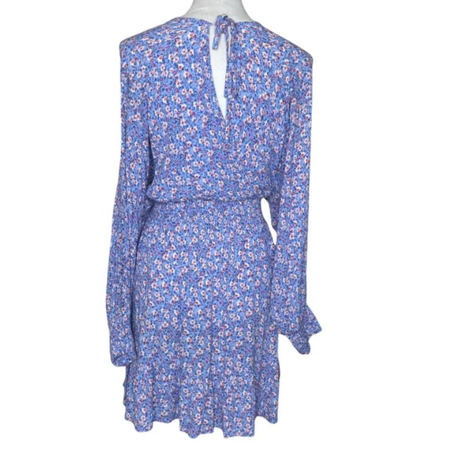 JAPNA Blue Ditsy Floral Smocked Mini Dress Cottagecore Coquette Boho Med Features: Hard cottagecore vibes with this periwinkle ditsy floral mini. The bodice features a deep V-neck and heavy smocking at the waist to create a sharp cinched silhouette against the flowy skirt. It has long sleeves with matching smocked cuffs and a functional tie-back detail over a keyhole cutout. Lightweight with a soft, crinkled texture and a ruffled hem finish. • Style Profile: cottagecore, coquette, soft girl, ditsy floral, boho, prairie, peasant, feminine, whimsical, romantic, festival, spring, summer, dollcore, aesthetic • Flaws: No Holes, stains, or tears • Please see the photos for measurements (in inches). PTP: 16' Length: 33.5' Happy to answer your questions! Super Fast Shipper!