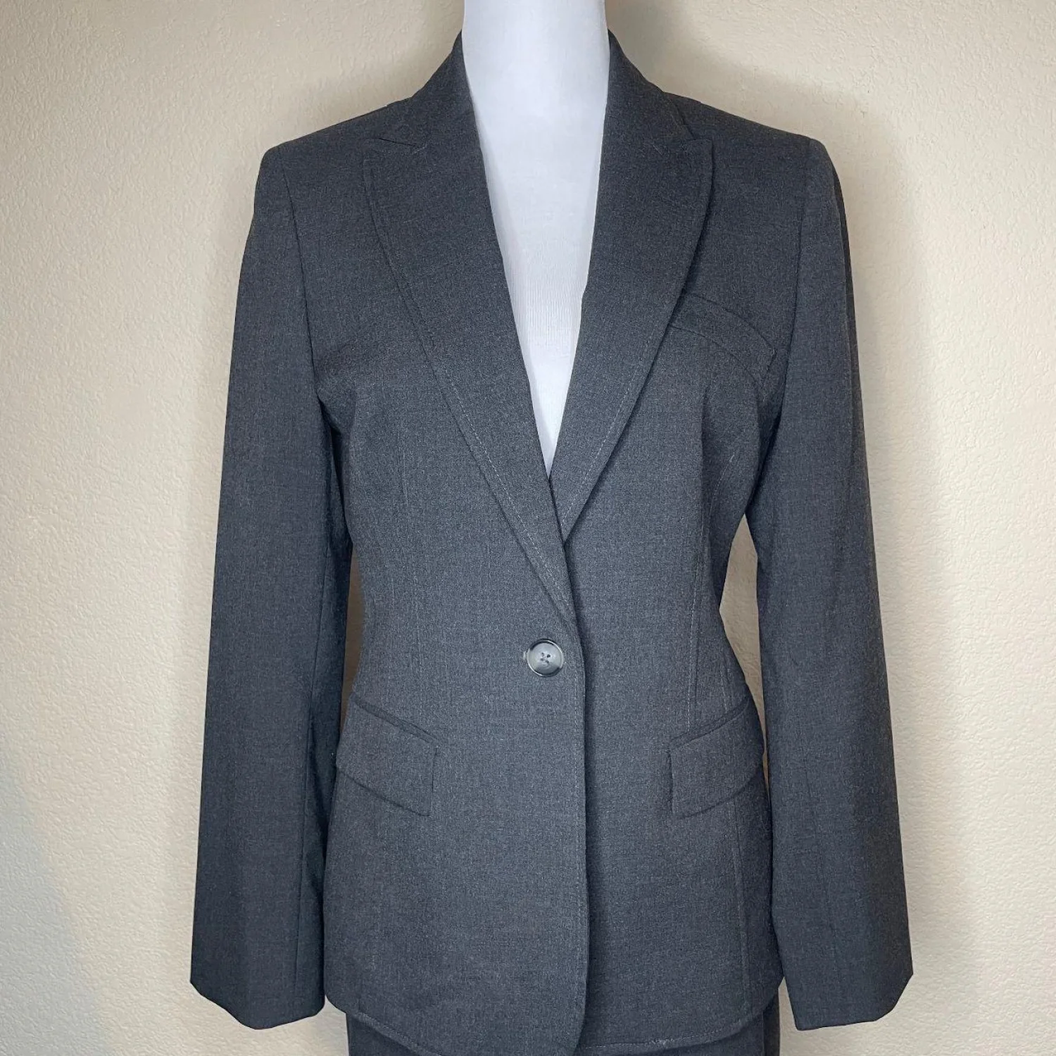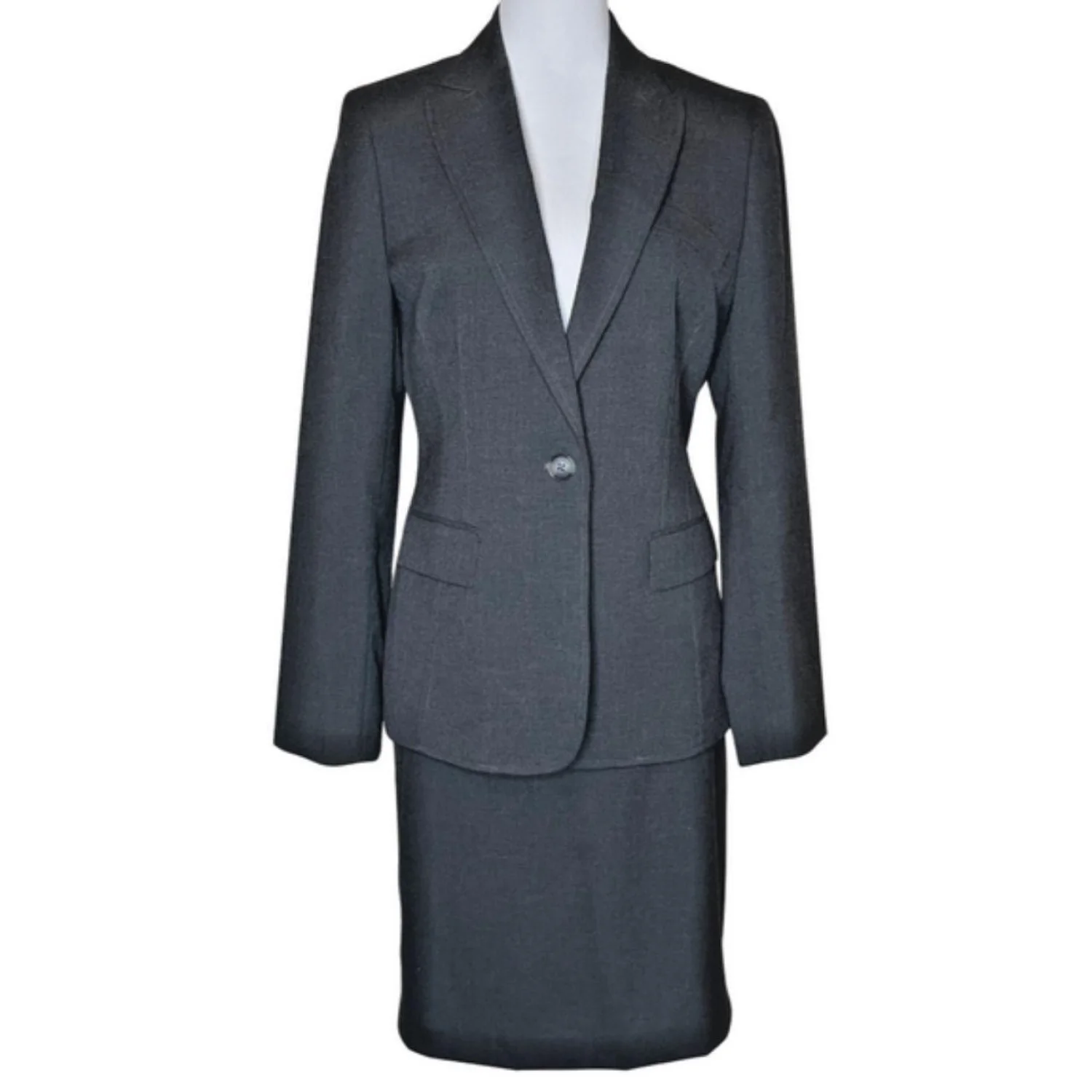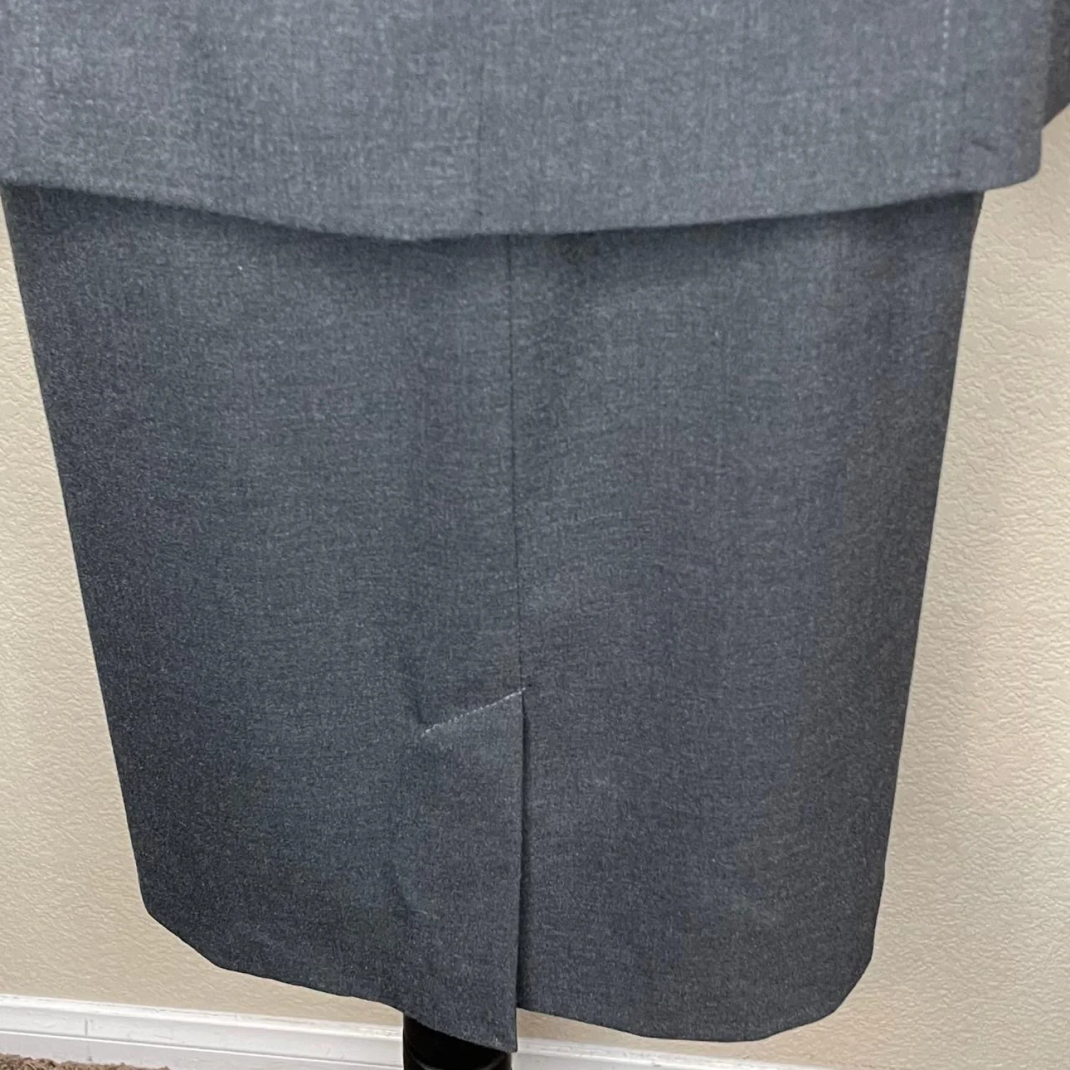 Offers Welcomed🎉 Size 8 Career Professional Business Features:This is a classic, single-button blazer and matching knee-length pencil skirt in a sophisticated charcoal gray. • Style Profile: Career wear, Professional, Business attire, Workwear, Classic, Polished, Interview suit, Stretch fabric. • Flaws: No Holes, stains, or tears (Excellent pre-owned condition) • All measurements are approximate PTP: 17.5' Blazer Length: 25.5' Sleeve Length: 22' Waist: 22-23' Waist Length: 16' Happy to answer your questions! Super Fast Shipper!