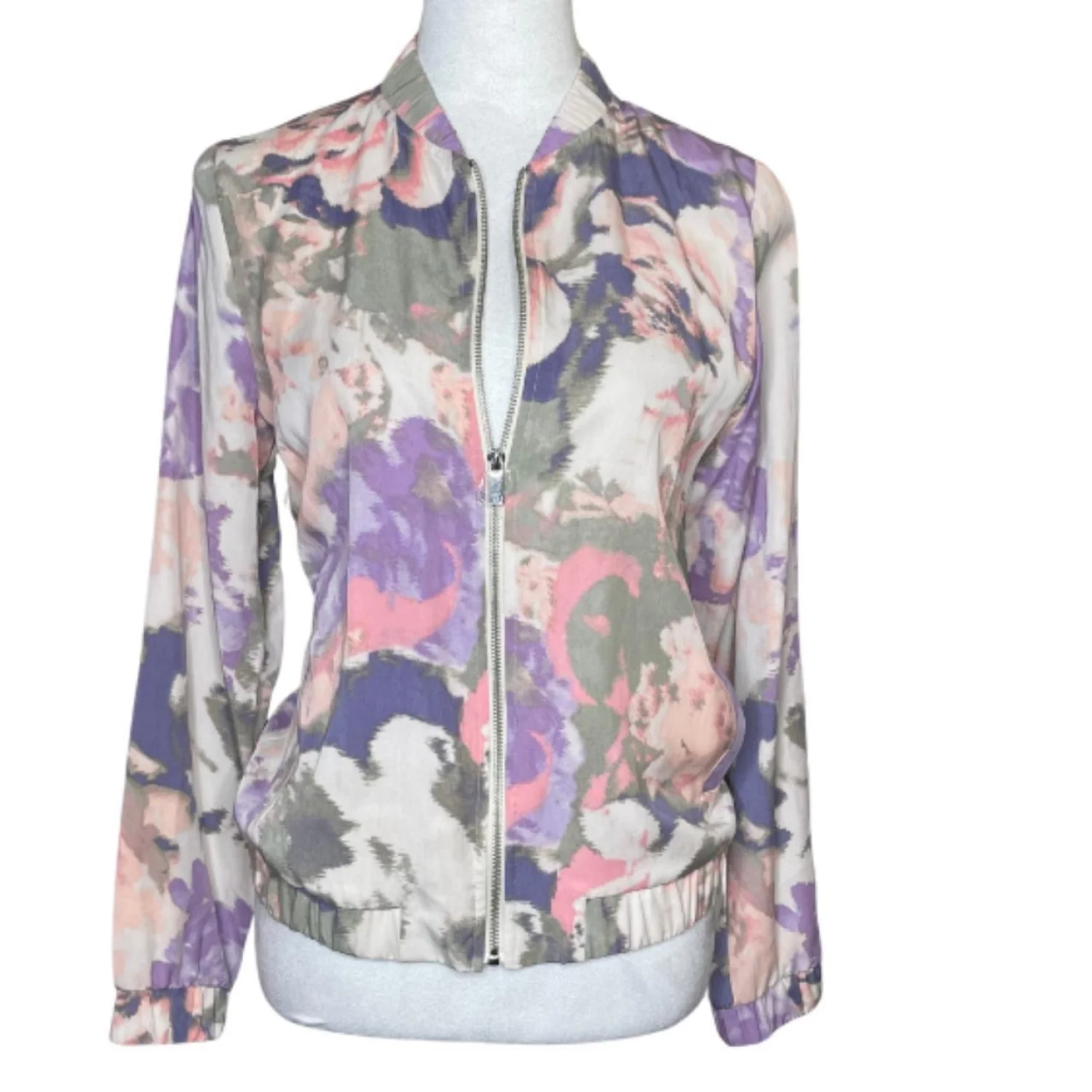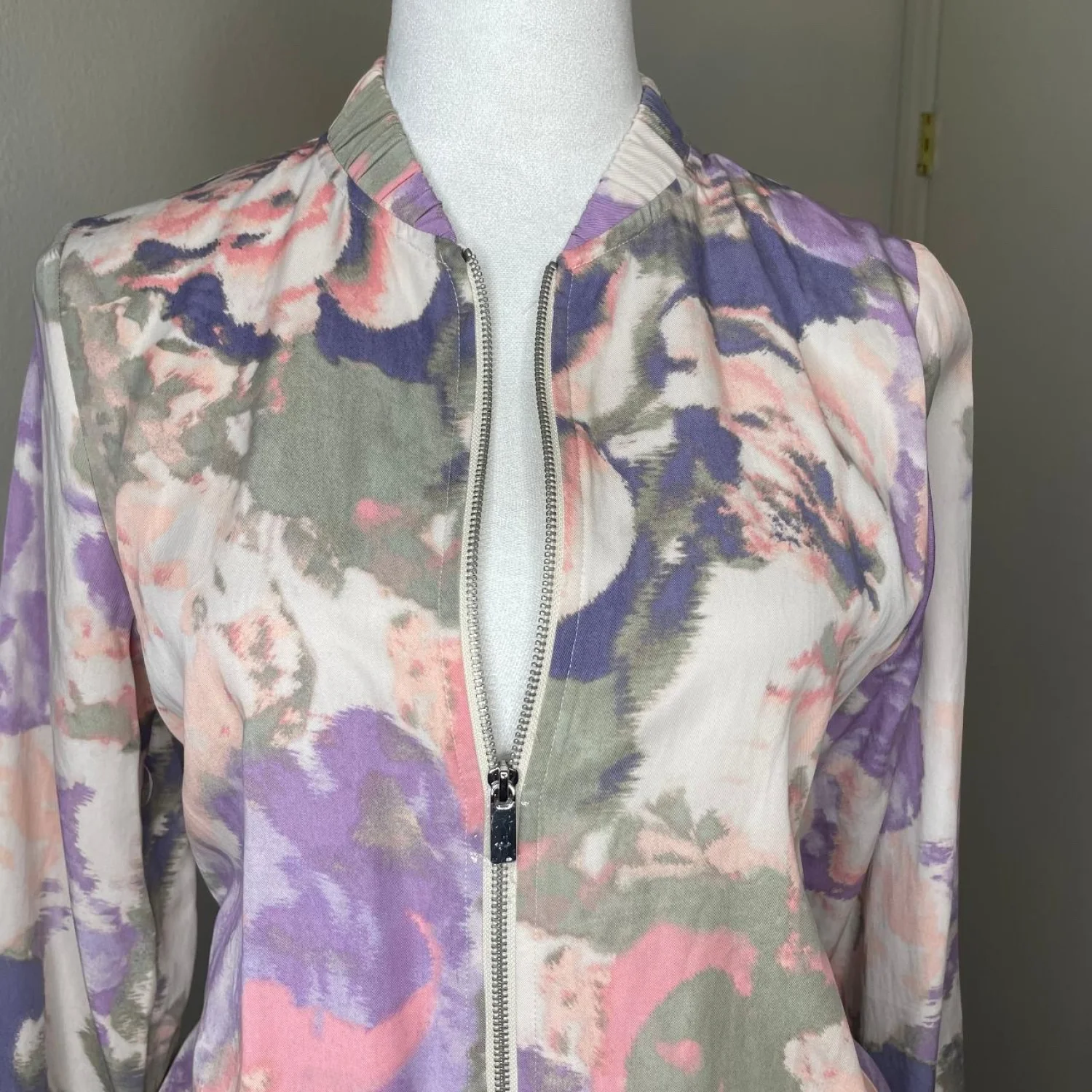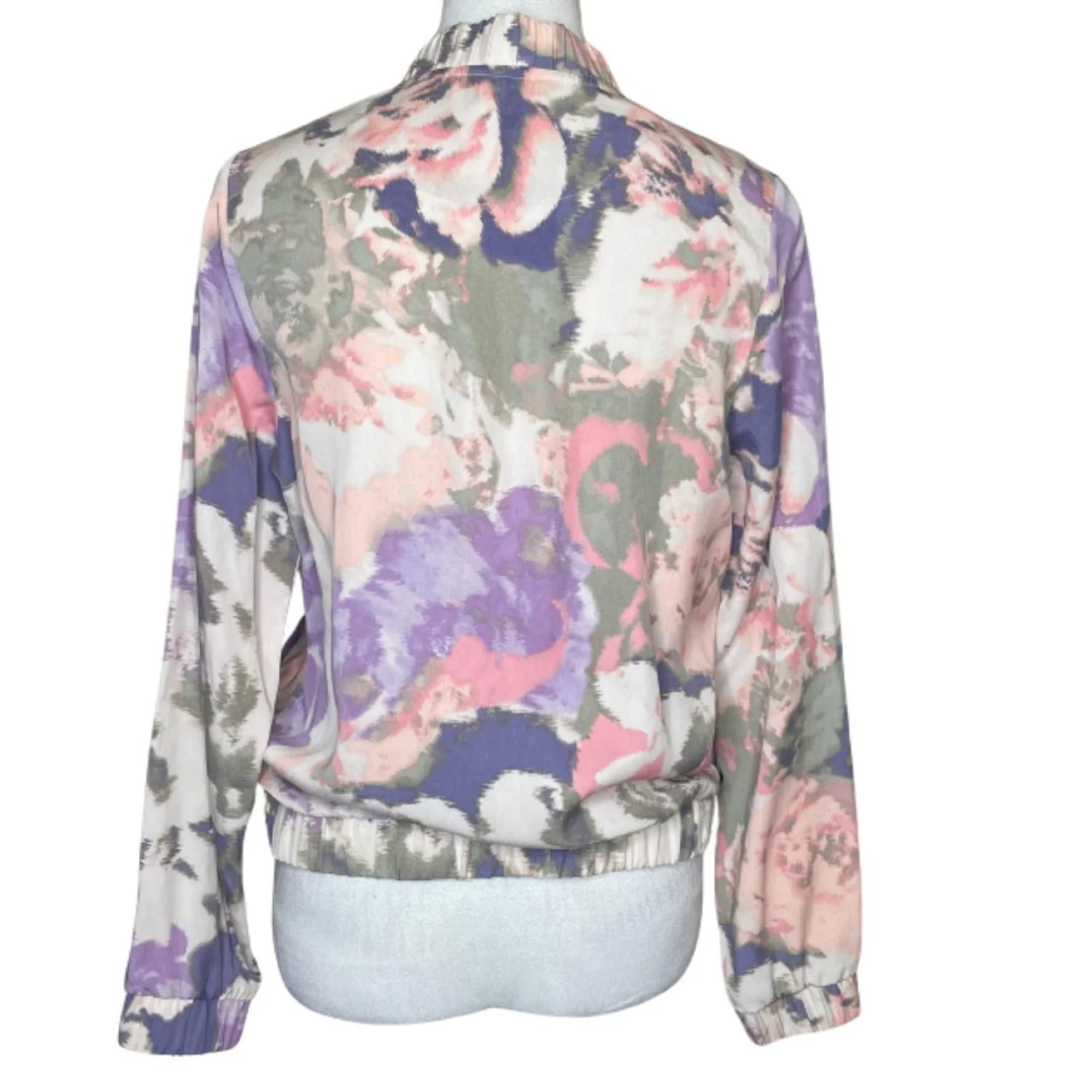 Juicy Couture Y2K Dusty Floral Long Sleeve Zip Up Lightweight Bomber Jacket Small