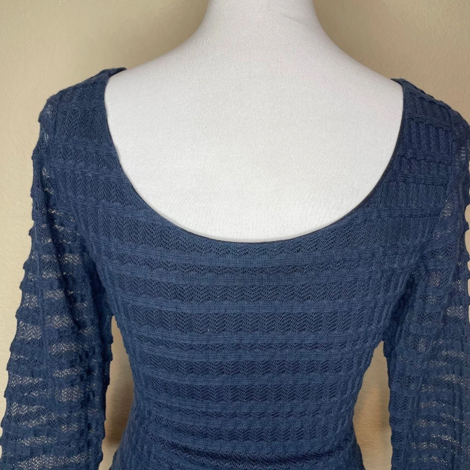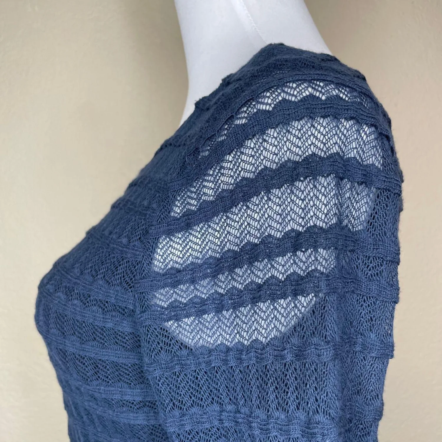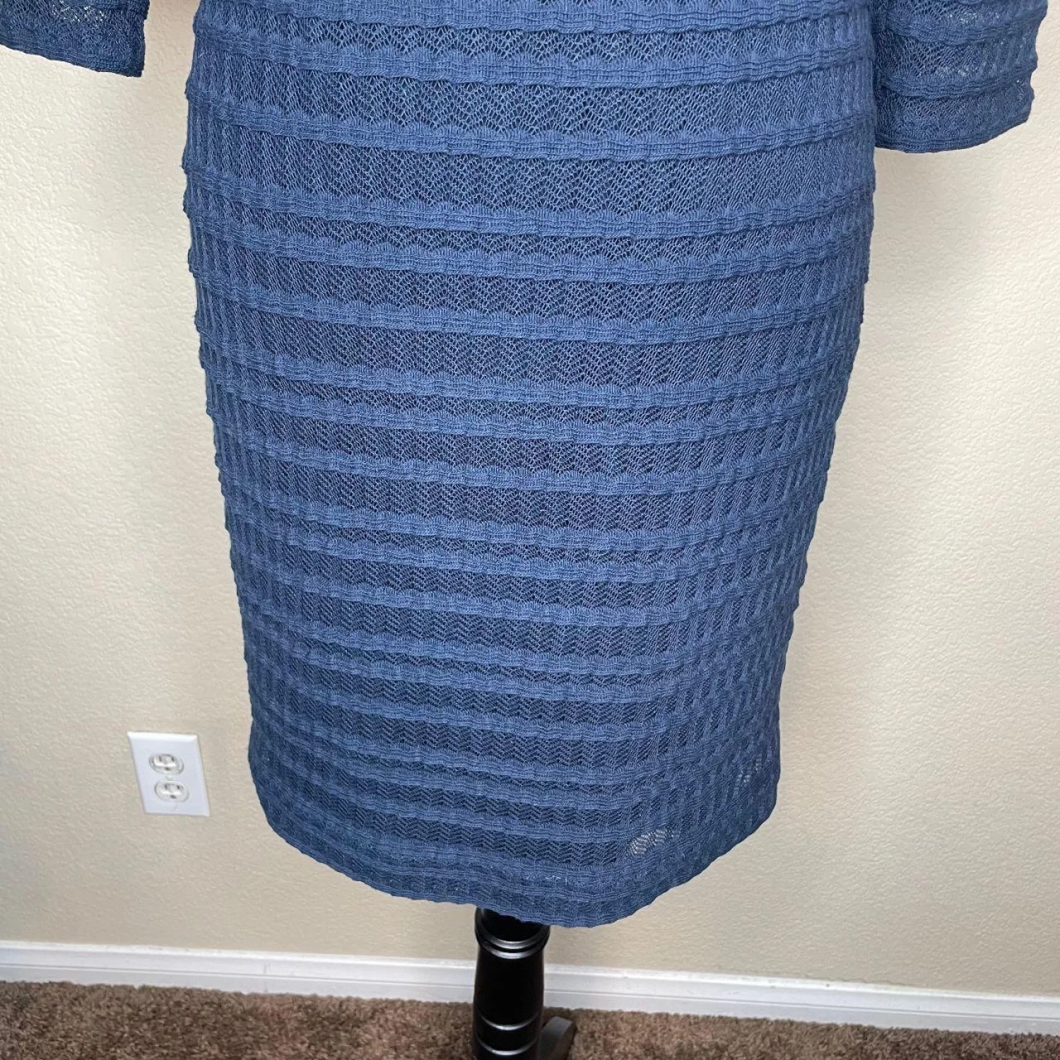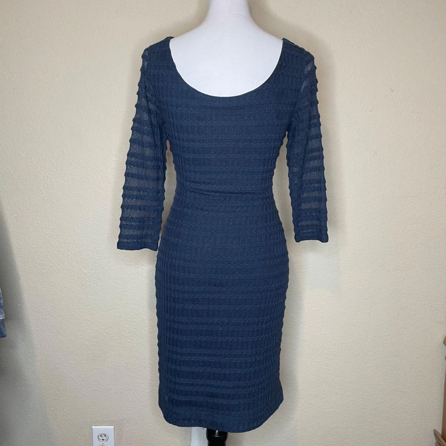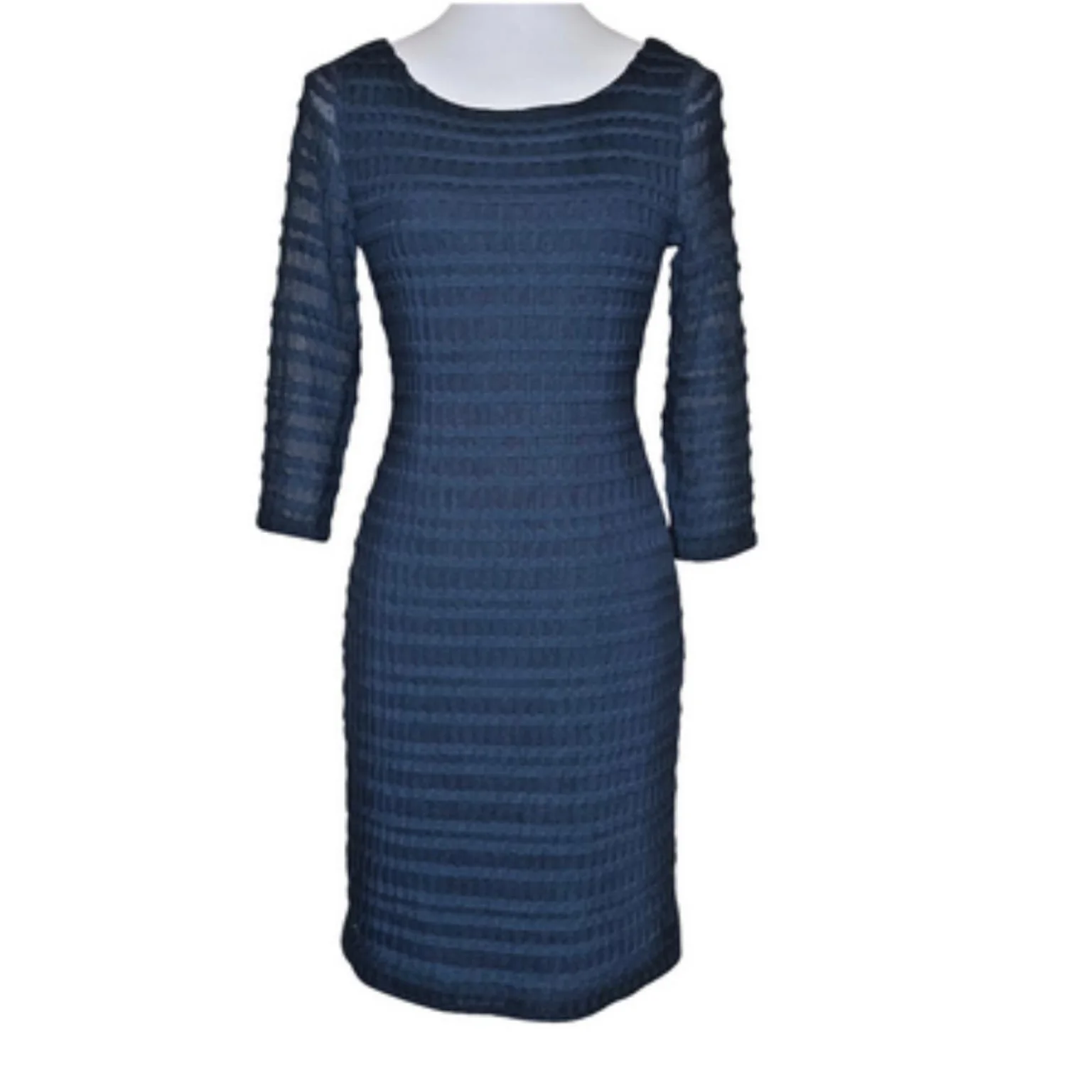 Kay Unger New York Navy Blue Sweater Dress 3/4 Sheer Sleeve