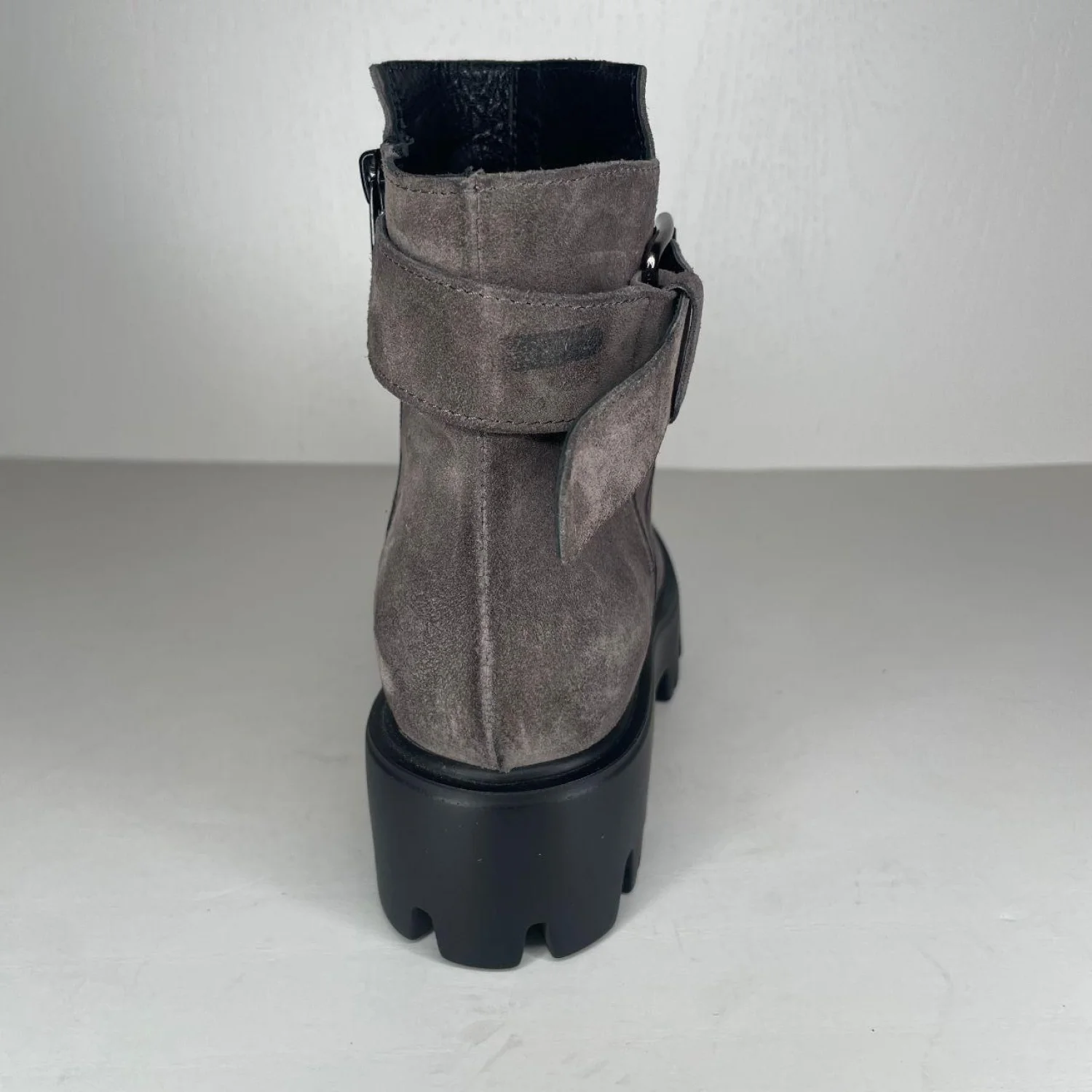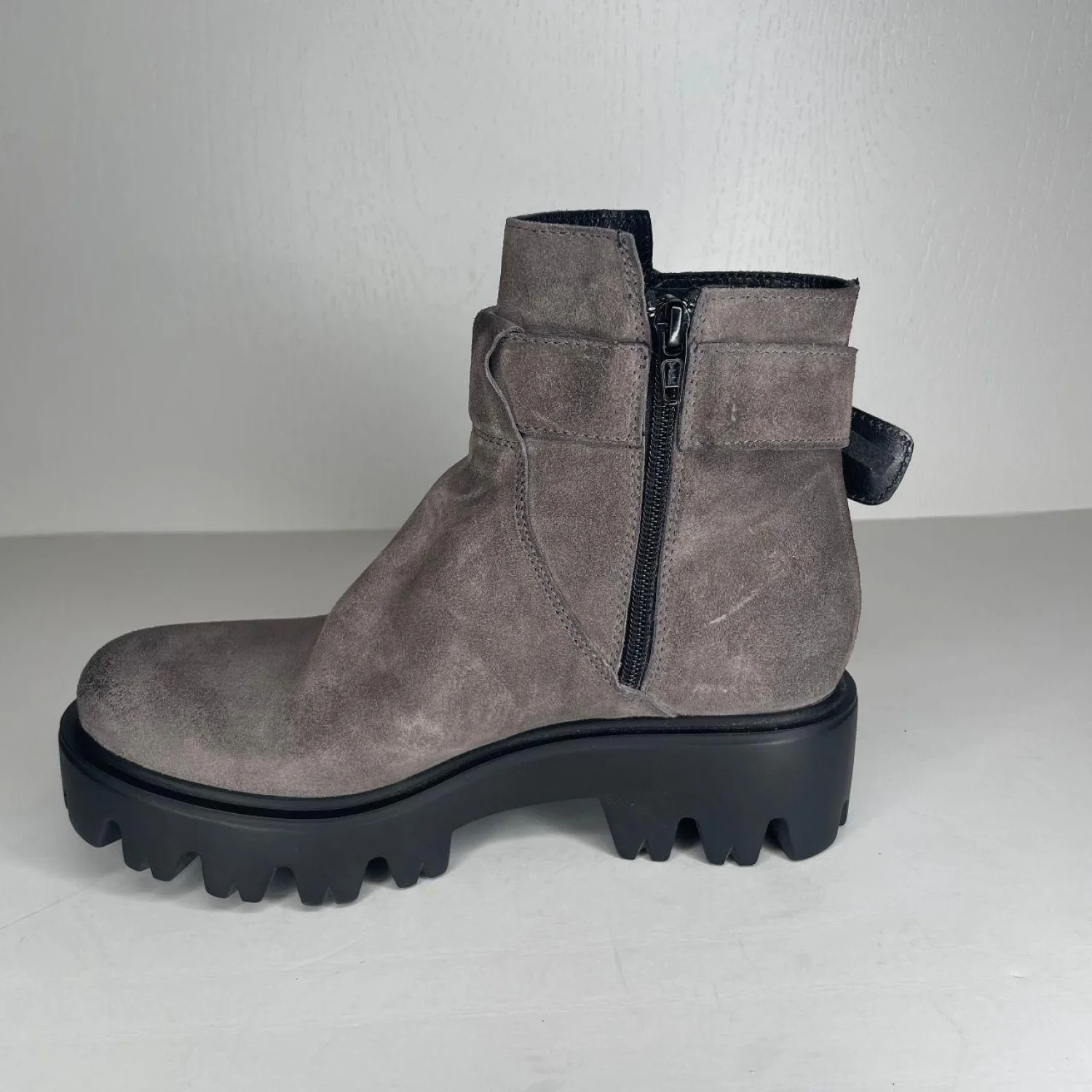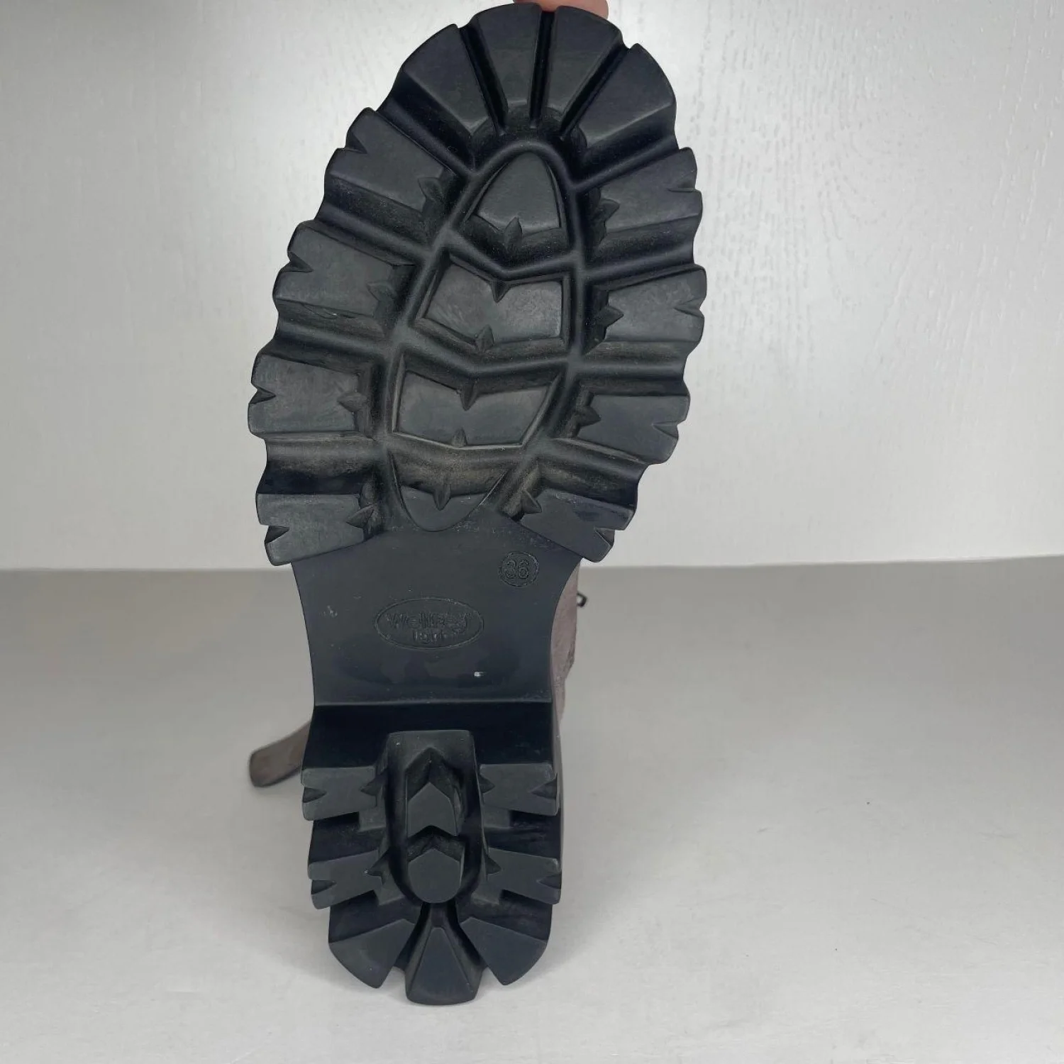 Kenneth Cole Distressed Grey Suede Lug Sole Chunk Heel Platform Well Feet Boots 5.5