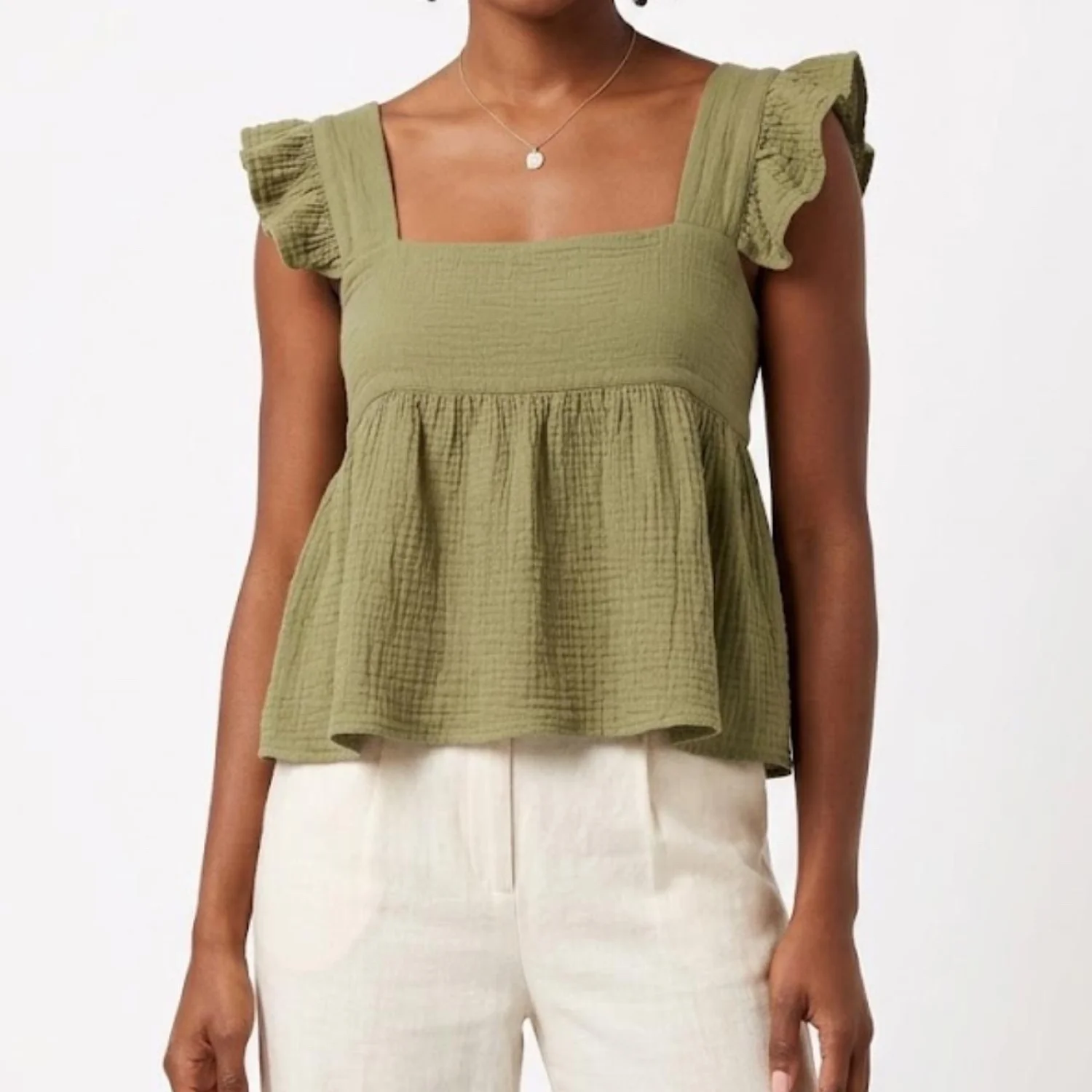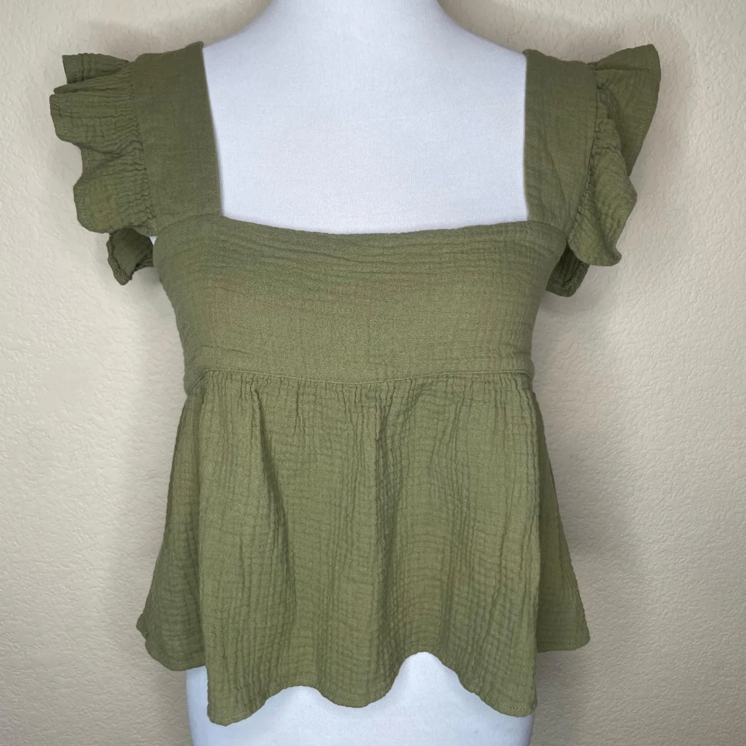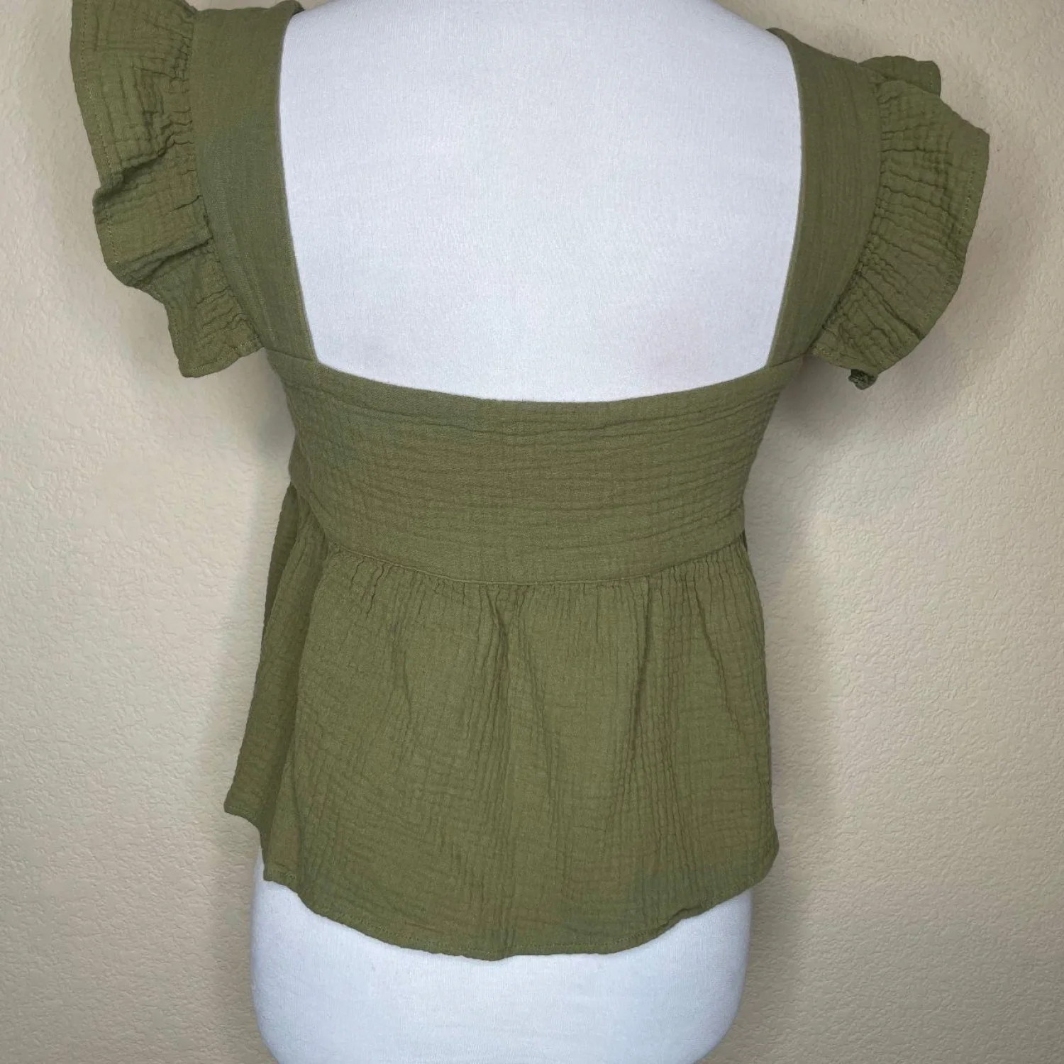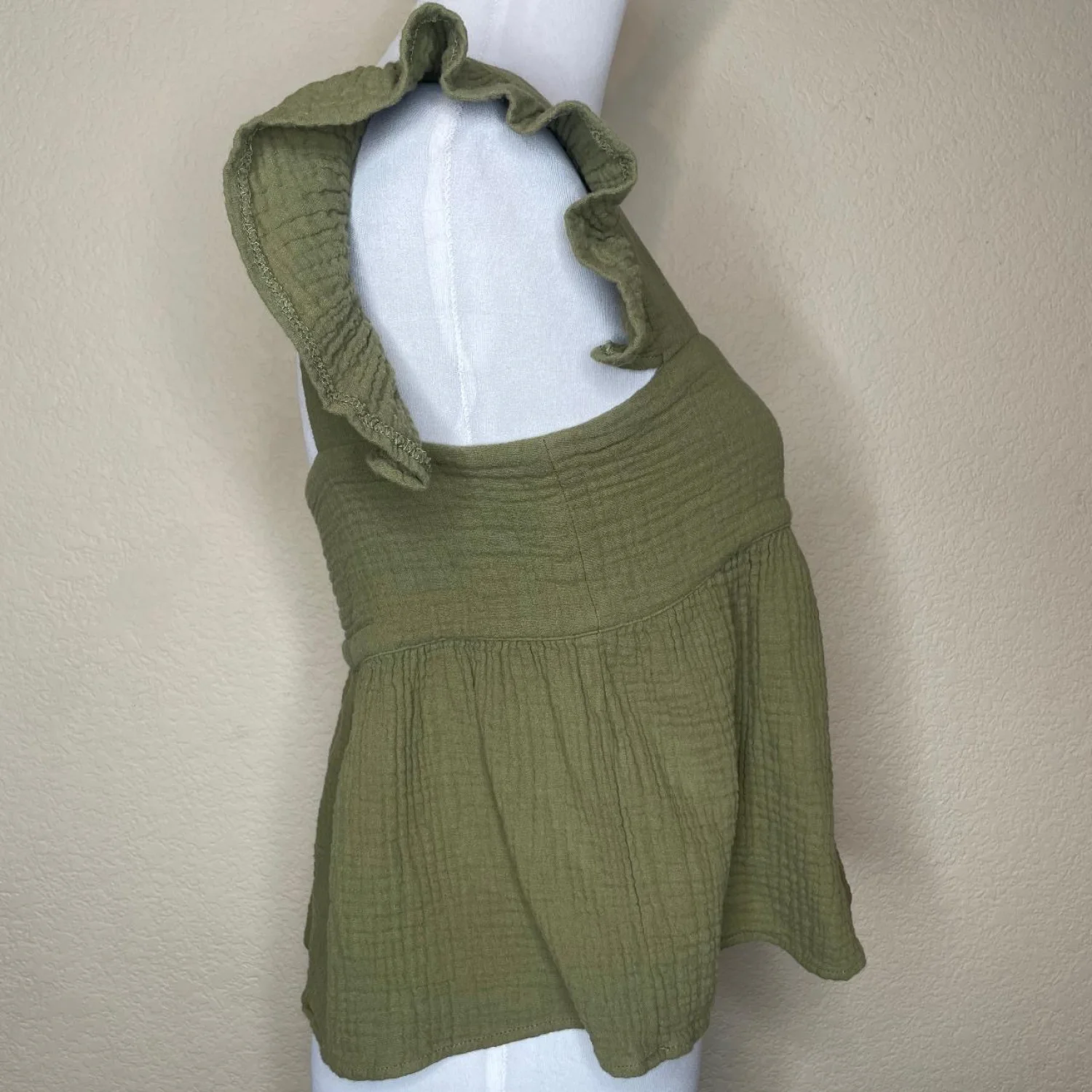 Kourt Sage Green Cotton Gauze Babydoll Top XS Cottagecore Ruffle