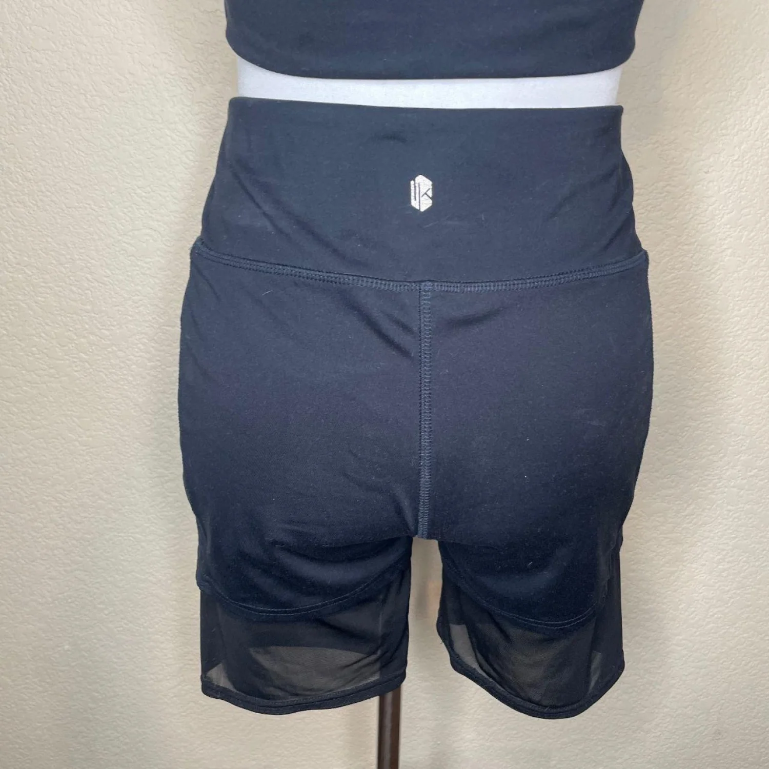 Offers Welcomed🎉 Features: Elevate your workout wardrobe with this chic black activewear set from La Kottee Los Angeles. This matching 2-piece set features a high-neck sports bra/crop top with a breathable mesh V-panel and matching 2-in-1 athletic shorts. The shorts include a built-in mesh biker liner for extra coverage and a trendy layered look. • Style Profile: Gymcore, Athleisure, Minimalist, Sporty, Streetwear, Clean Girl, Activewear, Coquette, Monochrome, Workout, Yoga, Pilates, Fitness, Biker Core • Flaws: No Holes, stains, or tears (Excellent pre-owned condition) • All measurements are approximate PTP: 14.5' Waist: 14.5' Top Length: 15' Shorts Length: 17.5' Happy to answer your questions! Super Fast Shipper!