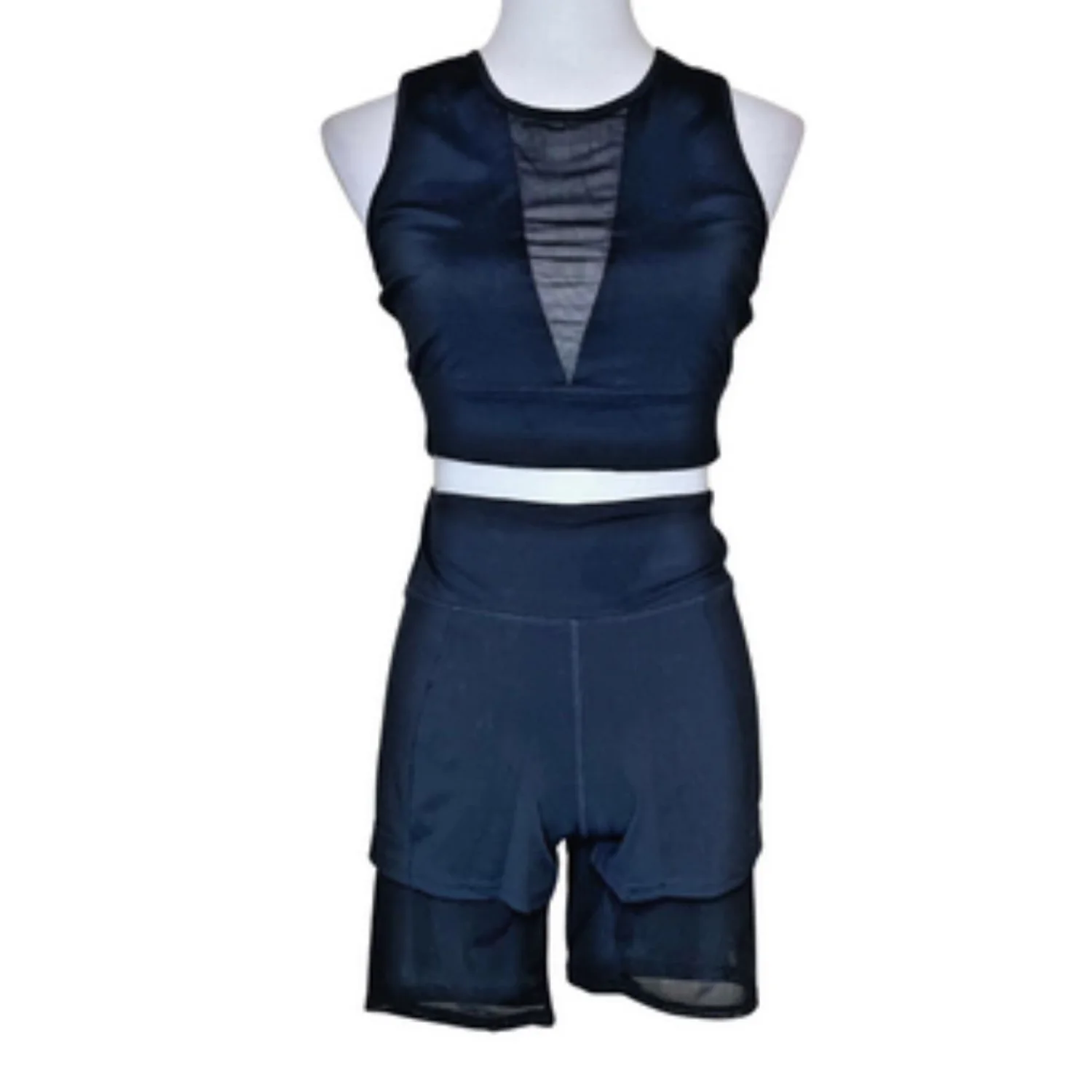 La Kottee Los Angeles Black Mesh 2-Piece Activewear Set - Size Medium