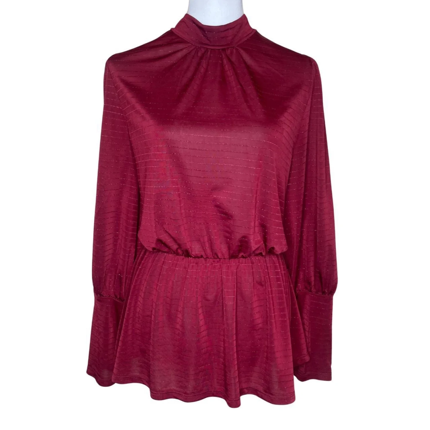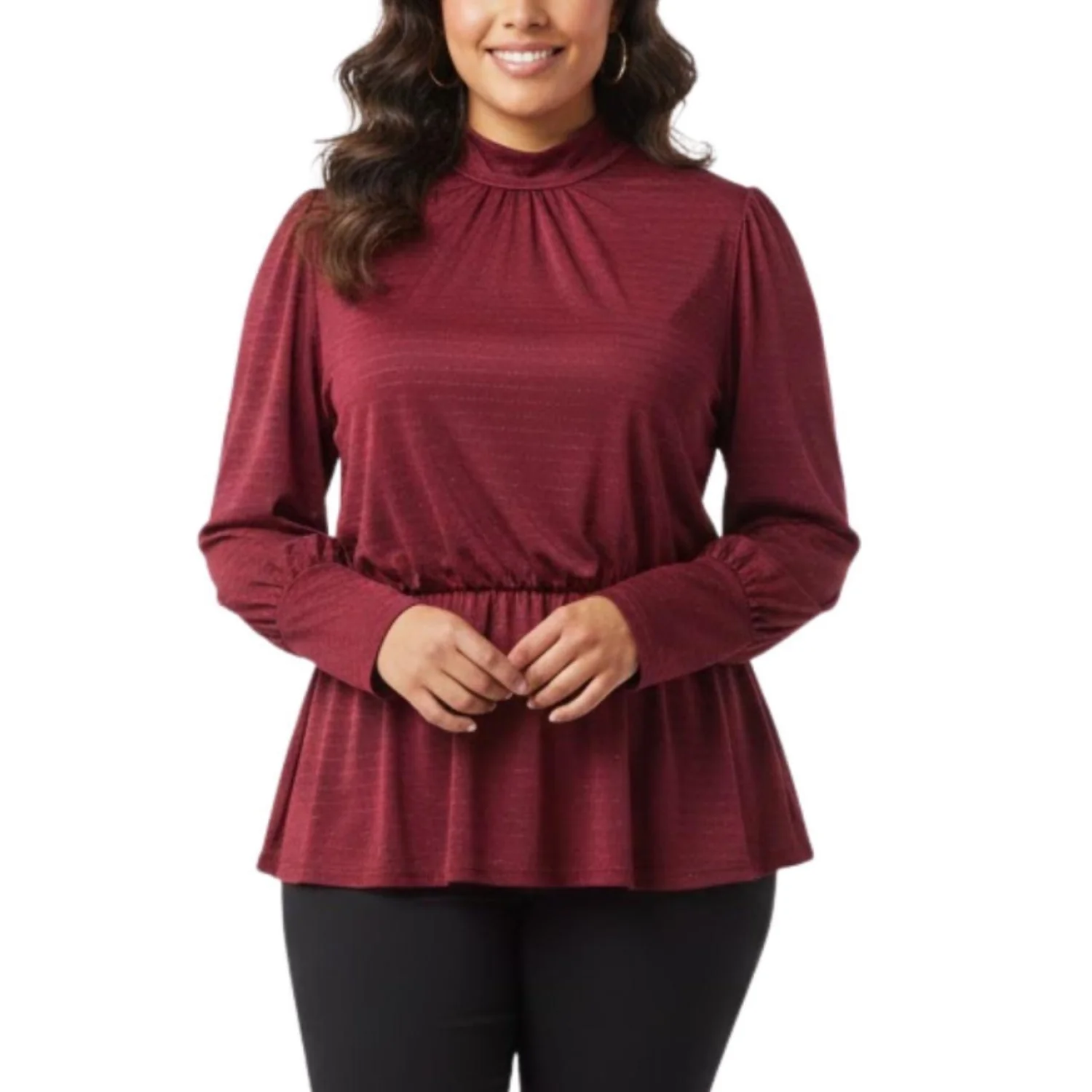 Lane Bryant Burgundy Metallic Shimmer Peplum Top Mock Neck Size 18/20