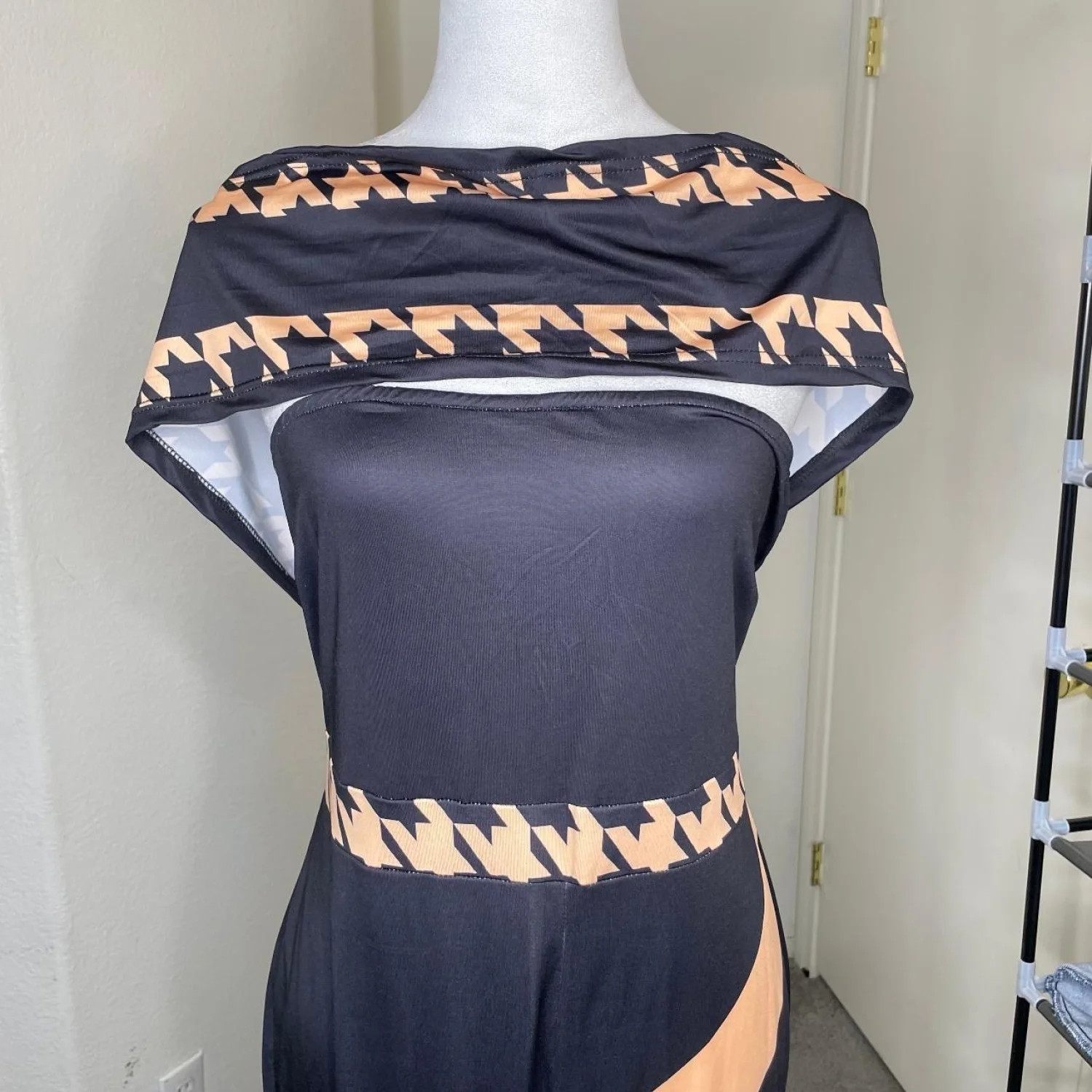 Loragal Baddie Houndstooth Colorblock Cold Shoulder Jumpsuit XL