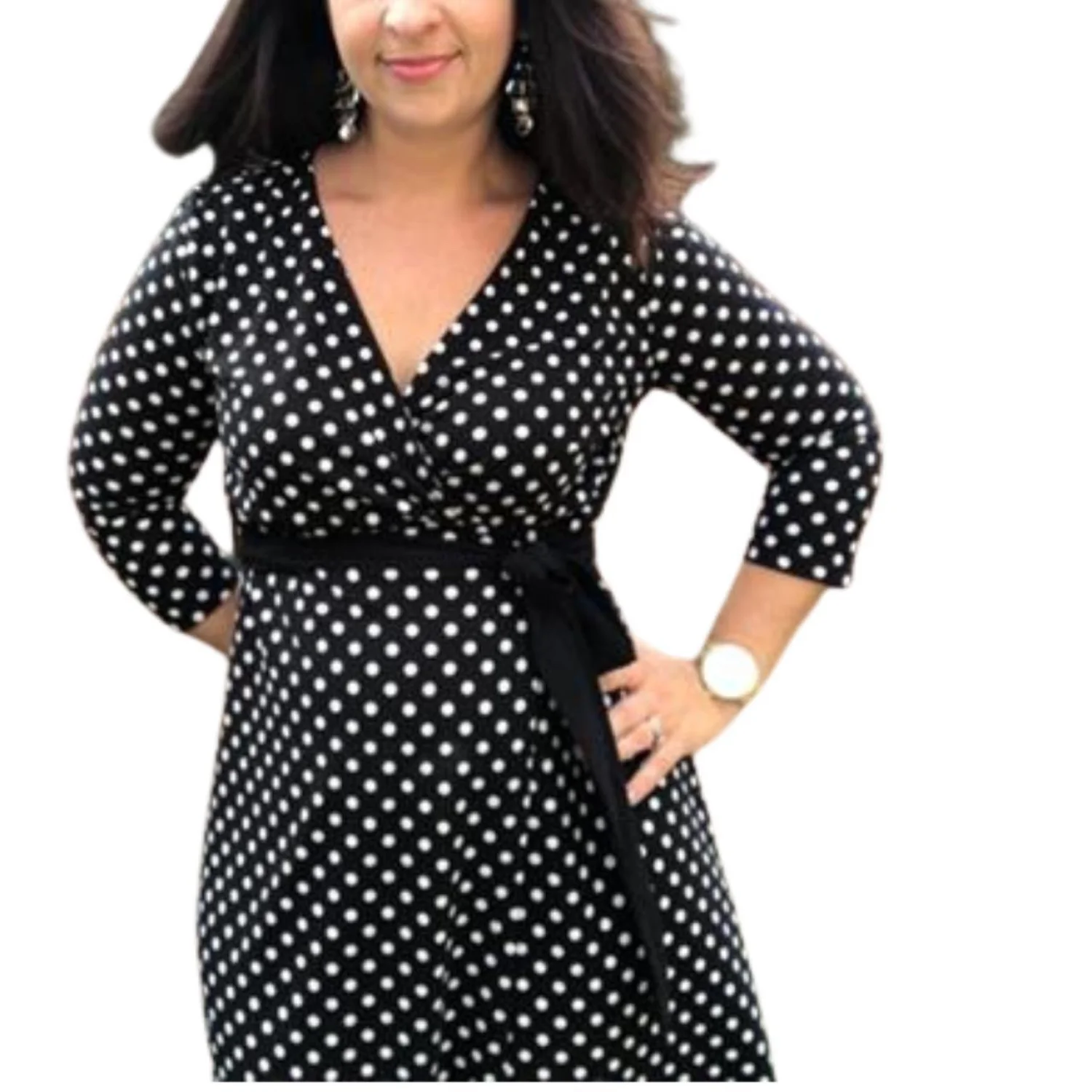 LulaRoe Women's Black Polka Dot V-Neck Wrap Dress Plus