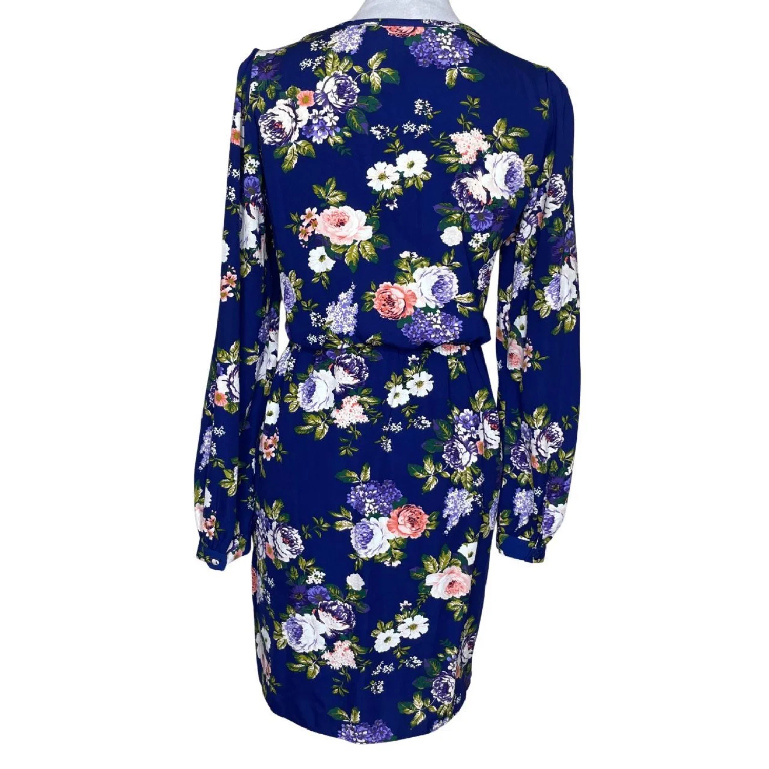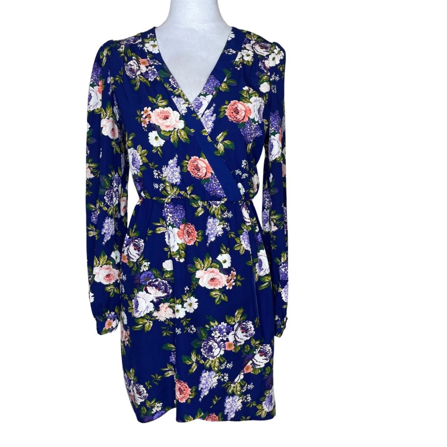 Lulus That's a Wrap Navy Blue Floral Mini Summer Dress Feminine Romantic Size Med