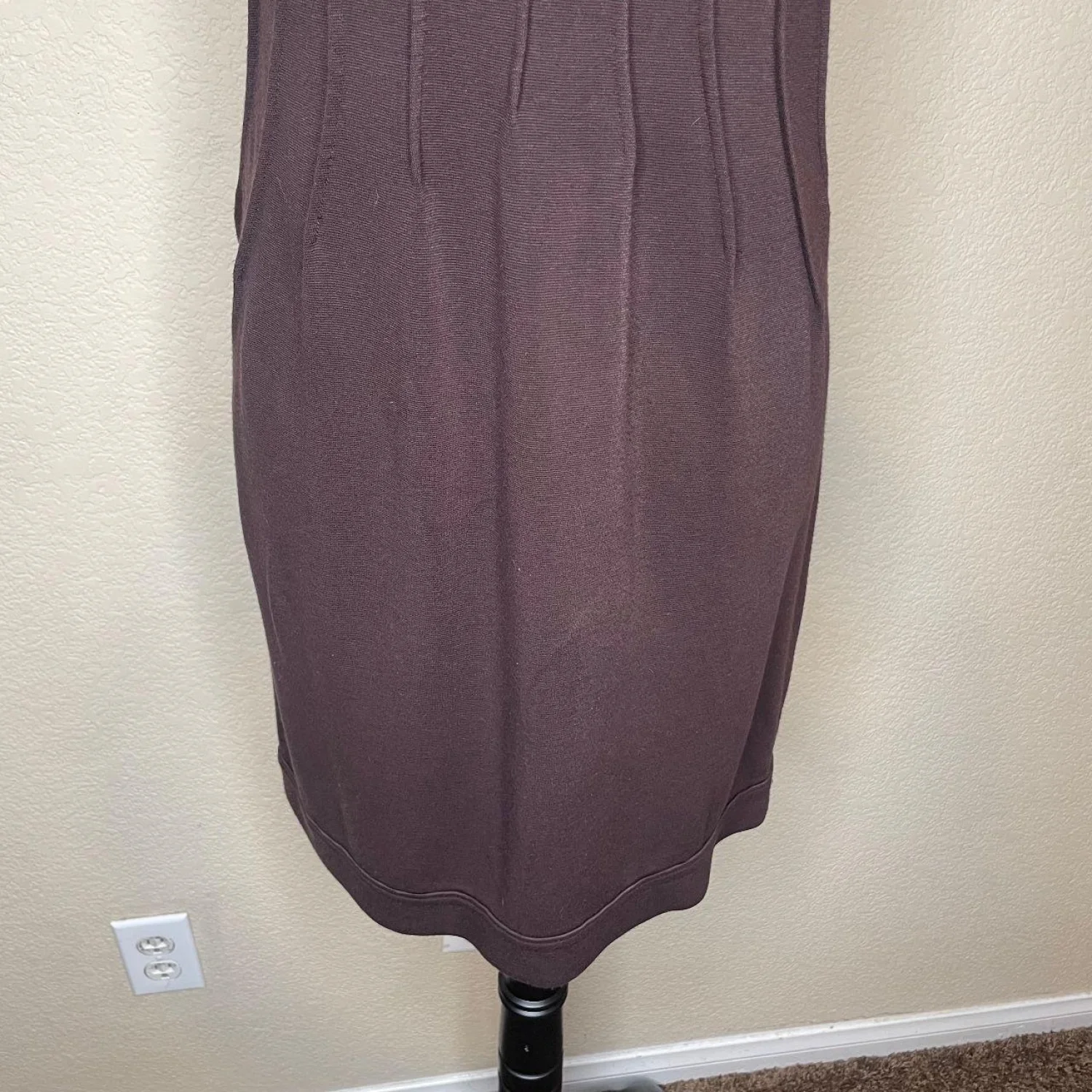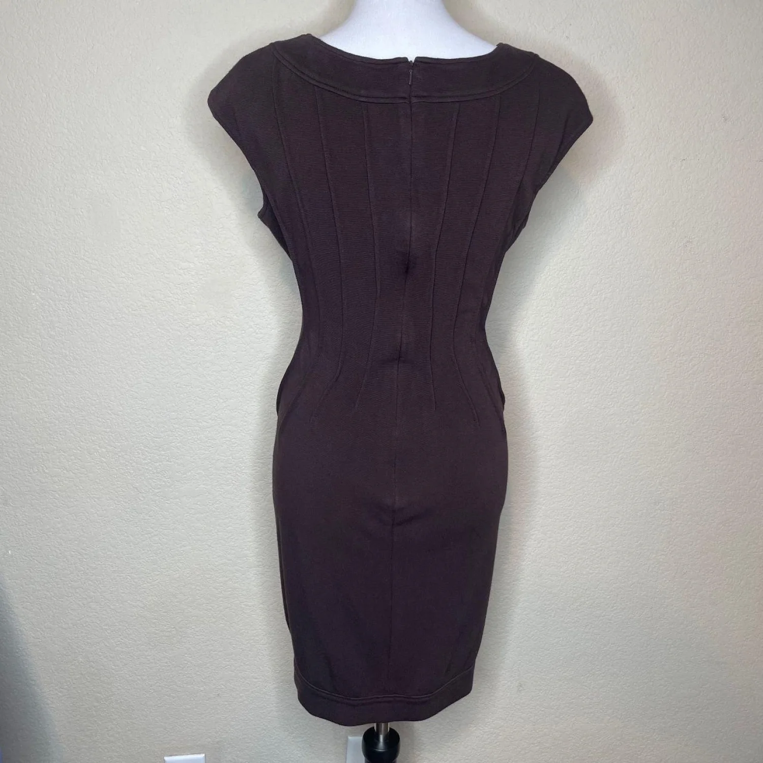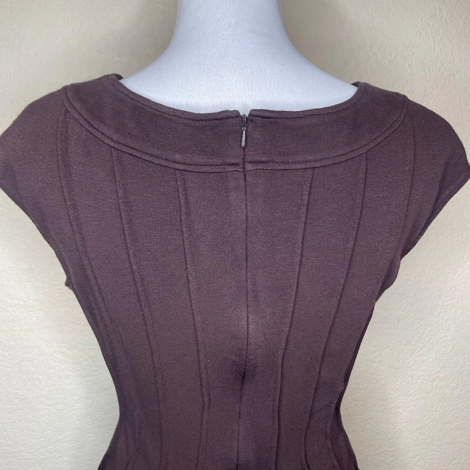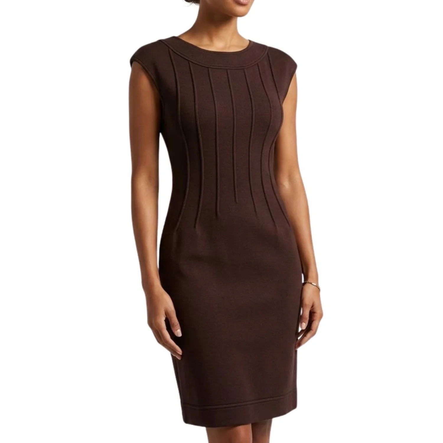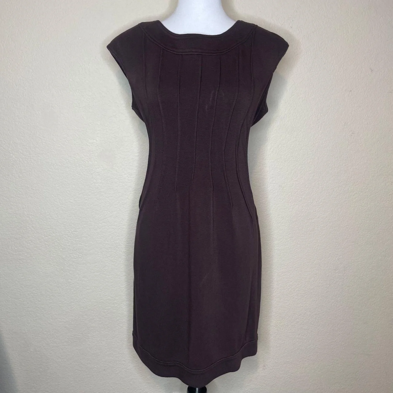 Maggy London Dark Academia Ribbed Pintuck Sheath Dress Espresso Brown 14