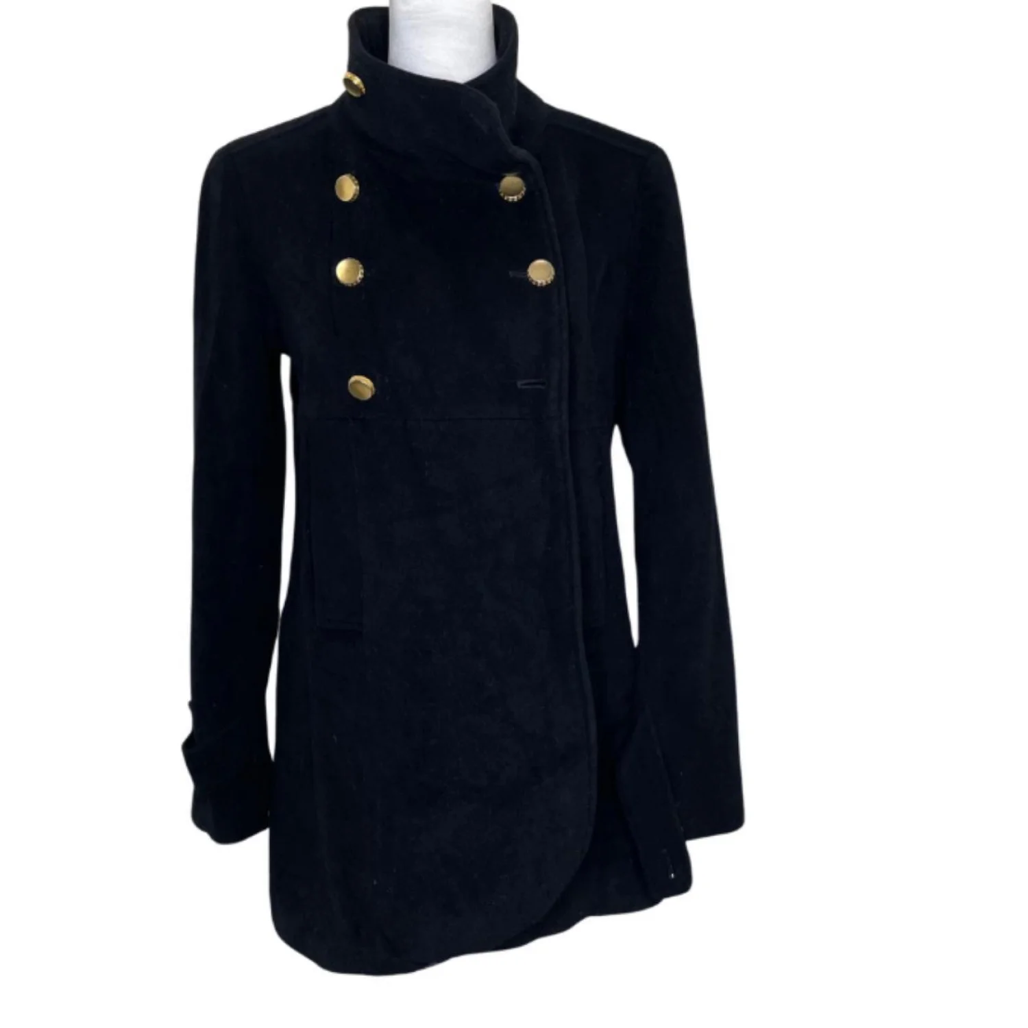 Marciano Women's Wool Peacoat Lined Button Black Winter Coat Jacket