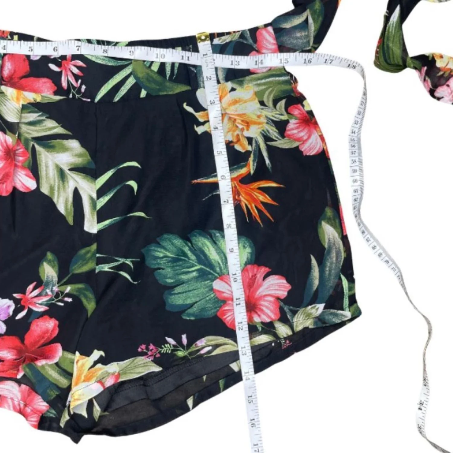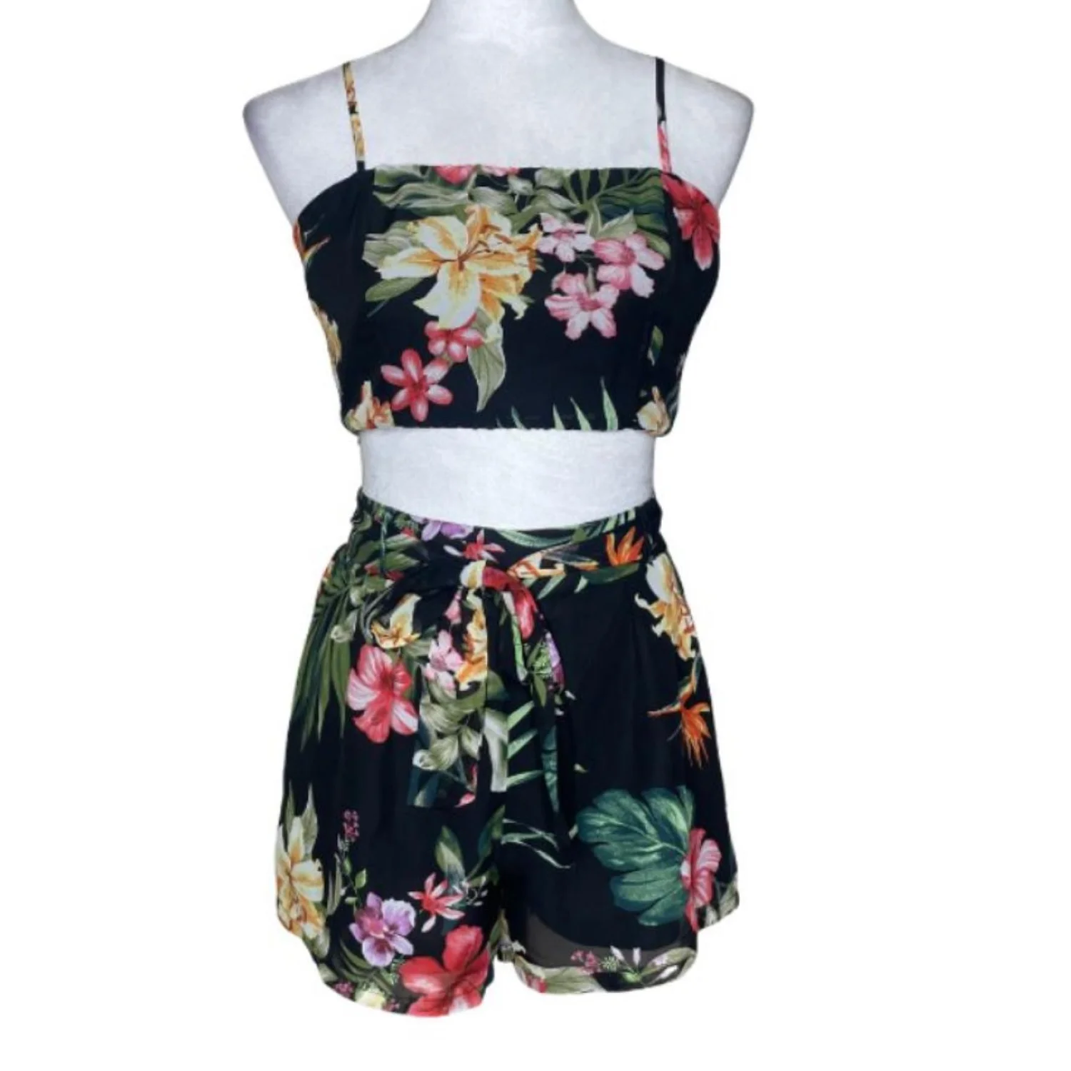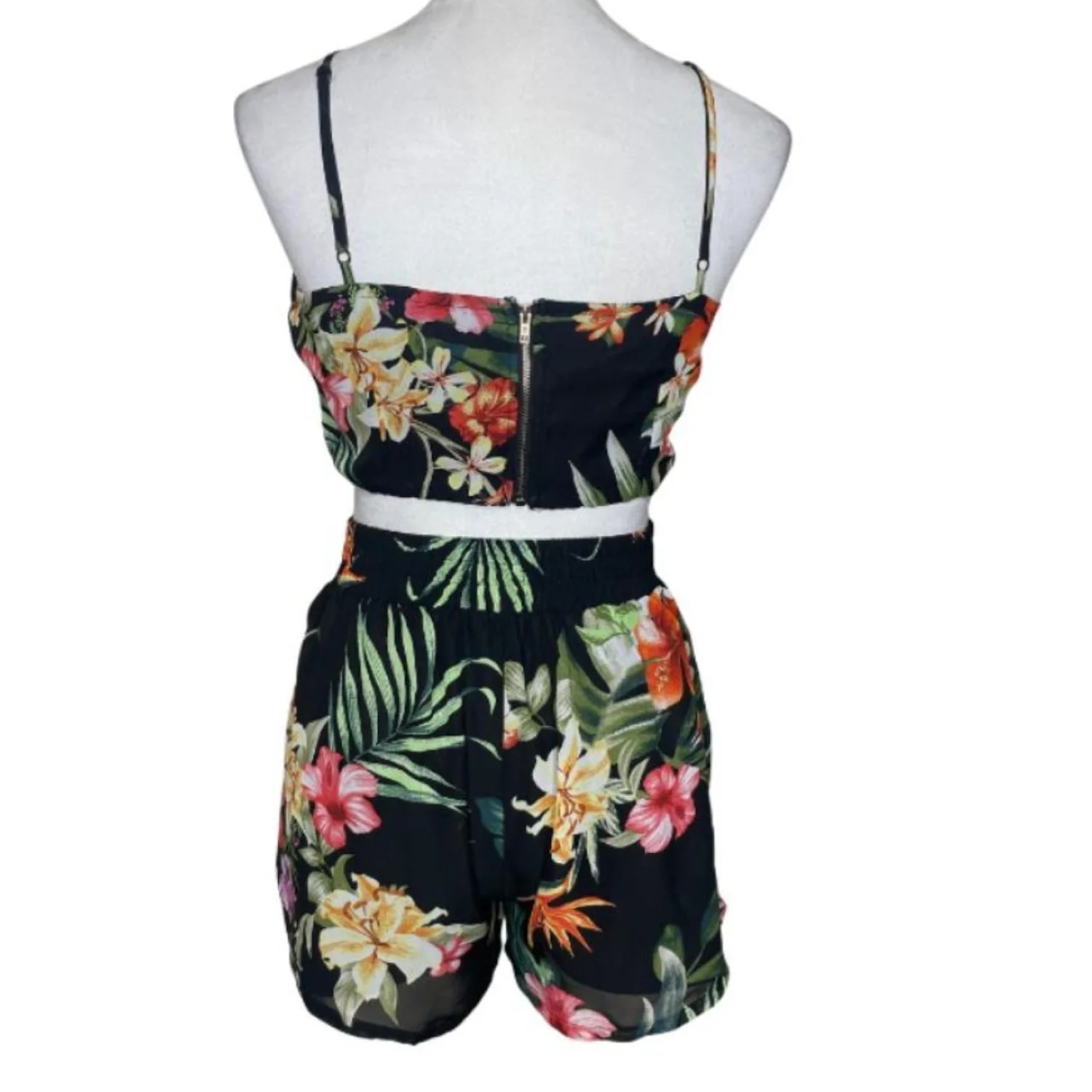 Miss Avenue Tropical Hibiscus Two Piece Set Shorts & Crop Top Coconut Girl Y2K M
