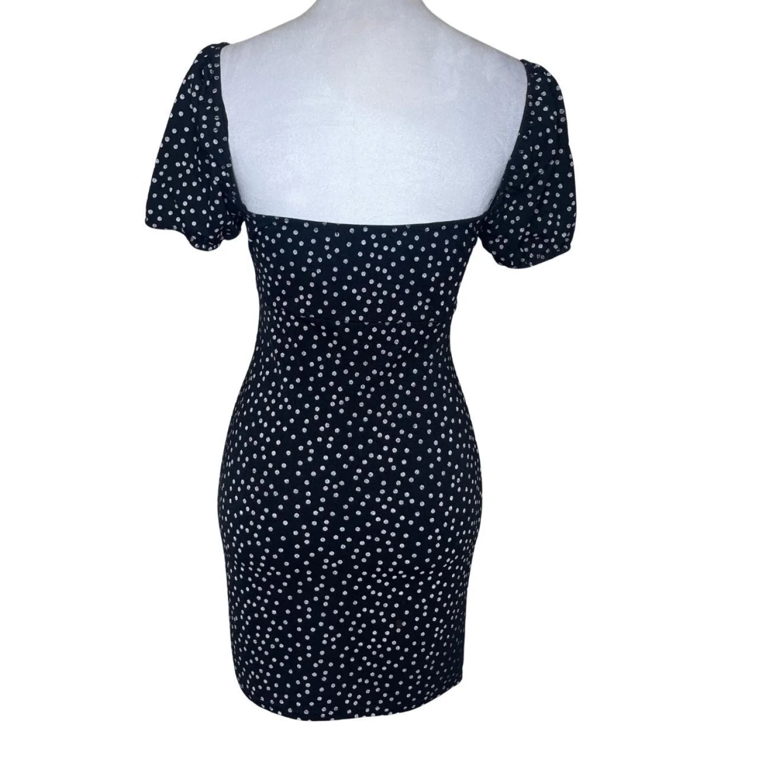 Missguided Polka Dot Milkmaid Mini Dress Puff Sleeve Square Neck Black White 6