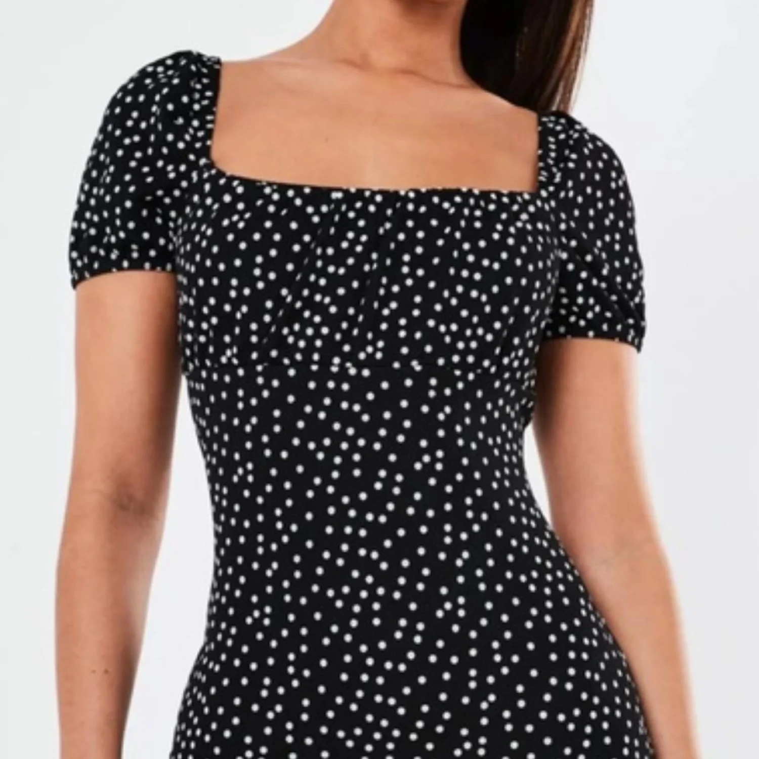 Missguided Polka Dot Milkmaid Mini Dress Puff Sleeve Square Neck Black White 6 Features: A flattering square neckline, feminine puff sleeves, and a sleek bodycon fit, it’s the perfect blend of retro charm and modern edge. The stretchy fabric ensures a comfortable, figure-hugging silhouette for brunch, dates, or parties. • Style Profile: Milkmaid, Coquette, French Girl, Retro, Polka Dot, Bodycon, Summer, Romantic, Cottagecore, Dark Academia, Pinup, Minimalist • Flaws: No Holes, stains, or tears • Please see the photos for measurements (in inches). PTP: 15' Length: 30' Happy to answer your questions! Super Fast Shipper!