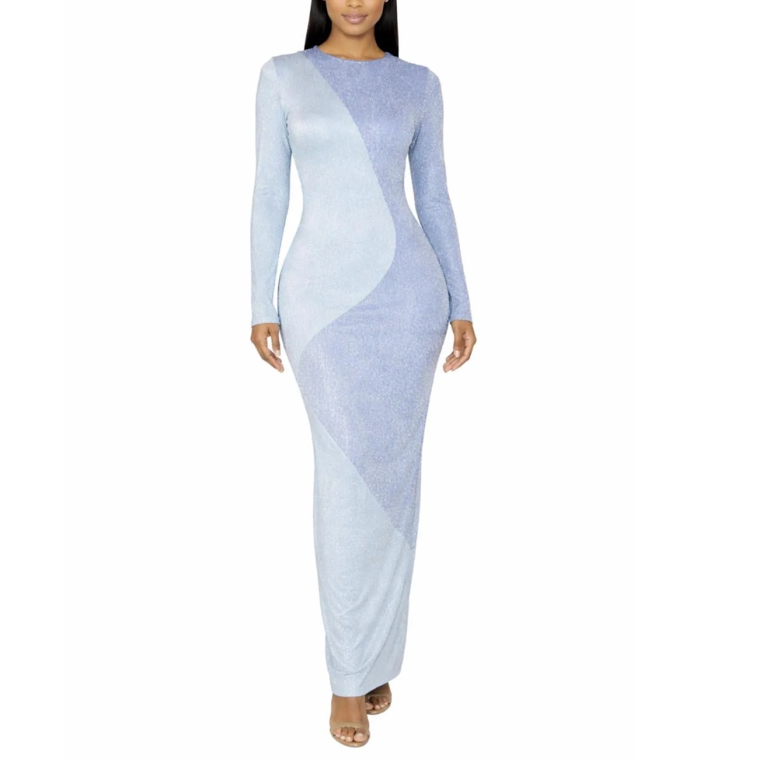 Naked Wardrobe Blue Shimmer Glow For It Maxi Dress Two Tone M