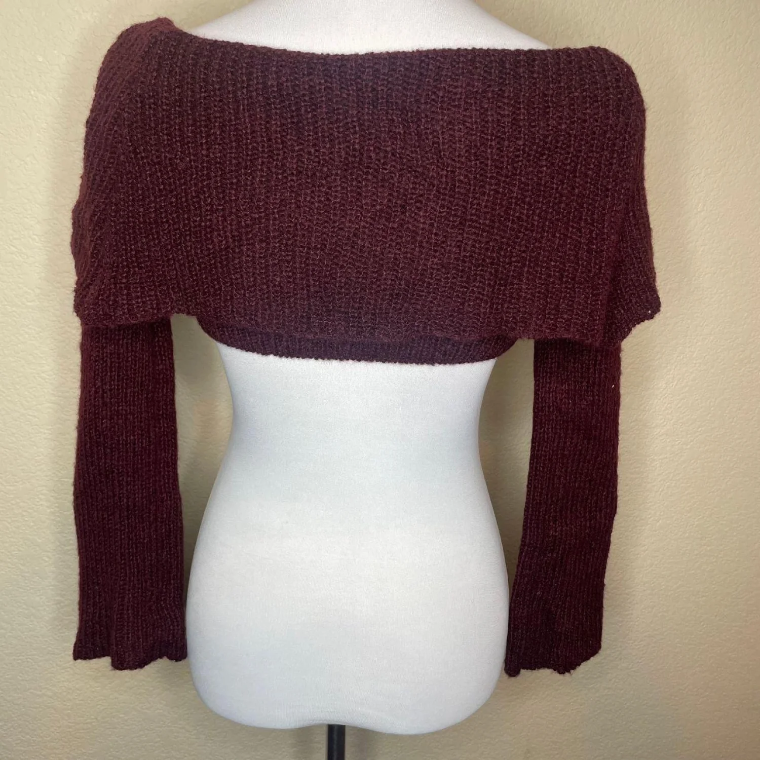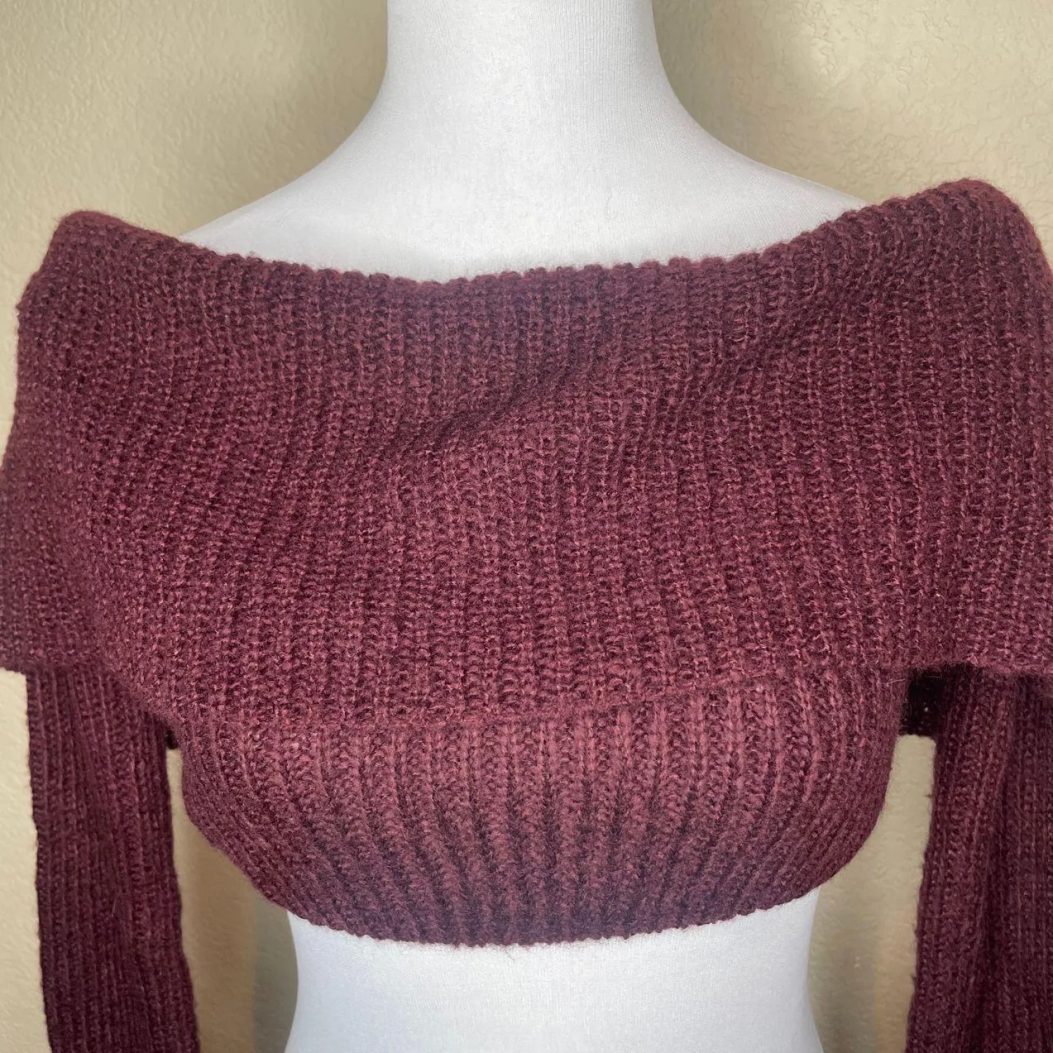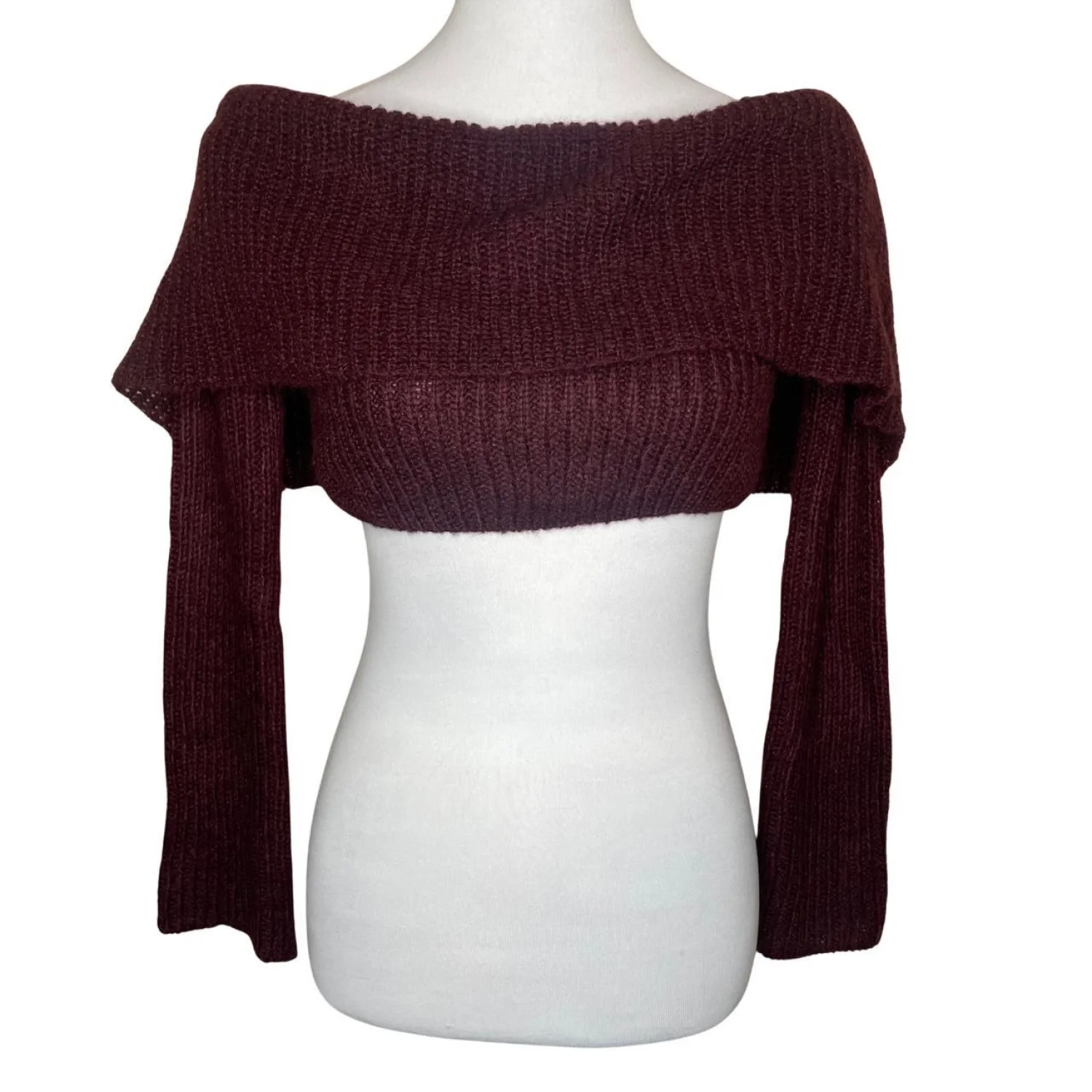 Naked Wardrobe Knit Crop Sweater Burgundy Maroon Off Shoulder Size M