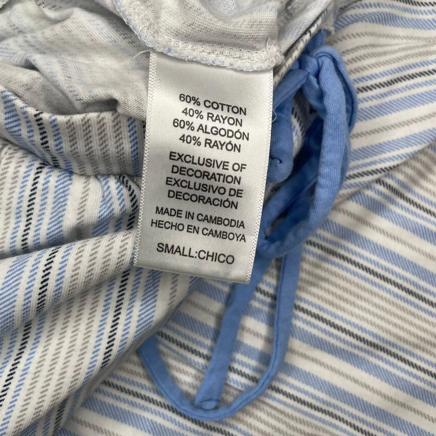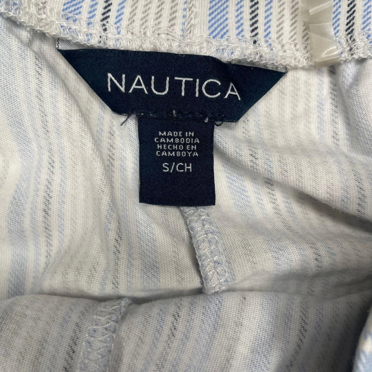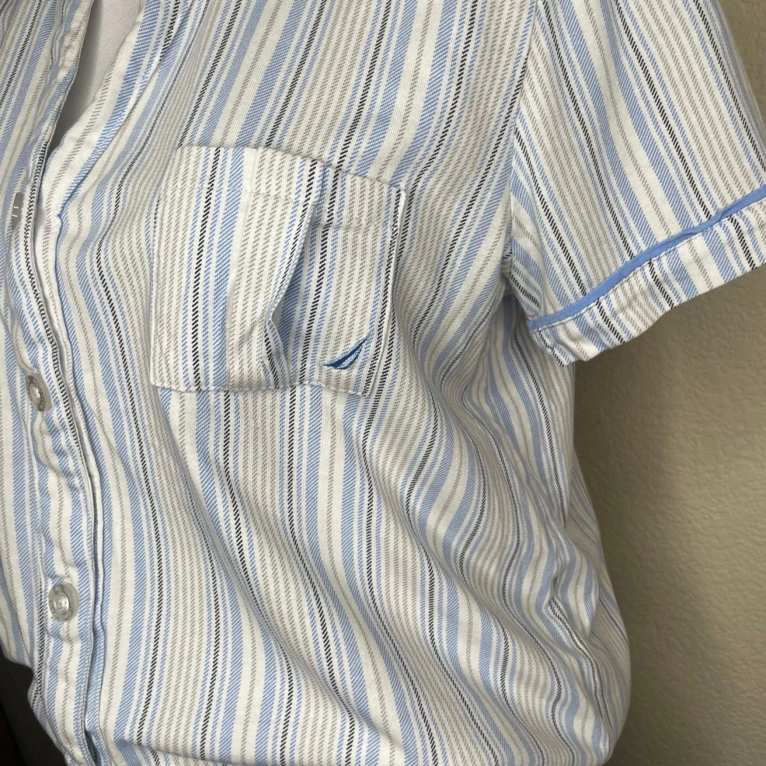 Nautica Coastal Grandma Blue Striped Button-Down Crop Pajama Set Sz Small Features: Breezy New England energy for those who want to look put-together while doing absolutely nothing. This set features a boxy, short-sleeve button-down with a crisp notch collar and contrasting blue piping. The pants are a relaxed, wide-leg crop with a functional drawstring and deep side pockets. The fabric is a lightweight cotton blend that has a soft, lived-in drape. It's giving "reading a thriller on a porch in Maine." • Style Profile: Coastal Grandmother, Nautical, Preppy, Hamptons, Hamptons Chic, Granola Girl, Quiet Luxury, Loungewear, Pajama Core, Blue and White, Minimalist, Breezy, Seersucker Style, Yacht Club, Summer Sleepwear, Cotton Blend • Flaws: No Holes, stains, or tears (Excellent pre-owned condition) • All measurements are approximate PTP: 19" Waist: 14.5" Length: 26.5" Top Length: 24" Happy to answer your questions! Super Fast Shipper!