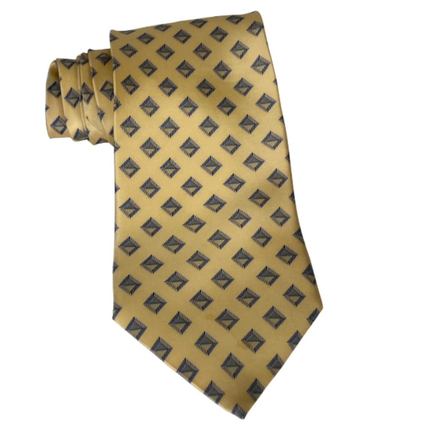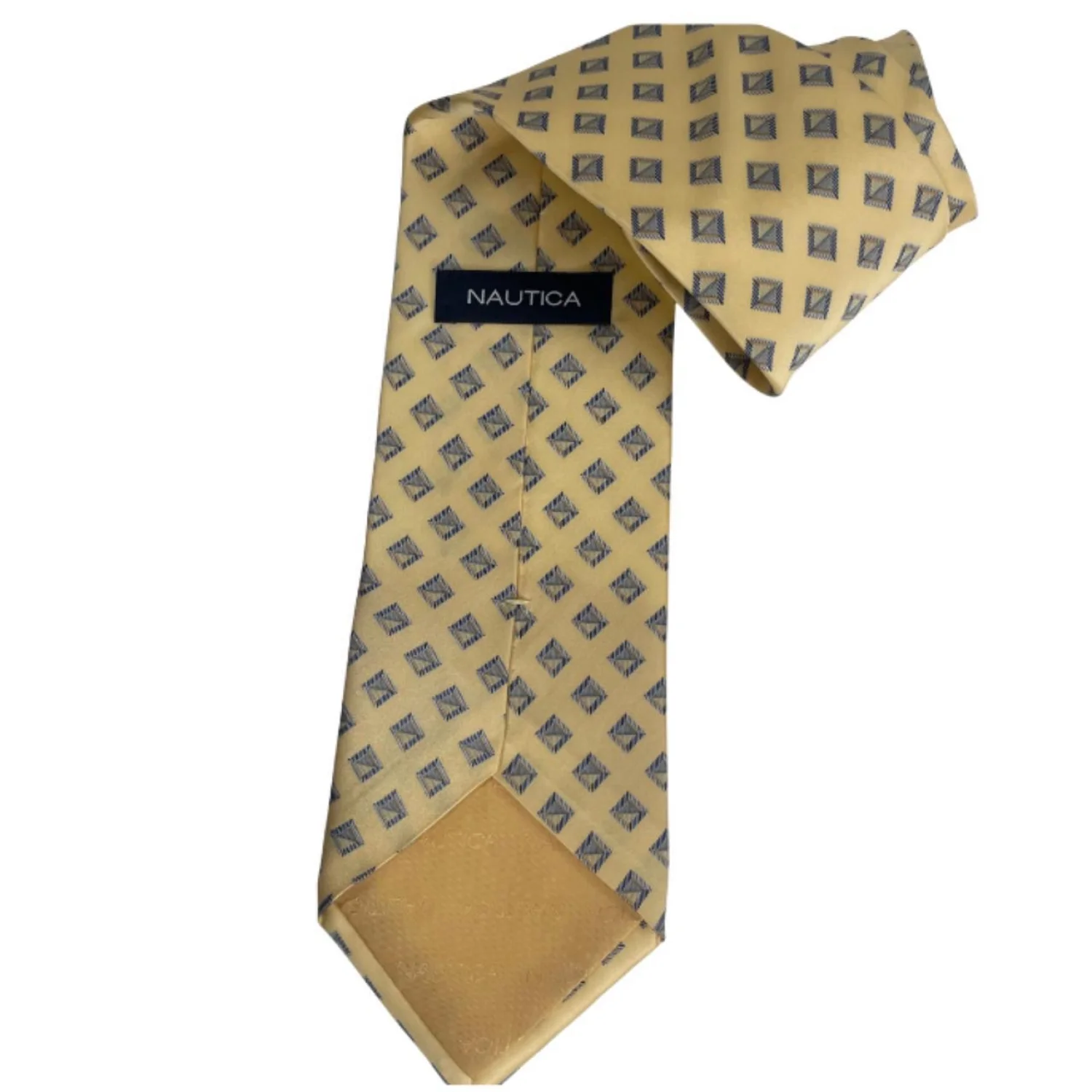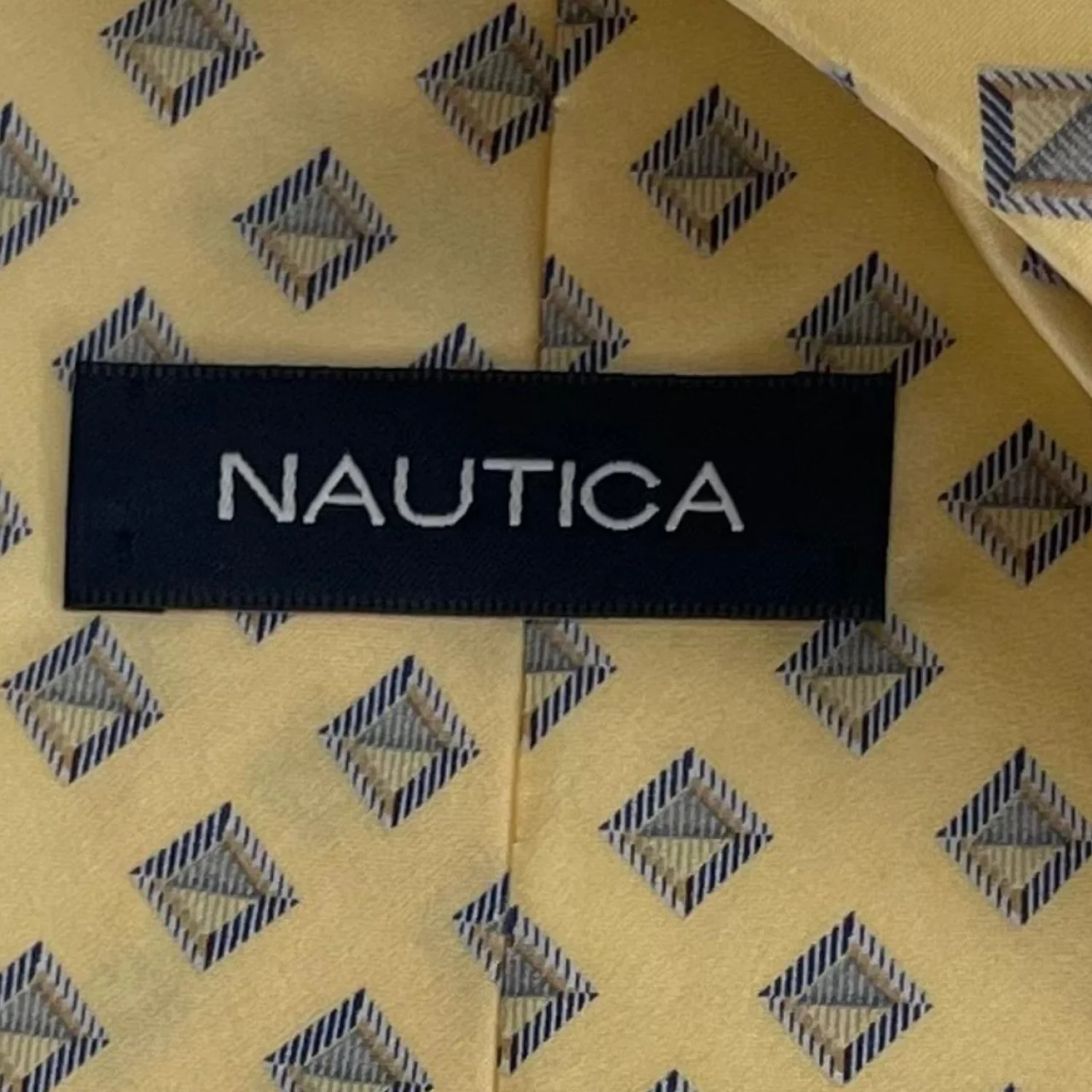 Nautica Men's Yellow Blue Geometric Silk Necktie Luxurious Formal Event Classic