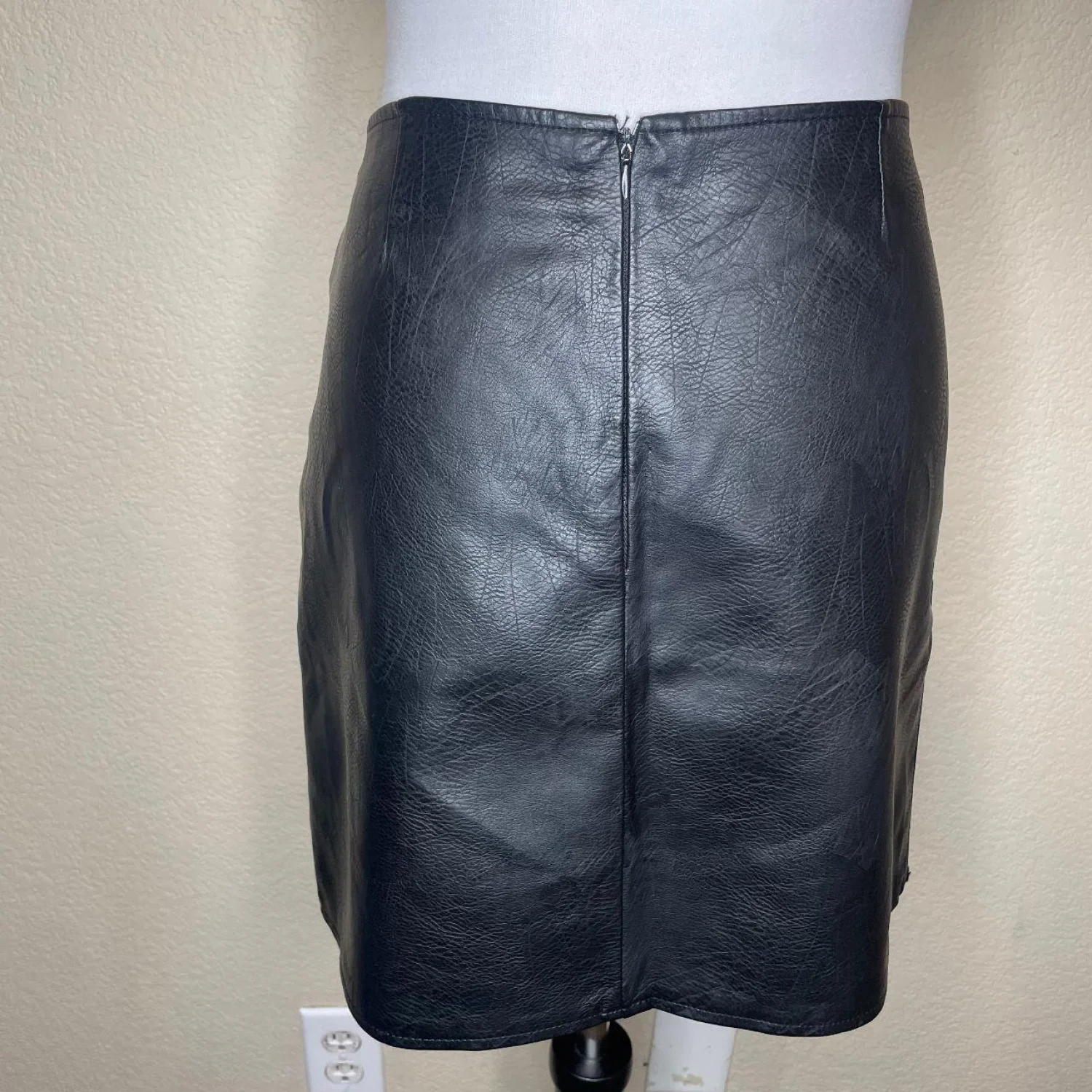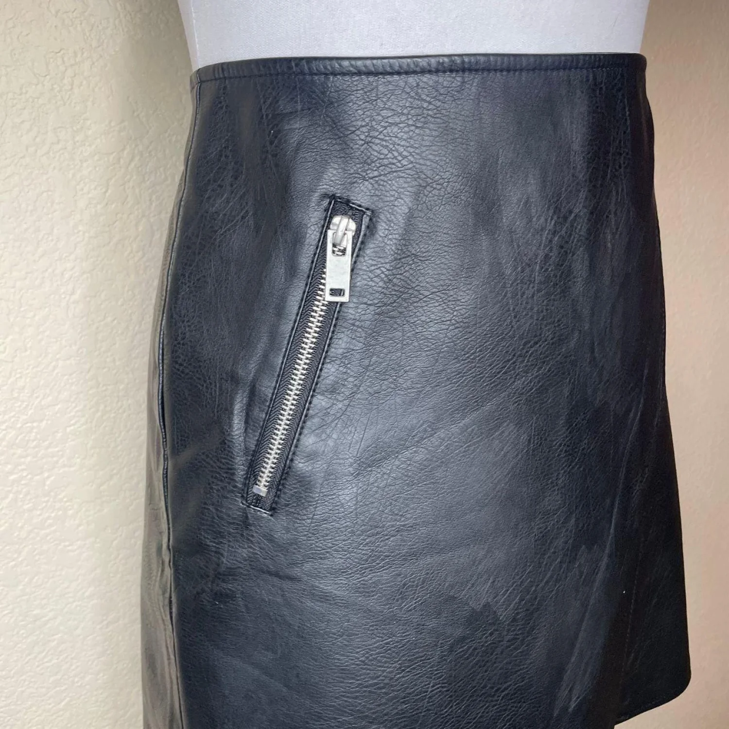New Look Black Faux Leather Wrap Mini Skirt Size M Edgy Moto