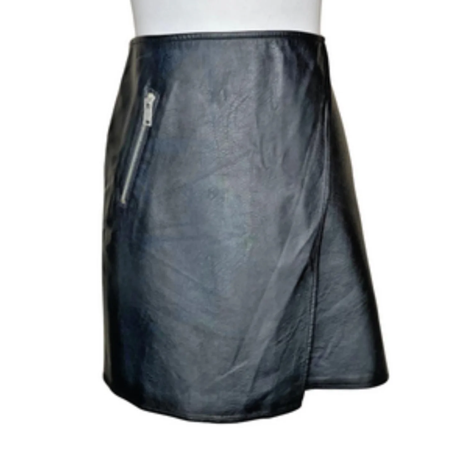 Offers Welcomed🎉 Features: NWOT The ultimate cool-girl staple. This New Look mini skirt has that perfect edgy/grunge vibe with the wrap front and silver zipper detail. Pair it with chunky boots and a baby tee for a full 90s/Y2K look. • Style Profile: edgy, moto, grunge, y2k, goth, corporate goth, minimalist, biker, vegan leather, streetwear • Flaws: No Holes, stains, or tears (Excellent pre-owned condition) • All measurements are approximate Waist: 15.5' Length: 16.5' Happy to answer your questions! Super Fast Shipper!