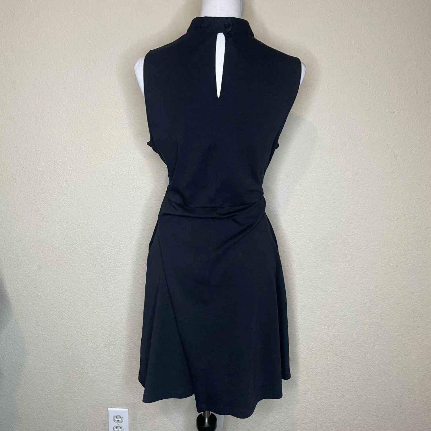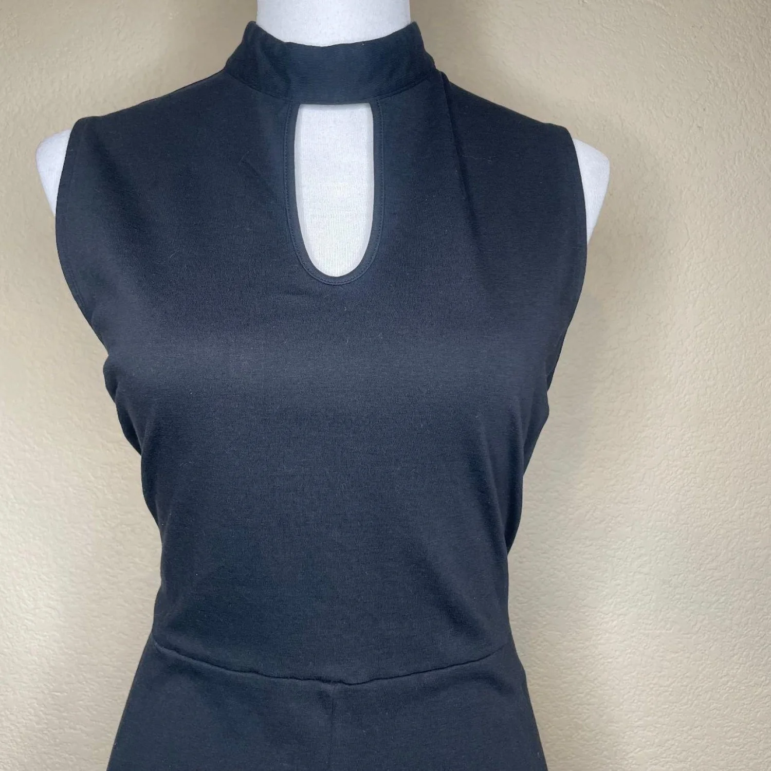 New York & Company 100% Cotton XL Black Keyhole Sleeveless Fit & Flare Dress